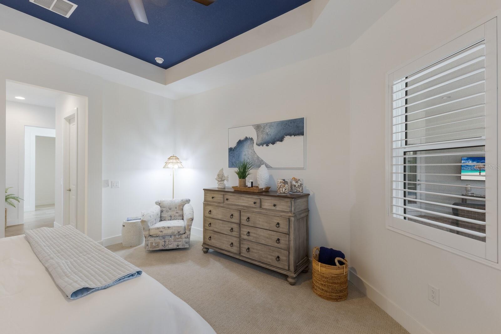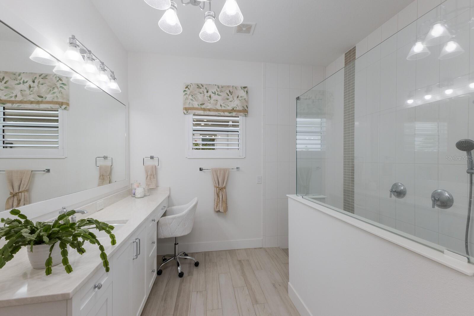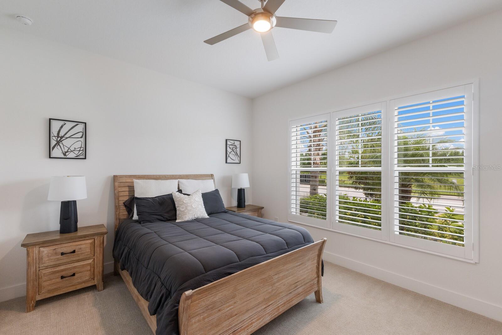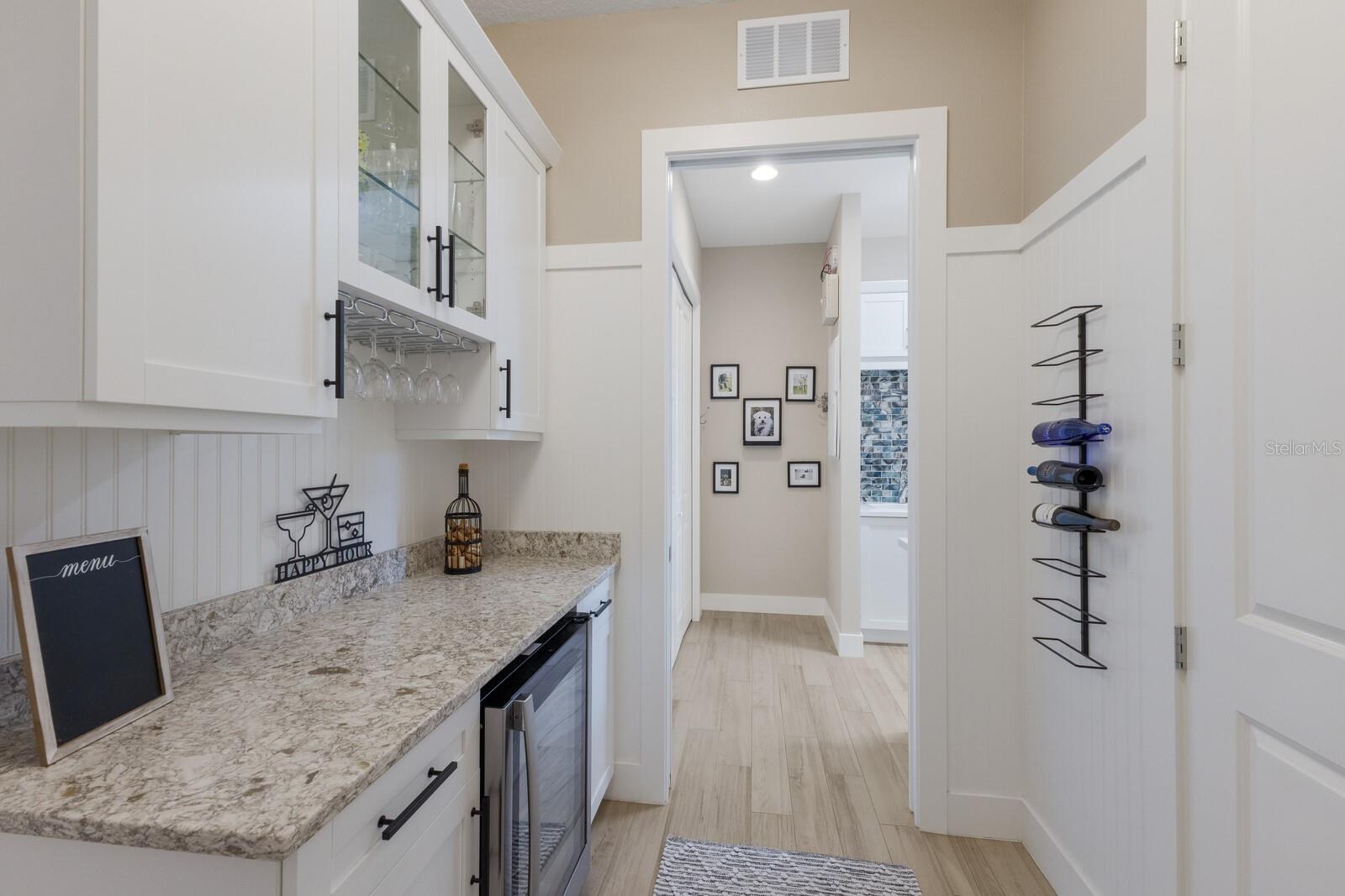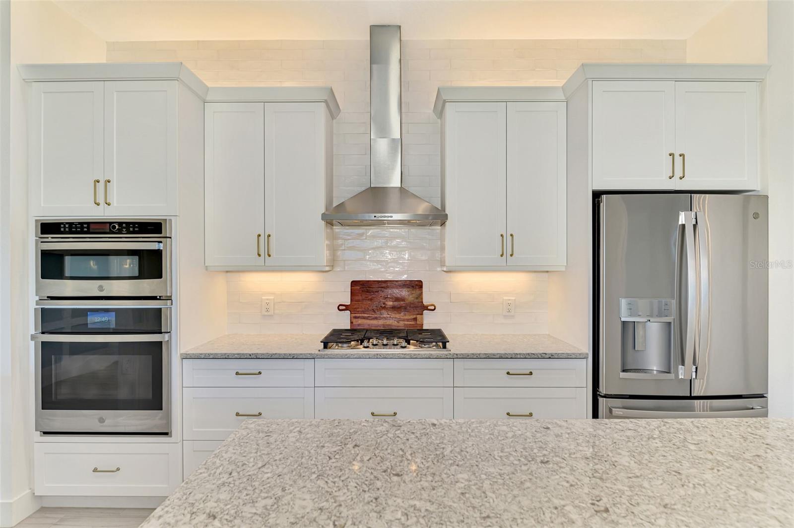 PRICE IMPROVEMENT and NEW PHOTOS! Welcome to the Weatherly floor plan by builder Homes by Towne. This one-story, four-bedroom, three bath, plus den home offers a great opportunity for those who love to entertain. Upon entering, you will be wowed by the vaulted ceiling, painted beams and open floor plan. The crown jewel of the home is the kitchen loaded with white custom cabinets, a double island, upgraded quartz tops and GE appliances. The outer island comfortably seats six, and inner island serves as a great workspace for all your baking and cooking creations. Want more space for all your kitchen tools and accessories? Enjoy the custom designed walk-in pantry with power for your coffee pot or toaster oven. Behind the kitchen, you will find a beverage bar for all your entertaining needs. Do you need extra storage space? No problem, the laundry room has a professionally designed double closet and a wall of cabinetry to store your overflow items, and the garage has custom built shelving for all your outdoor gear. Adjacent to the kitchen, there is a custom designed accent wall that can showcase 8x8 frames for artwork and photos or it can be freestanding. The light and bright great room offers a warm and cozy ambiance to sit back and watch your favorite tv shows or movie within the custom built in, lighted, glass shelves and quartz faced fireplace. Need to enjoy the FL sunshine? Head out to the lanai and watch a tv program, enjoy a meal prepared at the outdoor kitchen; cool off in the saltwater pool heated pool or relax and unwind in the hot tub all while watching the amazing sunsets over the preserve. Landscape maintenance is included in the HOA along with the fitness center, dog park, pickleball courts as well as a full-time director who offers all sorts of functions and activities so you can meet the neighbors and make new friends. Other notable features include a whole house Koehler generator, epoxy floors in the 3-car tandem garage, plantation shutters, custom closets in all four bedrooms, a security system, bead board and wainscoting woodwork, hurricane impact windows and professionally installed workstations in the den. Lakehouse Cove offers easy convenience to Waterside Place, the latest entertainment hub offering dining, shopping, an award-winning weekly farmers market, Ranch Night with food trucks and weekly corn hole tournaments.