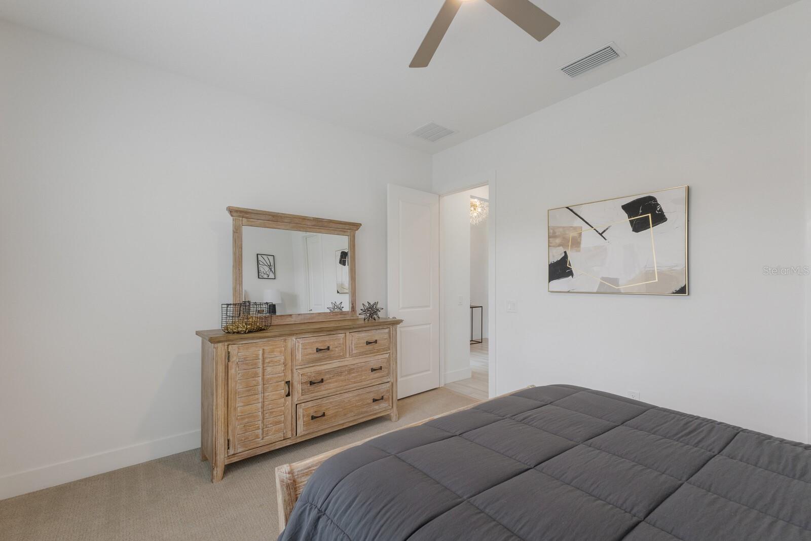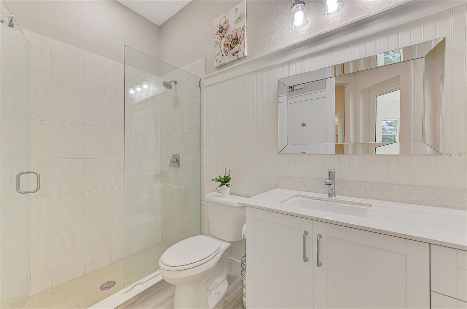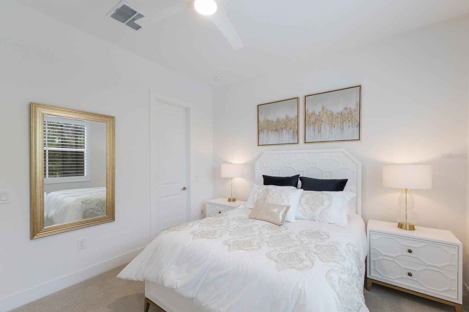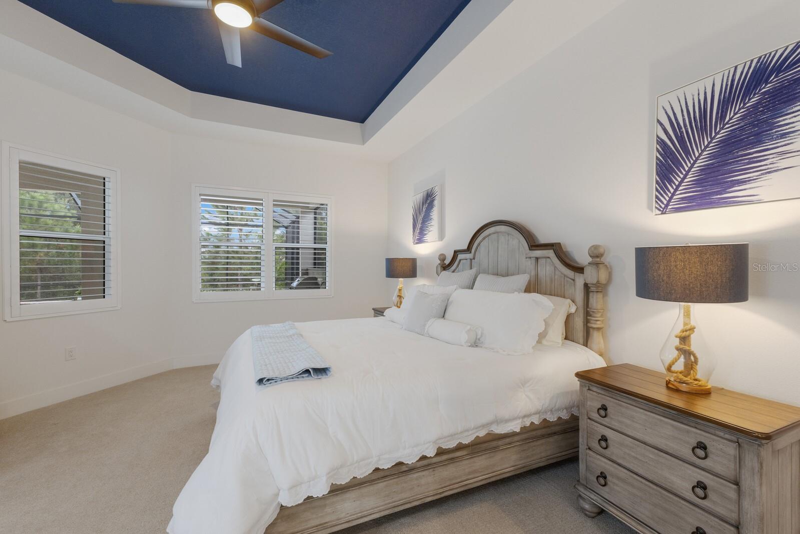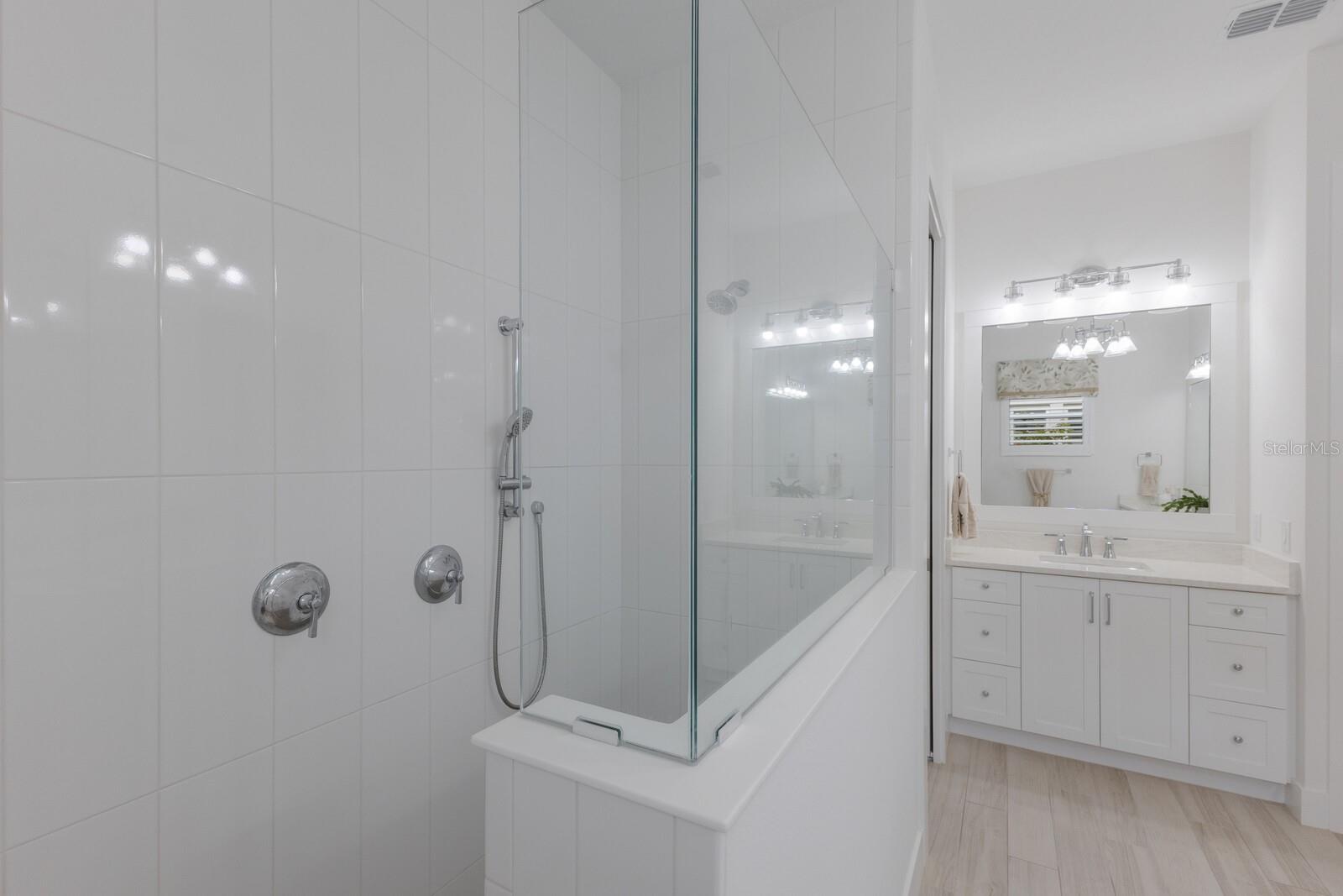 PRICE IMPROVEMENT and NEW PHOTOS! Welcome to the Weatherly floor plan by builder Homes by Towne. This one-story, four-bedroom, three bath, plus den home offers a great opportunity for those who love to entertain. Upon entering, you will be wowed by the vaulted ceiling, painted beams and open floor plan. The crown jewel of the home is the kitchen loaded with white custom cabinets, a double island, upgraded quartz tops and GE appliances. The outer island comfortably seats six, and inner island serves as a great workspace for all your baking and cooking creations. Want more space for all your kitchen tools and accessories? Enjoy the custom designed walk-in pantry with power for your coffee pot or toaster oven. Behind the kitchen, you will find a beverage bar for all your entertaining needs. Do you need extra storage space? No problem, the laundry room has a professionally designed double closet and a wall of cabinetry to store your overflow items, and the garage has custom built shelving for all your outdoor gear. Adjacent to the kitchen, there is a custom designed accent wall that can showcase 8x8 frames for artwork and photos or it can be freestanding. The light and bright great room offers a warm and cozy ambiance to sit back and watch your favorite tv shows or movie within the custom built in, lighted, glass shelves and quartz faced fireplace. Need to enjoy the FL sunshine? Head out to the lanai and watch a tv program, enjoy a meal prepared at the outdoor kitchen; cool off in the saltwater pool heated pool or relax and unwind in the hot tub all while watching the amazing sunsets over the preserve. Landscape maintenance is included in the HOA along with the fitness center, dog park, pickleball courts as well as a full-time director who offers all sorts of functions and activities so you can meet the neighbors and make new friends. Other notable features include a whole house Koehler generator, epoxy floors in the 3-car tandem garage, plantation shutters, custom closets in all four bedrooms, a security system, bead board and wainscoting woodwork, hurricane impact windows and professionally installed workstations in the den. Lakehouse Cove offers easy convenience to Waterside Place, the latest entertainment hub offering dining, shopping, an award-winning weekly farmers market, Ranch Night with food trucks and weekly corn hole tournaments.