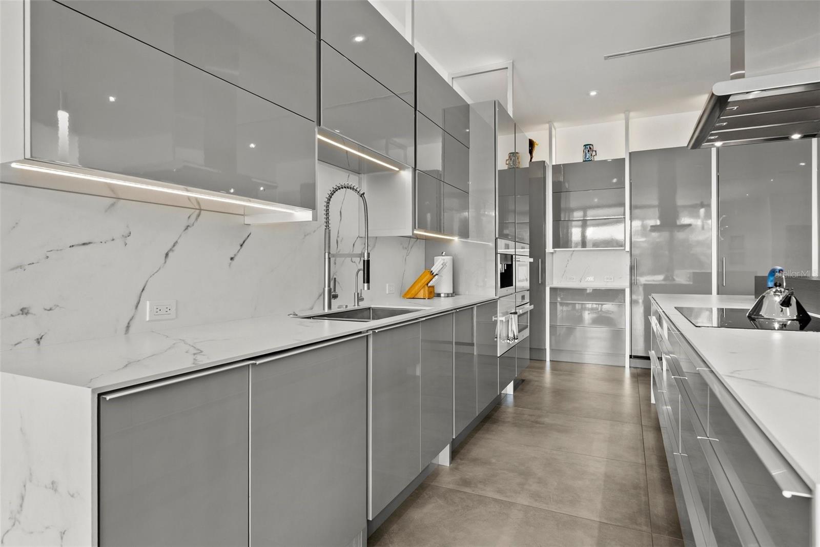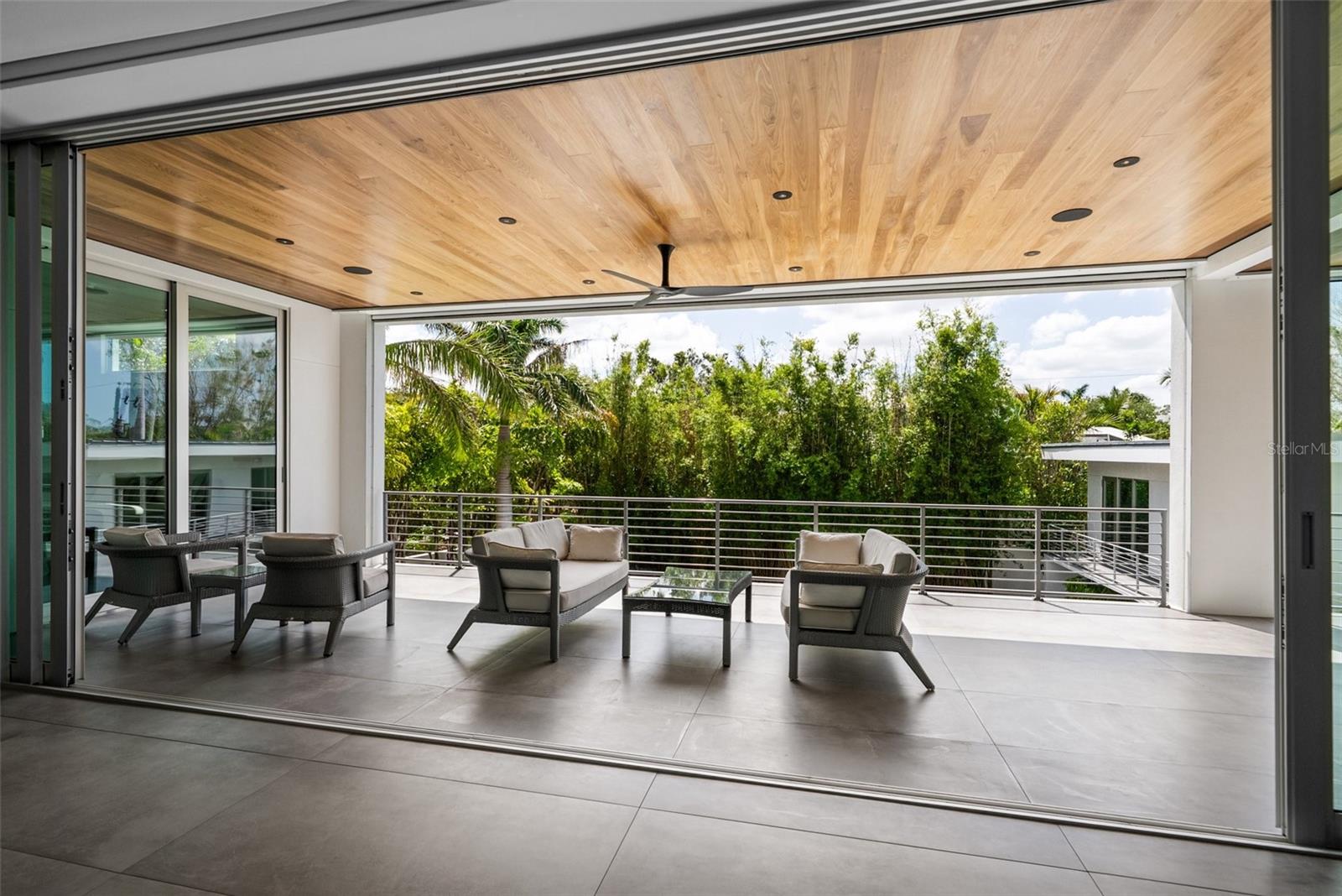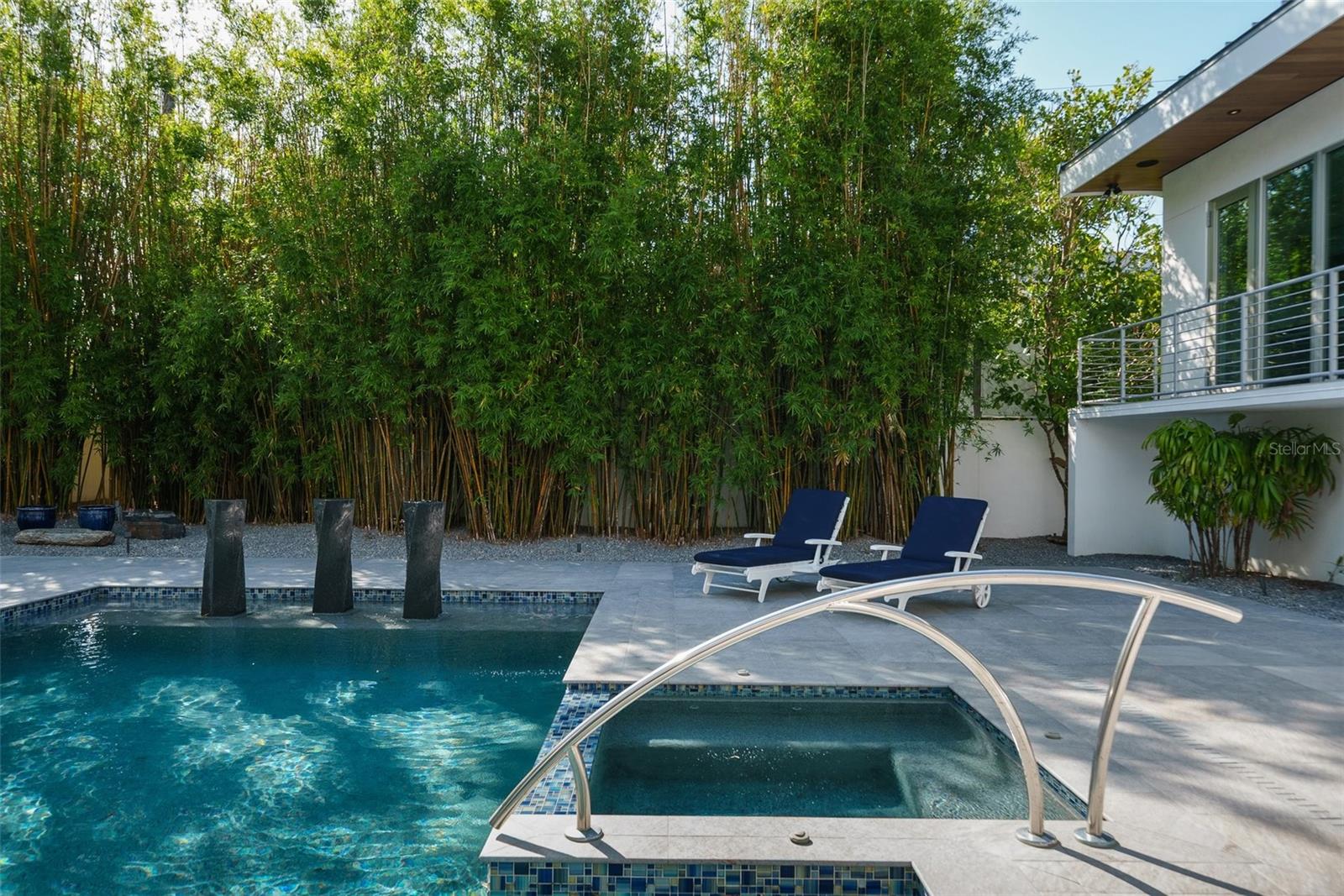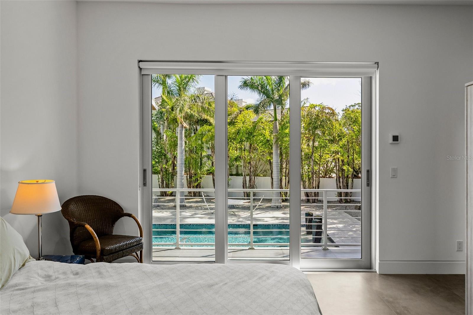 Enjoy the prestige of Harbor Acres, Sarasota’s premier neighborhood, just minutes from downtown and its vibrant Bayfront. This like-new, contemporary estate is more than a home—it’s a statement of intent. Designed for those who value clean lines, modern architecture, and exceptional design, this three-story residence delivers an uncompromising standard of luxury. Step through a dramatic glass entryway into a bright, expansive foyer, where a modern floating staircase and a Vertech 3-stop elevator introduce the home’s refined vertical layout. Immediate access to dual climate-controlled garages with parking for up to 6 cars, finished with epoxy flooring and commercial-grade doors, underscores the home's functionality and thoughtful design. The main living level is centered around a sprawling open-concept great room, ideal for both grand entertaining and intimate living. Gallery-style walls, 12-foot multi-stack sliders, and floor-to-ceiling glass invite in abundant natural light. The chef’s kitchen is a true showpiece, outfitted with Miele appliances, sleek Dekton countertops, Westwood custom cabinetry, and a full butler’s pantry with Sub-Zero refrigeration. An informal dining area and TV lounge extend naturally outdoors to the covered summer kitchen—complete with outdoor grill and thermally modified tongue-and-groove ceilings—creating a seamless indoor-outdoor living experience. The north wing of the main floor is dedicated to a dual-owner’s suite: two bedrooms—one currently used as a home office—joined by a spa-like bathroom featuring floating vanities, dual rain showers, a soaking tub, and specialized Italian PRESOTTO closets. A discreet laundry room and appliance garage further enhance convenience and daily efficiency. Upstairs, a flexible landing space connects a private guest suite with a library and media room—perfect for remote work, relaxation, or extended stays. An additional full bath serves this level, maintaining privacy and practicality. Beyond the main residence, the backyard becomes a private resort. A sleek pool and integrated spa are flanked by lush bamboo privacy landscaping and lead to a standalone guest house featuring a full kitchen and bath—ideal for guests, in-laws, or live-in support. A striking exterior staircase links all levels while maintaining architectural harmony. State-of-the-art features include a top-of-the-line Crestron smart home system, whole-house generator, tankless water heaters, an at-home gym, and secure gated entry. Crowning the estate is a private rooftop terrace offering panoramic 360° views of Sarasota Bay, the Ringling Bridge, Longboat Key, Siesta Key, and downtown Sarasota—an unmatched setting for sunset entertaining or tranquil reflection. This is more than a home. It’s a lifestyle of prestige, privacy, and purposeful design—for those who live without compromise.