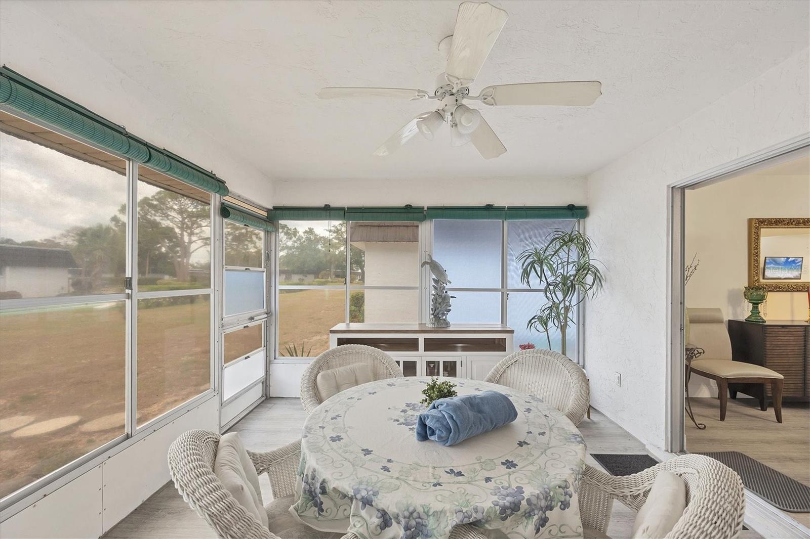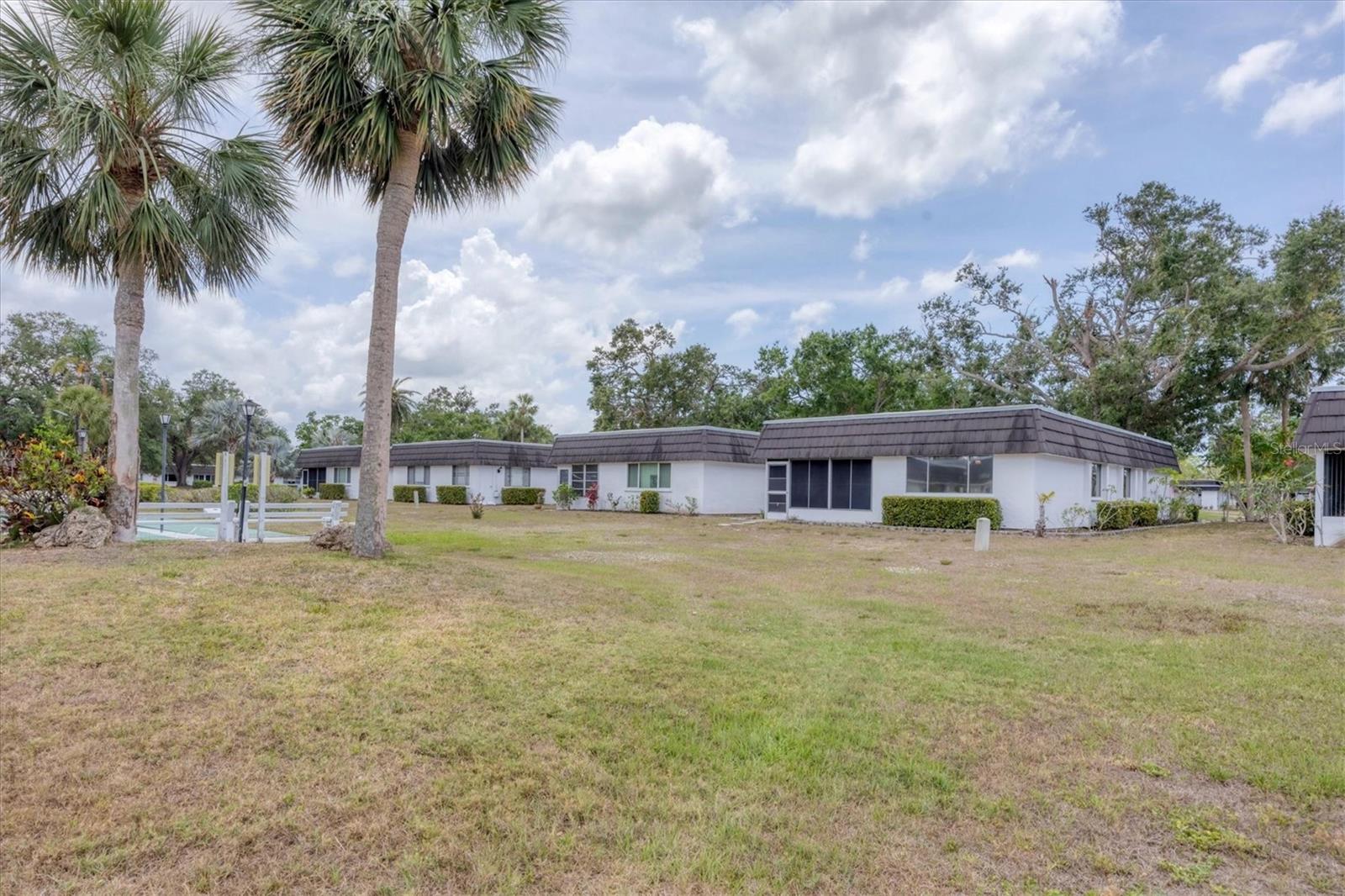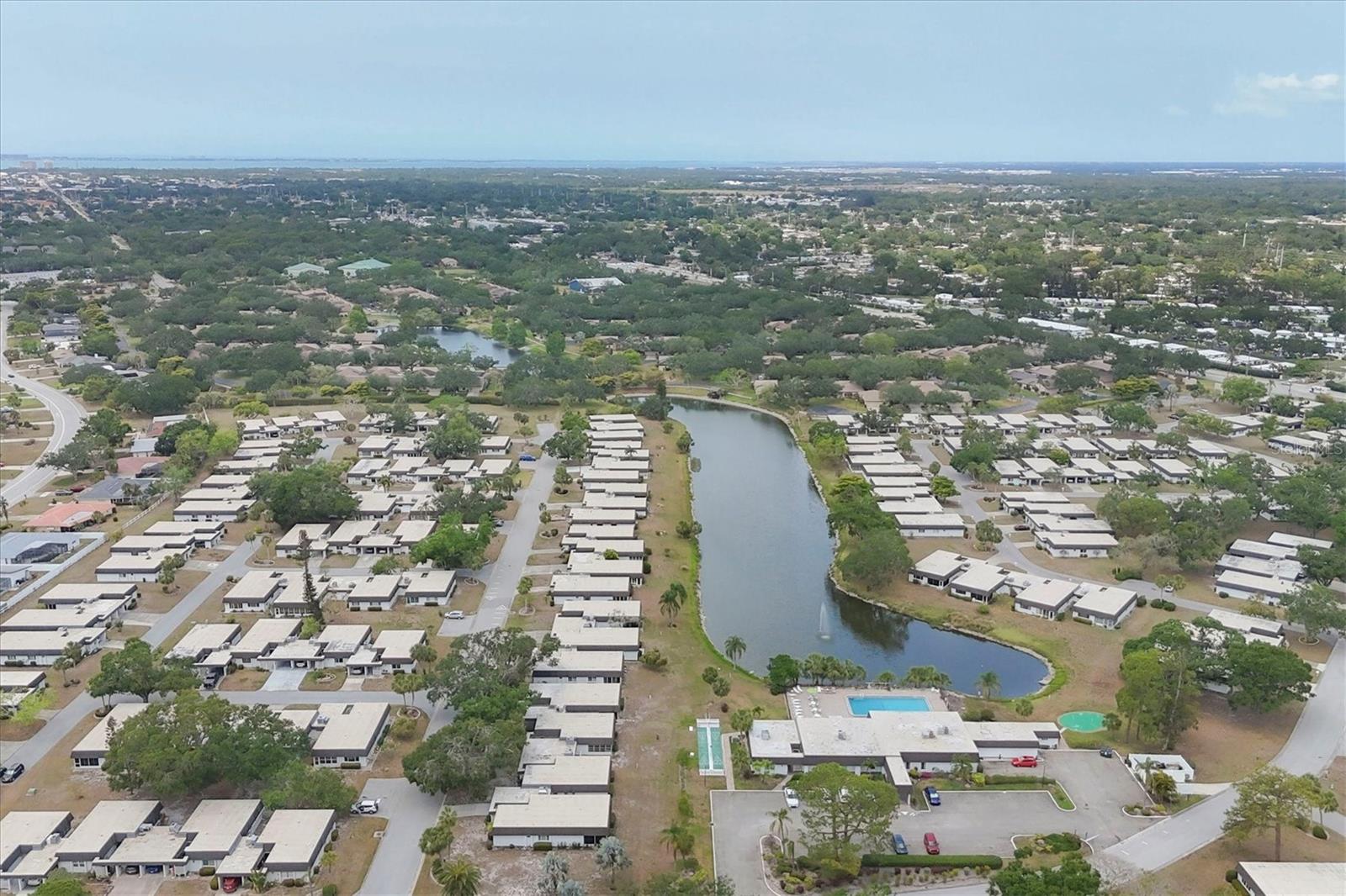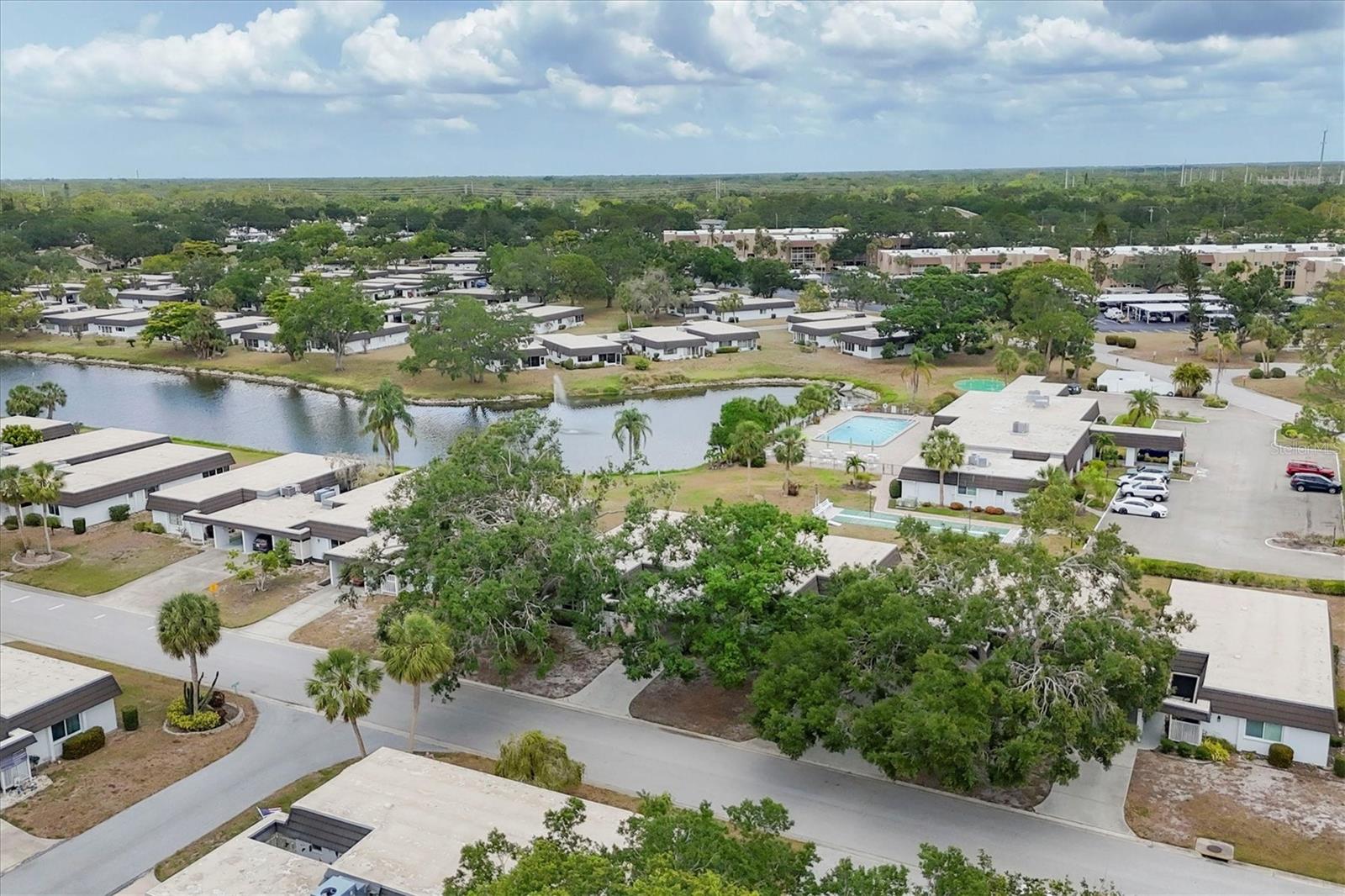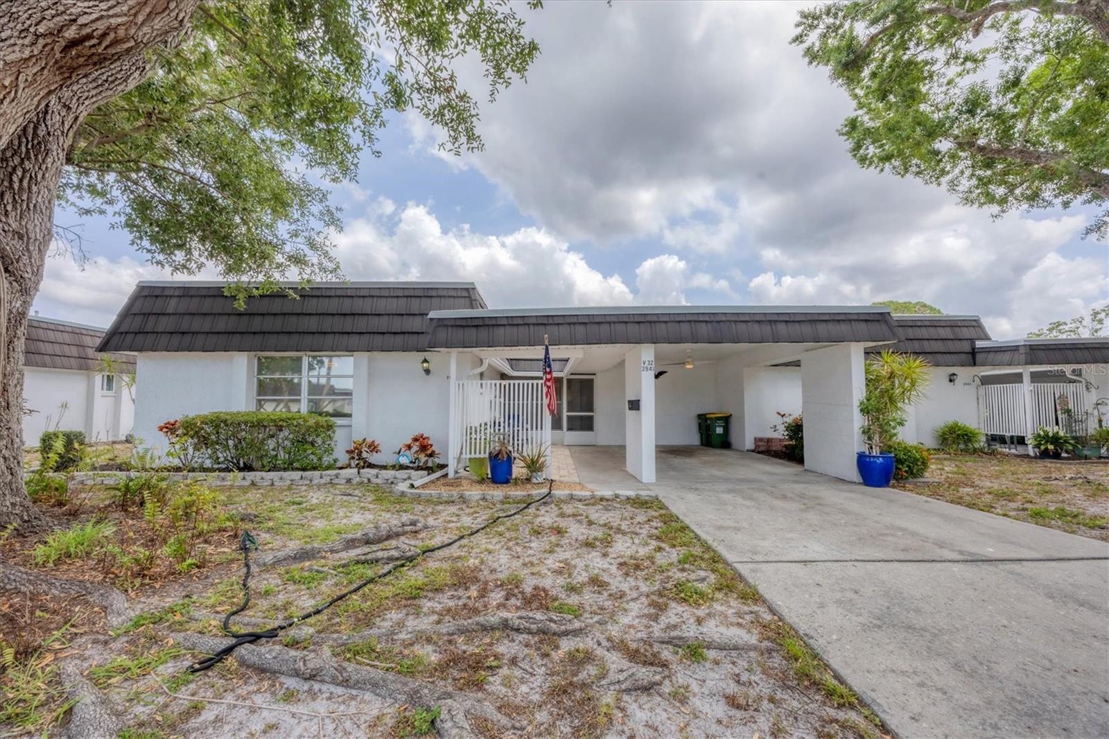 LAKE VIEW & POOL VIEW Villa in Glen Oaks Ridge, a 55+ community located between UTC MALL and Downtown Sarasota. Check out this two bedroom, 2 bath one story (no stairs) 1350 square foot END UNIT villa with a dedicated den/study/office, a 12x12 four season FLORIDA ROOM and an attached one car PRIVATE carport AND private driveway PLUS an indoor, Laundry Room/Utility Room/Storage Area & Pantry! Most all of the flooring has been updated with LVF in recent years along with new baseboards, The kitchen was updated to include newer cabinetry that includes PULL OUT SHELVING, Granite counters, backsplash, updated lighting/ceiling fan, plus the kitchen was opened up to the dining room adding a breakfast bar. More updates include the Primary bedroom bathroom, Newer gutters, Brand new washer & dryer AND a NEW hot water tank. The Condo association previously replumbed the fresh water pipes and on 03/2025 owner had ALL plumbing valves replaced to washer/dishwasher/wash tub/commodes/vanities & kitchen sink. This villa has the "third nail" for better insurance rates. Enjoy the LAKE views & the FOUNTAIN in the LAKE and the POOL. $239,900.