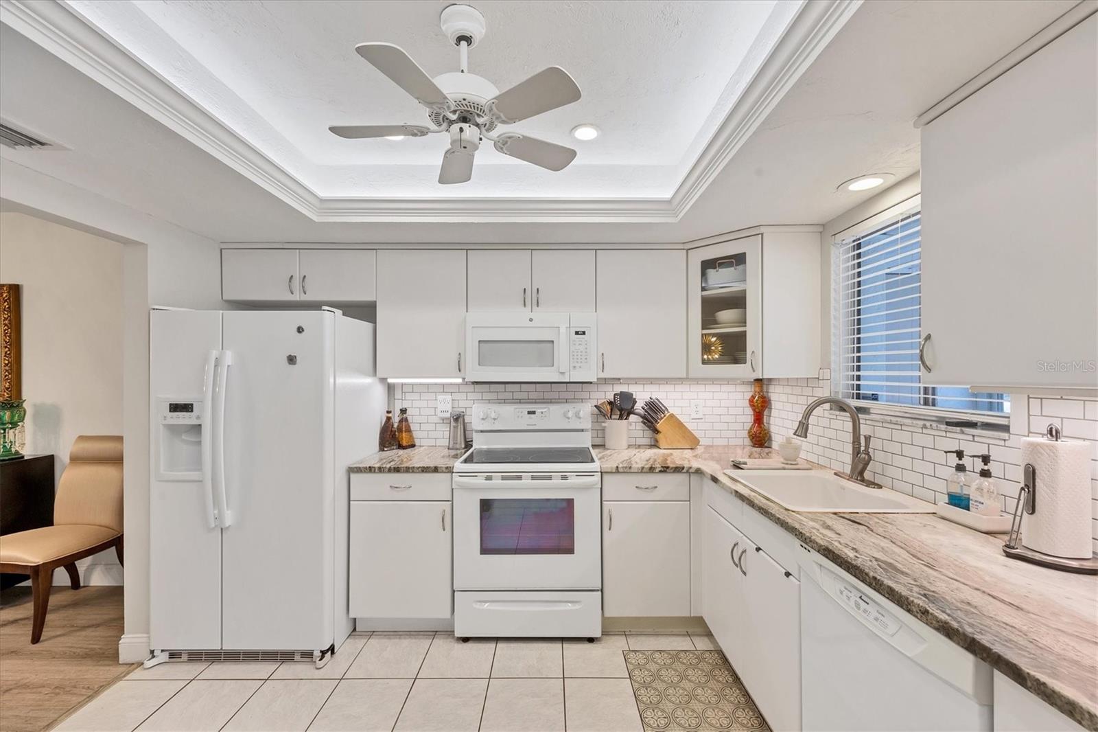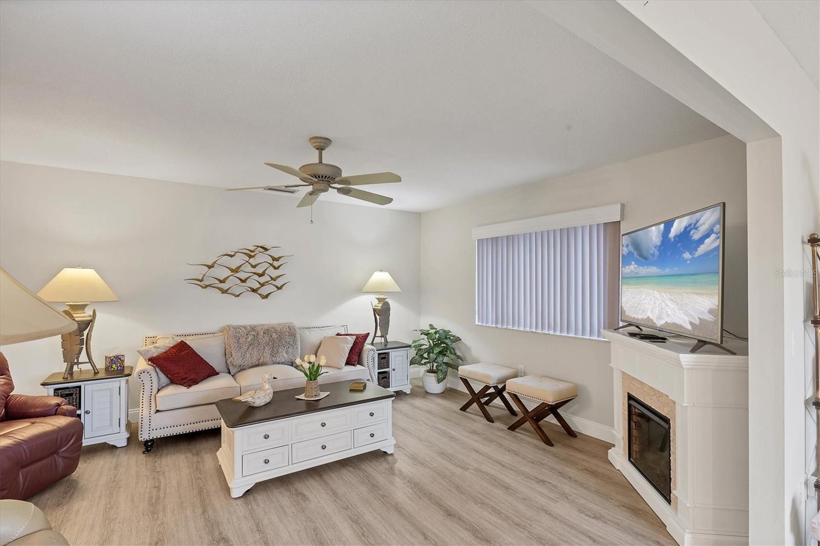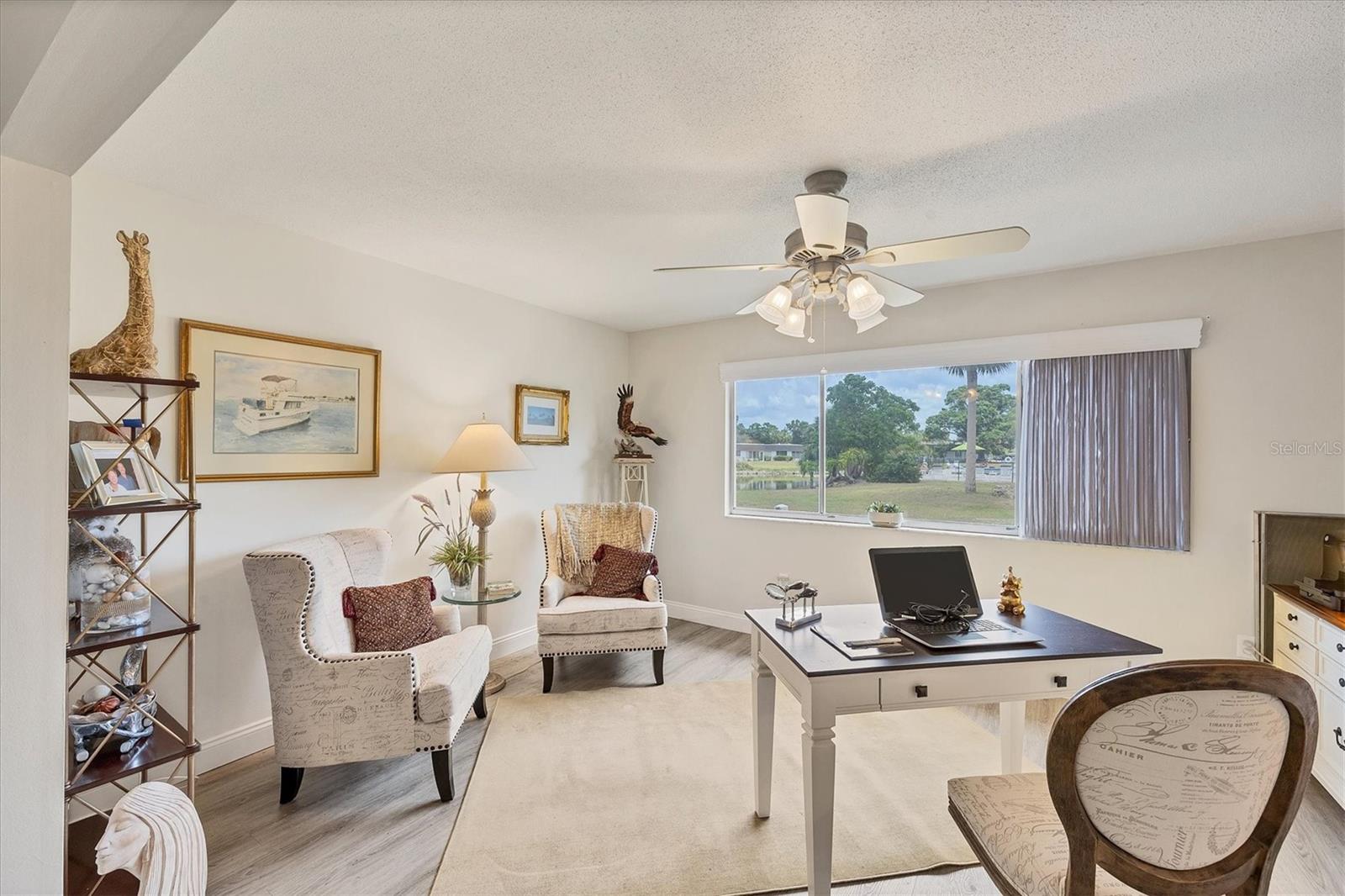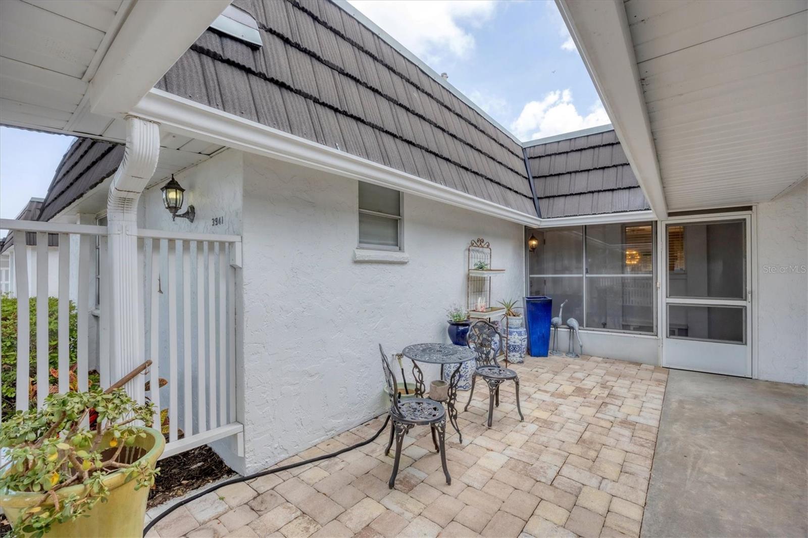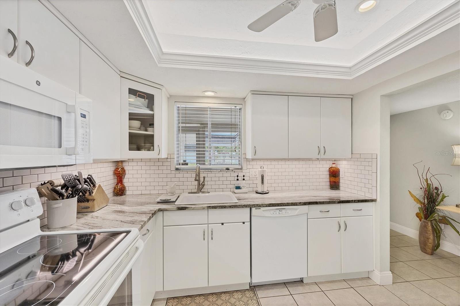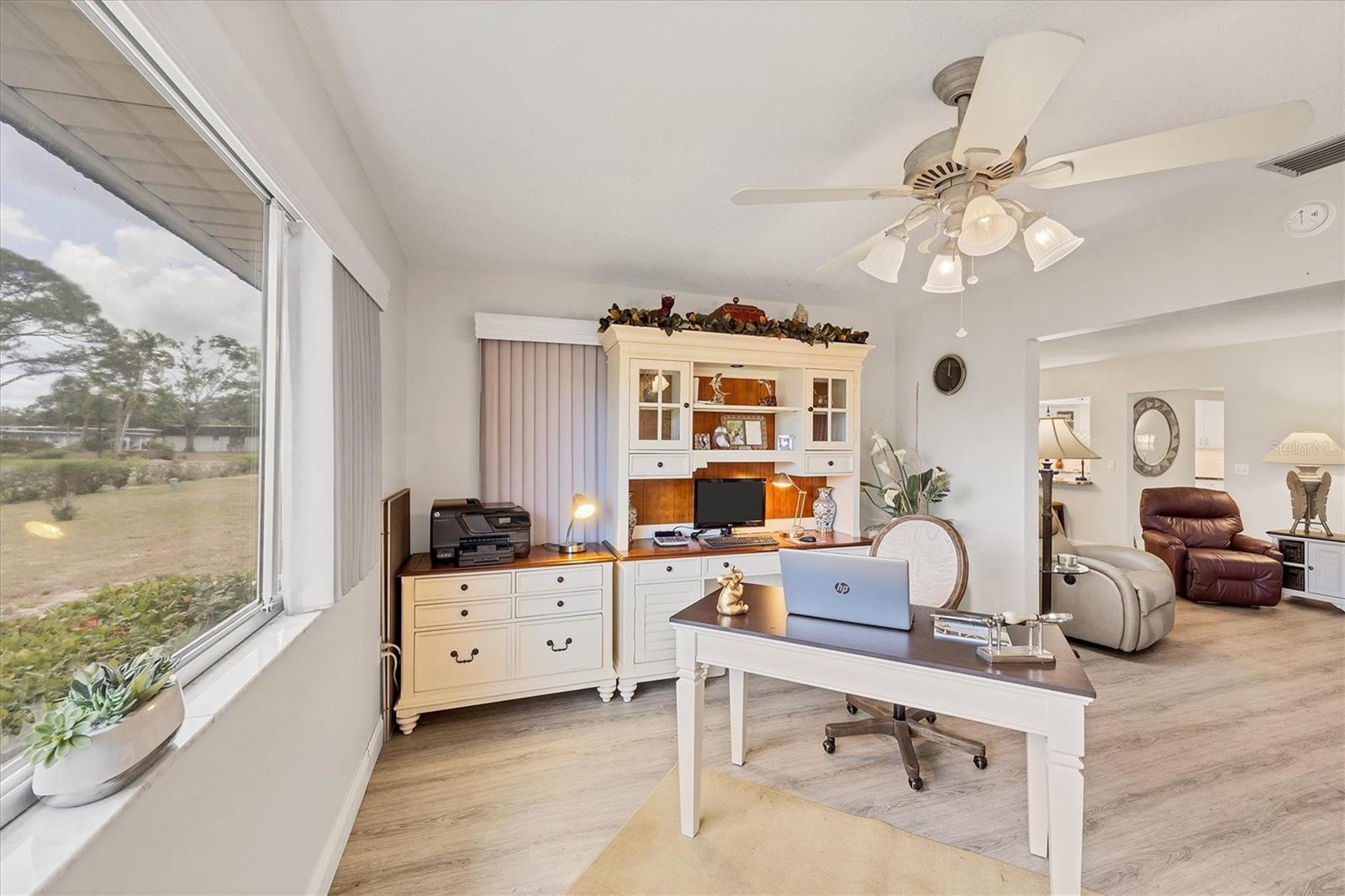 LAKE VIEW & POOL VIEW Villa in Glen Oaks Ridge, a 55+ community located between UTC MALL and Downtown Sarasota. Check out this two bedroom, 2 bath one story (no stairs) 1350 square foot END UNIT villa with a dedicated den/study/office, a 12x12 four season FLORIDA ROOM and an attached one car PRIVATE carport AND private driveway PLUS an indoor, Laundry Room/Utility Room/Storage Area & Pantry! Most all of the flooring has been updated with LVF in recent years along with new baseboards, The kitchen was updated to include newer cabinetry that includes PULL OUT SHELVING, Granite counters, backsplash, updated lighting/ceiling fan, plus the kitchen was opened up to the dining room adding a breakfast bar. More updates include the Primary bedroom bathroom, Newer gutters, Brand new washer & dryer AND a NEW hot water tank. The Condo association previously replumbed the fresh water pipes and on 03/2025 owner had ALL plumbing valves replaced to washer/dishwasher/wash tub/commodes/vanities & kitchen sink. This villa has the "third nail" for better insurance rates. Enjoy the LAKE views & the FOUNTAIN in the LAKE and the POOL. $239,900.