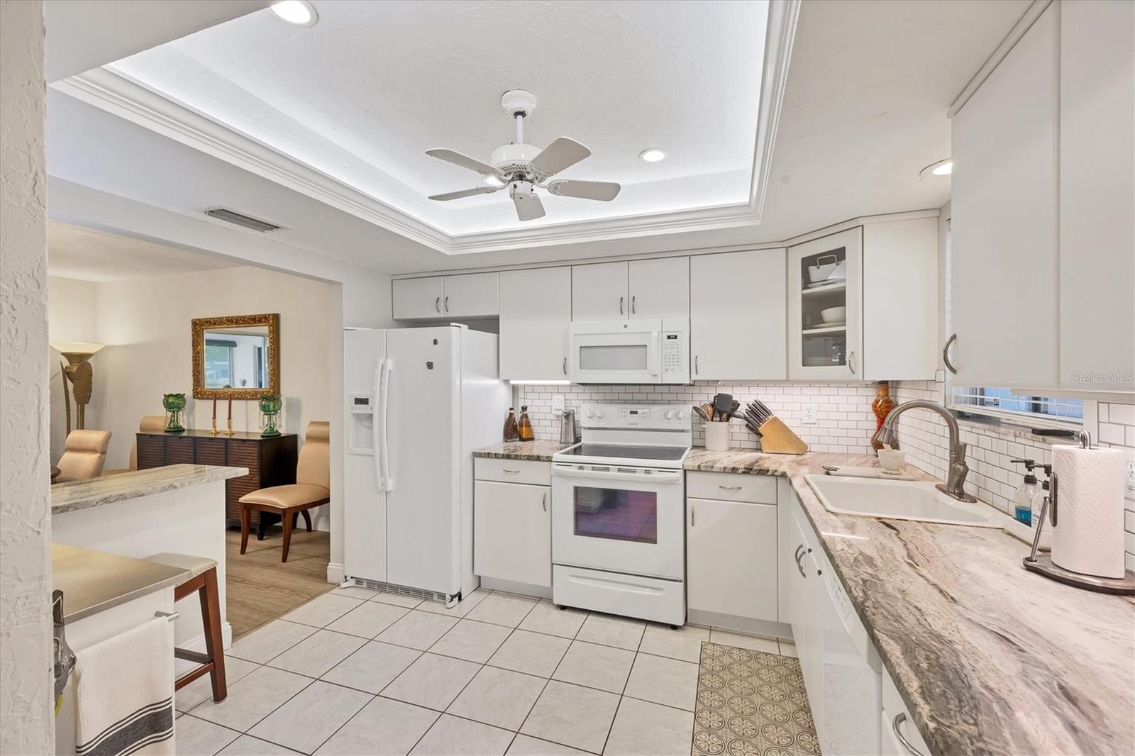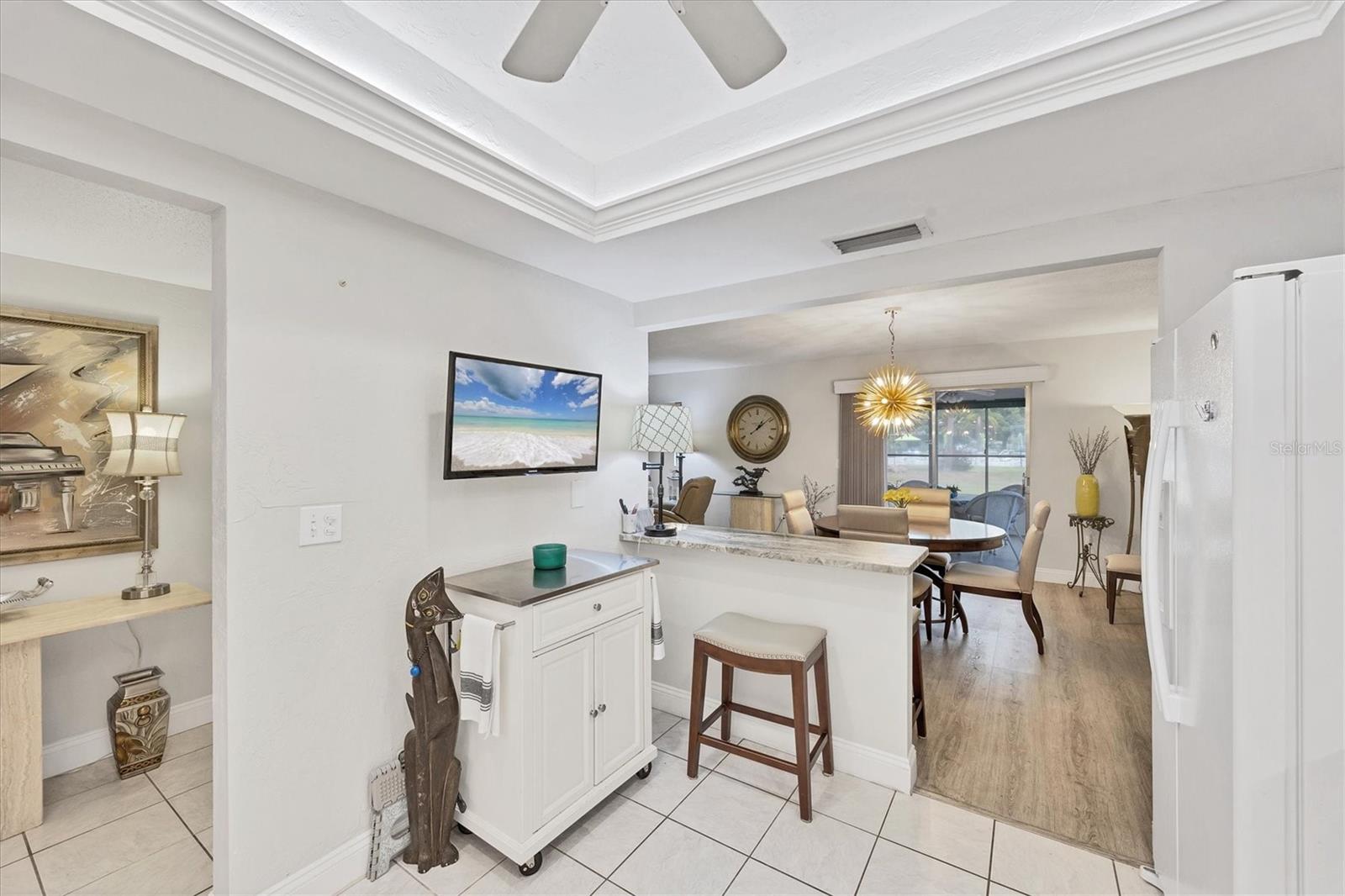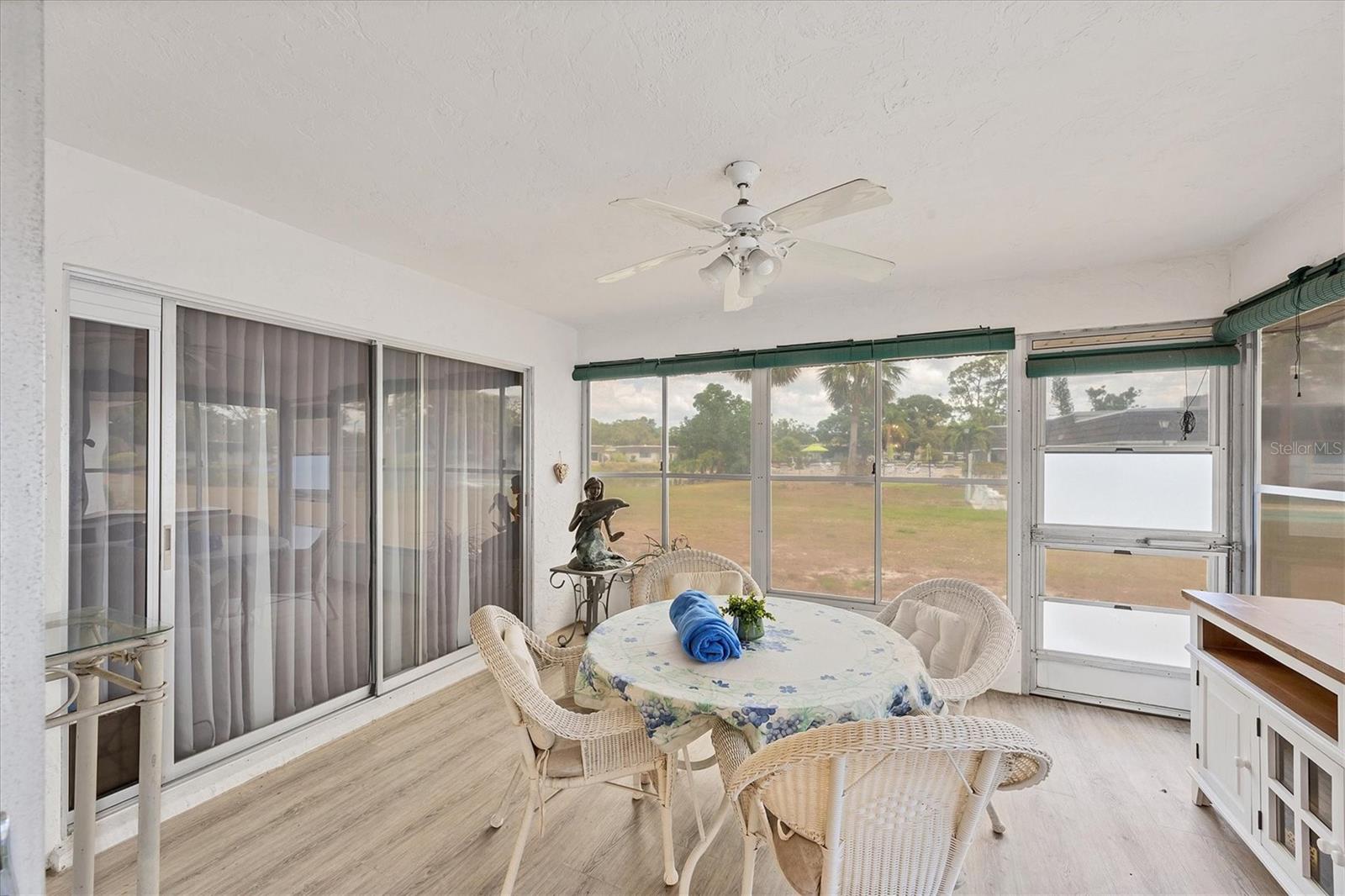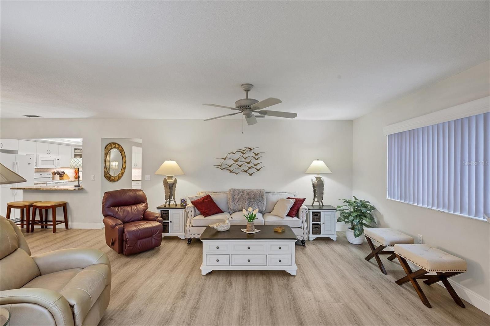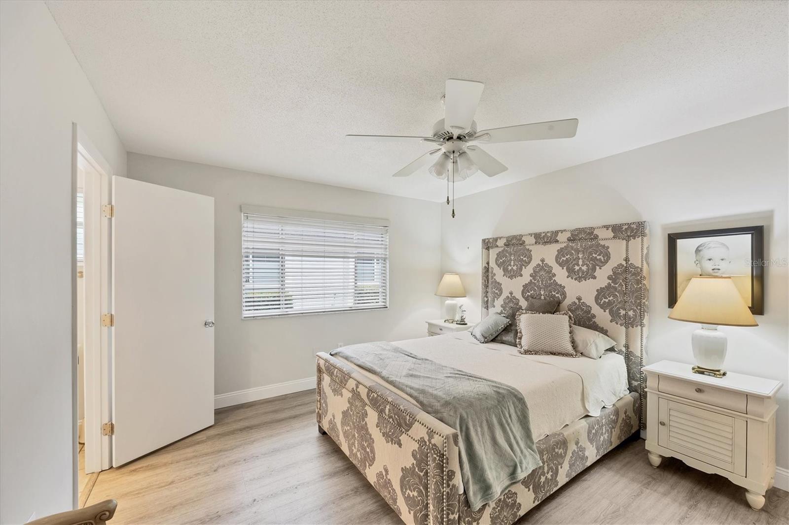 LAKE VIEW & POOL VIEW Villa in Glen Oaks Ridge, a 55+ community located between UTC MALL and Downtown Sarasota. Check out this two bedroom, 2 bath one story (no stairs) 1350 square foot END UNIT villa with a dedicated den/study/office, a 12x12 four season FLORIDA ROOM and an attached one car PRIVATE carport AND private driveway PLUS an indoor, Laundry Room/Utility Room/Storage Area & Pantry! Most all of the flooring has been updated with LVF in recent years along with new baseboards, The kitchen was updated to include newer cabinetry that includes PULL OUT SHELVING, Granite counters, backsplash, updated lighting/ceiling fan, plus the kitchen was opened up to the dining room adding a breakfast bar. More updates include the Primary bedroom bathroom, Newer gutters, Brand new washer & dryer AND a NEW hot water tank. The Condo association previously replumbed the fresh water pipes and on 03/2025 owner had ALL plumbing valves replaced to washer/dishwasher/wash tub/commodes/vanities & kitchen sink. This villa has the "third nail" for better insurance rates. Enjoy the LAKE views & the FOUNTAIN in the LAKE and the POOL. $239,900.