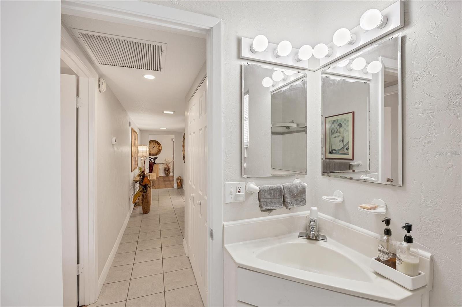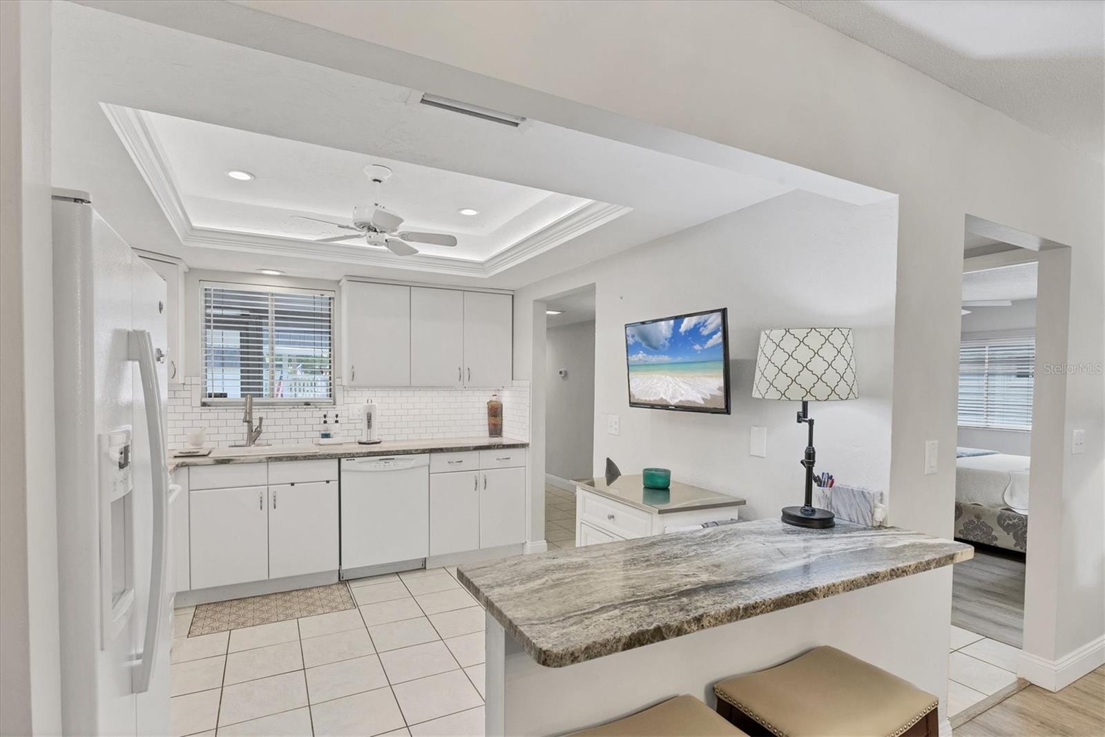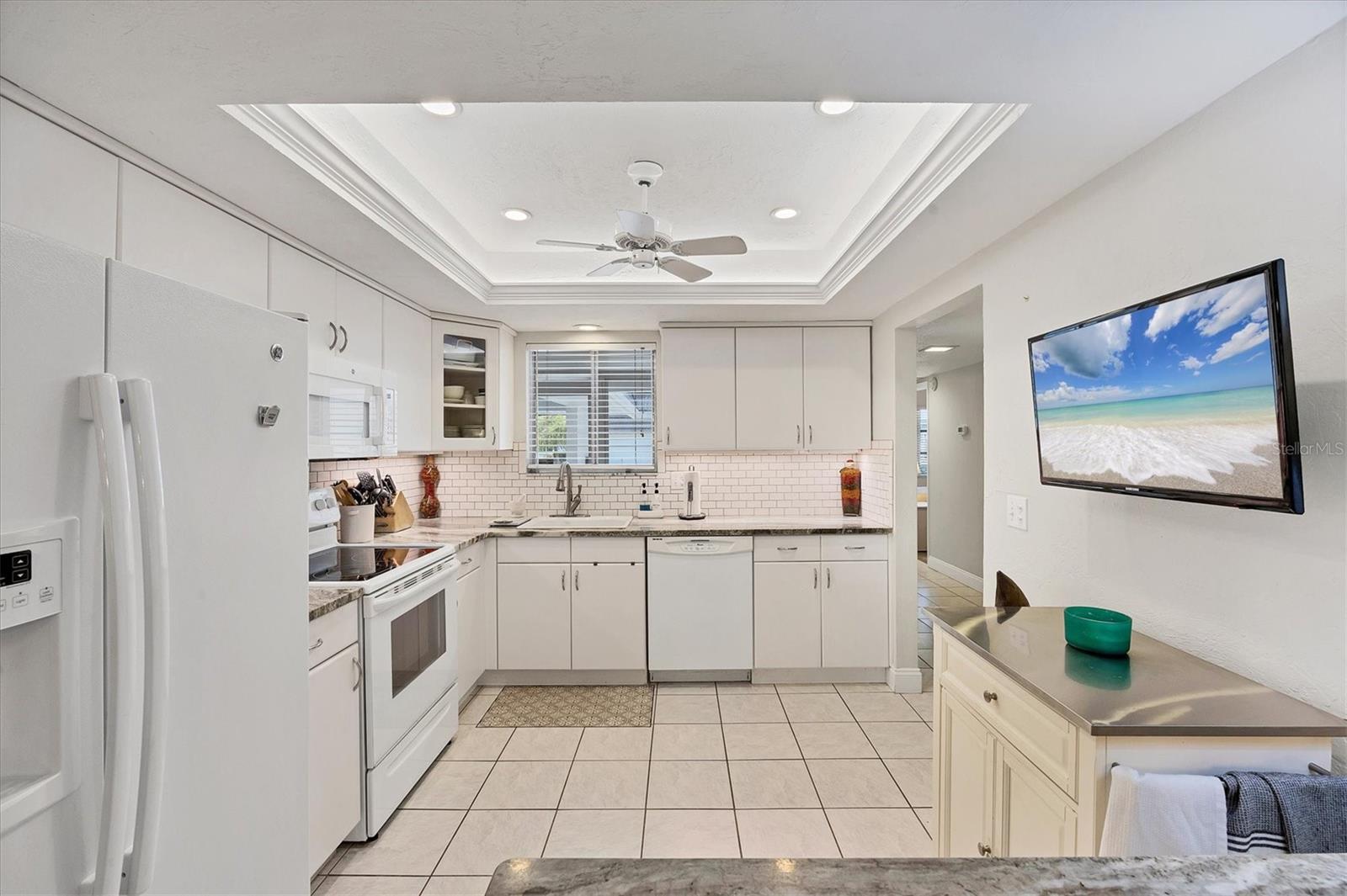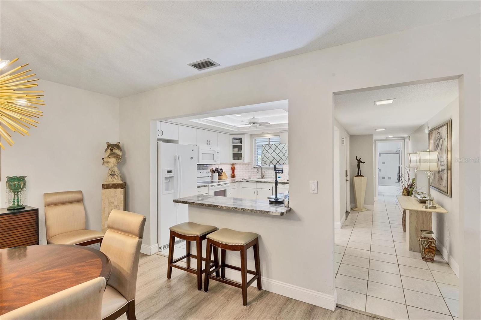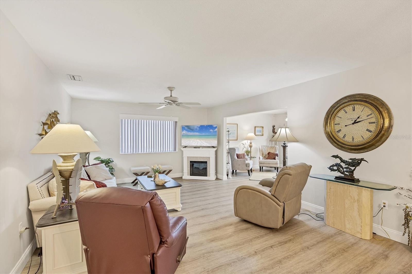LAKE VIEW & POOL VIEW Villa in Glen Oaks Ridge, a 55+ community located between UTC MALL and Downtown Sarasota. Check out this two bedroom, 2 bath one story (no stairs) 1350 square foot END UNIT villa with a dedicated den/study/office, a 12x12 four season FLORIDA ROOM and an attached one car PRIVATE carport AND private driveway PLUS an indoor, Laundry Room/Utility Room/Storage Area & Pantry! Most all of the flooring has been updated with LVF in recent years along with new baseboards, The kitchen was updated to include newer cabinetry that includes PULL OUT SHELVING, Granite counters, backsplash, updated lighting/ceiling fan, plus the kitchen was opened up to the dining room adding a breakfast bar. More updates include the Primary bedroom bathroom, Newer gutters, Brand new washer & dryer AND a NEW hot water tank. The Condo association previously replumbed the fresh water pipes and on 03/2025 owner had ALL plumbing valves replaced to washer/dishwasher/wash tub/commodes/vanities & kitchen sink. This villa has the "third nail" for better insurance rates. Enjoy the LAKE views & the FOUNTAIN in the LAKE and the POOL. $239,900.