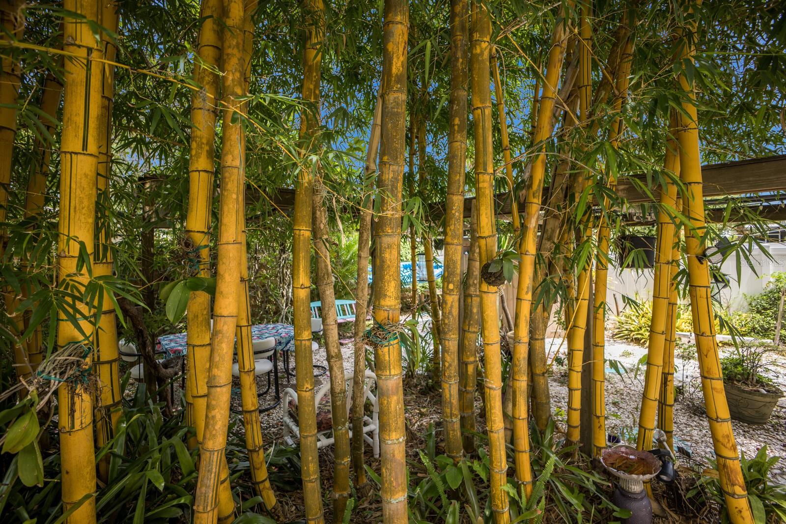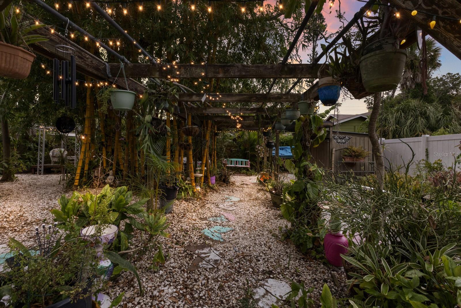 Mid-Century Modern Charm Meets Lush Botanical Living in Sarasota! Welcome to 2207 Hickory Avenue—a masterfully updated Mid-Century Modern gem nestled on a rare 10,000 sq ft double corner lot in the coveted Indian Beach Sapphire Shores neighborhood, just west of the trail. This turnkey 3-bedroom, 2-bath retreat seamlessly blends vintage character with thoughtful modern upgrades, creating a serene and stylish haven steps away from an open easement to Sarasota Bay. Step inside to find gleaming original terrazzo floors and expansive open living spaces that invite natural light from every angle. The heart of the home is a fully renovated kitchen featuring striking quartz countertops, sleek cabinetry, brand-new stainless appliances, and a statement Chihuly-style chandelier that adds an artistic touch. The bedroom closets are cedar wood-lined, adding luxury and function to your everyday living experience. An enclosed and cooled sunroom—adding approximately 400 square feet of additional living space- offers the perfect spot to relax, work, or entertain while enjoying lush garden views. The new central A/C system, including updated ductwork, ensures year-round comfort, and the durable metal roof provides peace of mind for years. Outside, the grounds feel like a private botanical sanctuary surrounded by exotic bamboo, mature tropical landscaping, and fruit trees. Enjoy evenings soaking in the hot tub as the golden hues of a Sarasota sunset filter through the palms, or rinse off after a beach day in your private outdoor shower. This home is being sold fully furnished—including all art and mid-century furniture—making it a turnkey opportunity. With space for four vehicles in the oversized driveway, walkability to Indian Beach, and proximity to downtown Sarasota, St. Armands Circle, and the cultural amenities of the Ringling Museum, this residence offers the perfect blend of tranquility, style, and convenience.