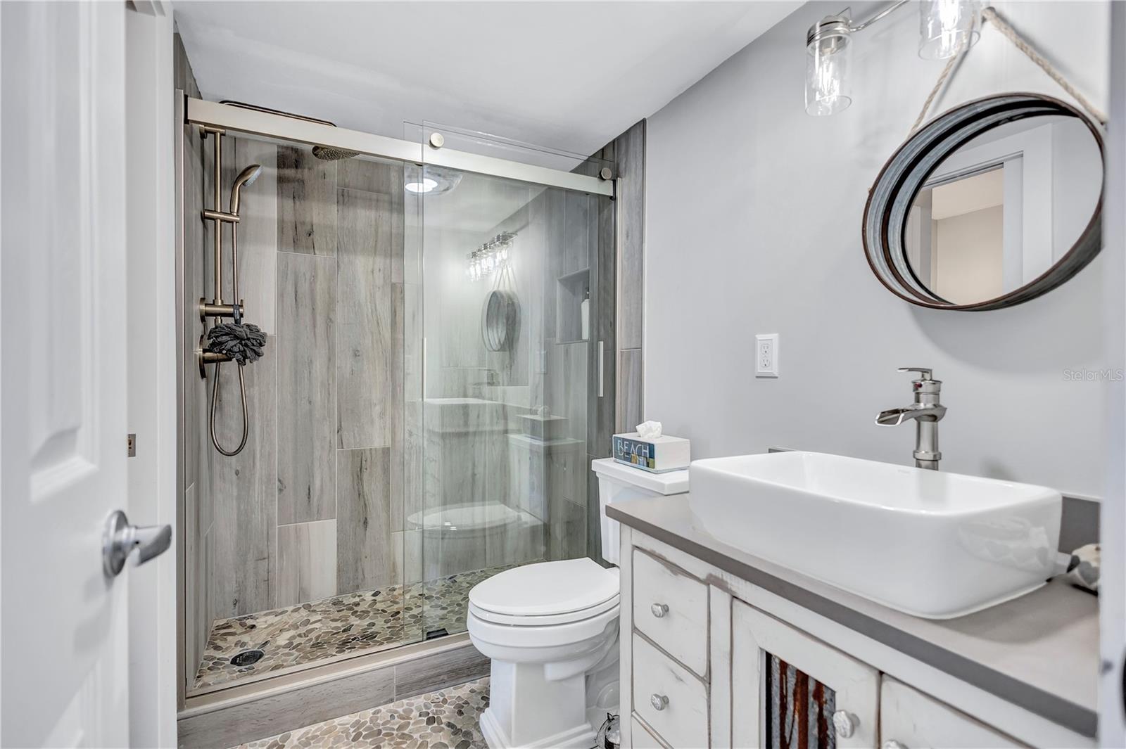 Dreaming of living on a small island surrounded by the gorgeous blue waters of Lido Key’s gulf and bay? Unit 302 at Lido Presidential is the home for you. Awake each day in your little piece of paradise. Take your morning coffee out to your covered, beach-facing balcony overlooking the heated pool and pinch yourself. It’s real… The interior of this condo has been redesigned to add an additional ½ bedroom for family and guests. With a futon and desk, this space is perfect as a day office. At night, fold down the shutter to close off the kitchen and you have a comfortable sleeping area. There is also a sleeper sofa in the living room. The decor is for those looking for a unique and eclectic vibe as the Seller leans toward the fun and funky. The kitchen and bathroom cabinets are custom constructed from reclaimed wood from a Brooklyn Shipyard building in NY. All the appliances, A/C, hot water heater, and 2 sets of impact sliding doors are 4 yrs old or younger. With only 40 units, Lido Presidential offers a warm and inviting island feel. Your new home is in the perfect location with easy access to St. Armands Circle, the Ringling Bridge, and Ted Sperling Park. Kayak the mangrove tunnels at Lido Key Park. The free Bay Runner trolley stops steps from your door to take you into downtown Sarasota with multiple theatre venues and vibrant night life choices. Directly across the street is the famous Lido Beach Resort, where you can enjoy lunch at the beach or have a delicious dinner upstairs overlooking the Sarasota Bay. SRQ Airport is a quick drive. Ready to relax? Move right in- most furniture is included.