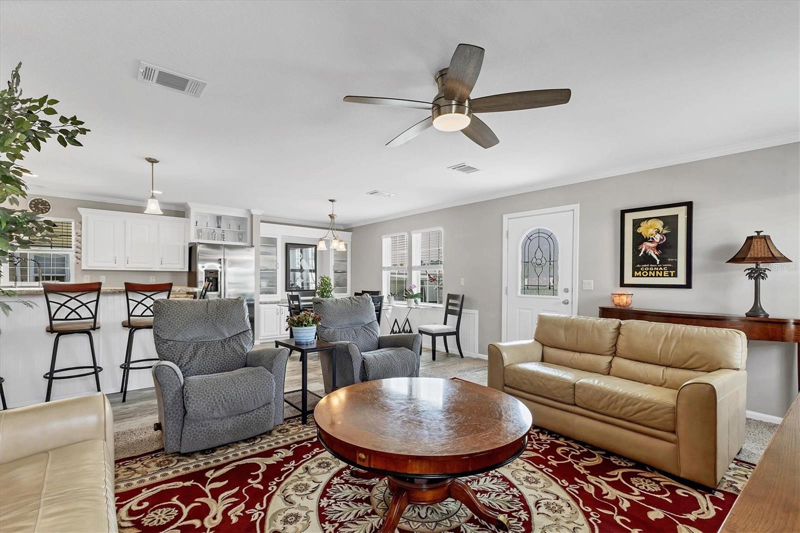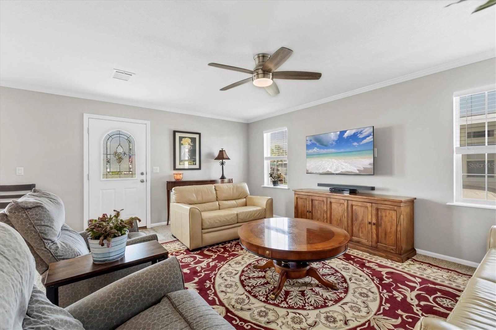 FURNISHED, MAINTENANCE-FREE 55+ HOME IN PRIME LOCATION! Welcome to Venetian Park Estates, a vibrant and friendly 55+ community where you’ll enjoy an active lifestyle just minutes from shopping, dining, cultural attractions, and Florida’s world-famous beaches. This beautiful double-wide manufactured home, built in 2017, is being sold TURNKEY FURNISHED and is move-in ready. With over $8,000 in recent upgrades, this home offers everything you need for comfort and style. Step into an inviting open floor plan filled with natural light, crown molding, and a spacious living area perfect for entertaining or relaxing. The kitchen is a chef’s delight, featuring white cabinets, an island for casual dining, brand-new stainless steel appliances (including an induction cook top) Other updates include new window coverings and the bathrooms have been enhanced with gorgeous new quartz countertops, and there’s even a new TV included! Enjoy Florida living on your enclosed porch, with the convenience of a covered carport and a lockable utility room for extra storage. There’s also a full inside laundry room. Venetian Park Estates offers a low-maintenance lifestyle with low HOA fees that include water, cable, and lawn care. Community amenities include a heated swimming pool, a large clubhouse, and a full calendar of activities like shuffleboard, cards, game nights, and water aerobics—all organized by a very active residents' committee. Conveniently located just a short drive to Walmart, Target, Costco, Lowe’s, and grocery stores. Don’t miss this opportunity to own a furnished, modern, and low-maintenance home in one of the most desirable 55+ communities in the area! Schedule your private tour today!
