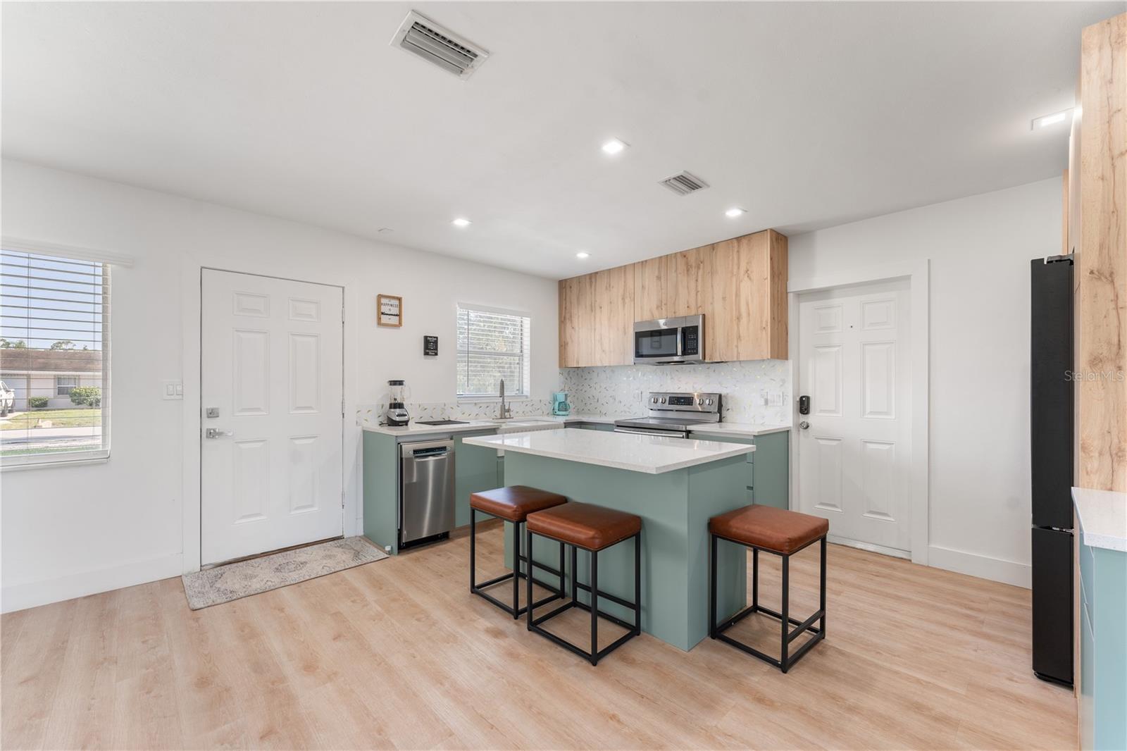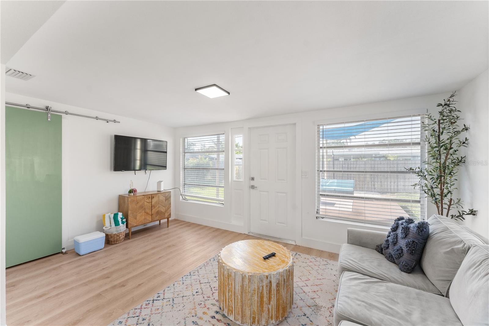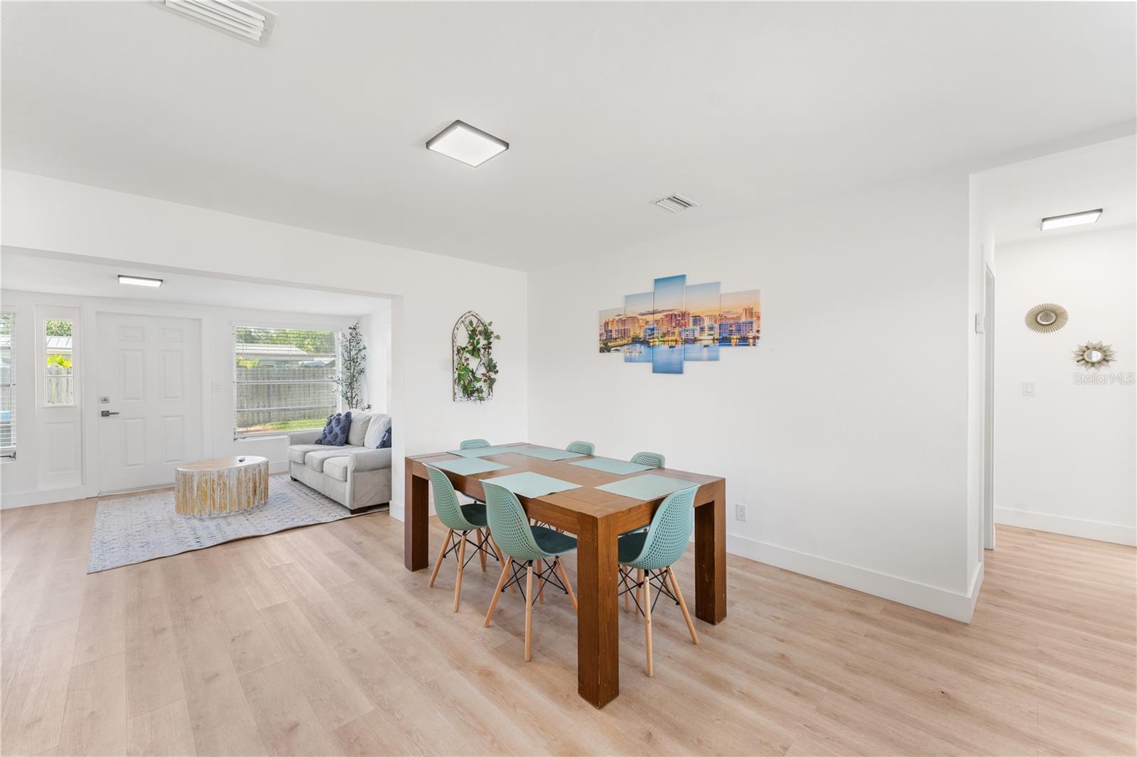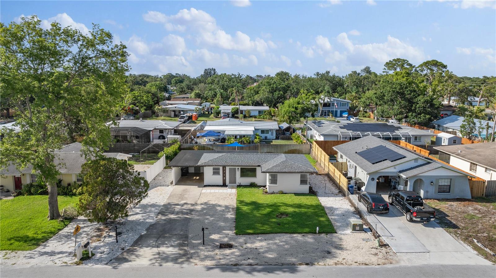 This is a cozy home with modern touch upgrades. The open concept with minimalist modern style makes this home a blend of comfort and convenience. The kitchen brightens with a vibrant cabinet color, quartz countertops, and natural light. There is a master bedroom with an ensuite bathroom, a second bedroom, and a guest bathroom. The patio is fully fenced for privacy, with an open deck for gathering. For your peace of mind, the roof is 1 year old. In flood zone X, no flood insurance is required, no flooding from past hurricanes, no CDD, no HOA, and no deed restrictions. This is a beautiful home for a family looking for a place to live or a vacation home. Offered fully furnished at full price. For investors looking for passive income property, this home has been a rental vacation home with great results and is located just 10 minutes from the fabulous Siesta Key Beach. Don't miss this opportunity, priced to sell! Come to see it, make it yours!