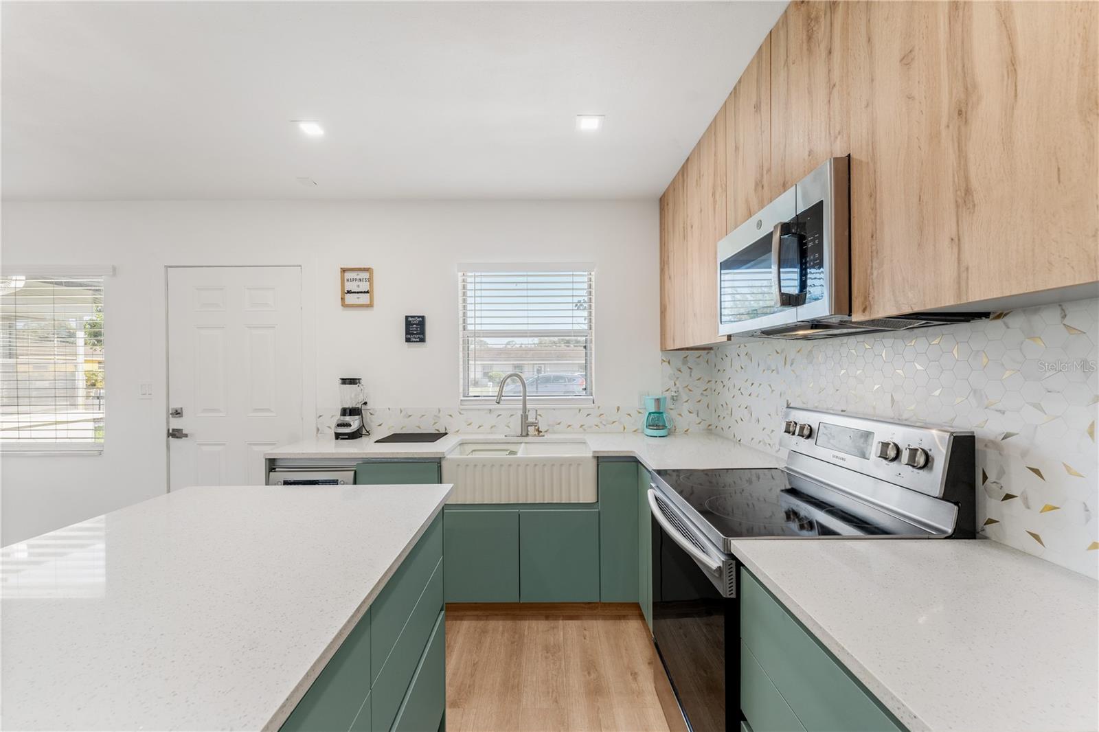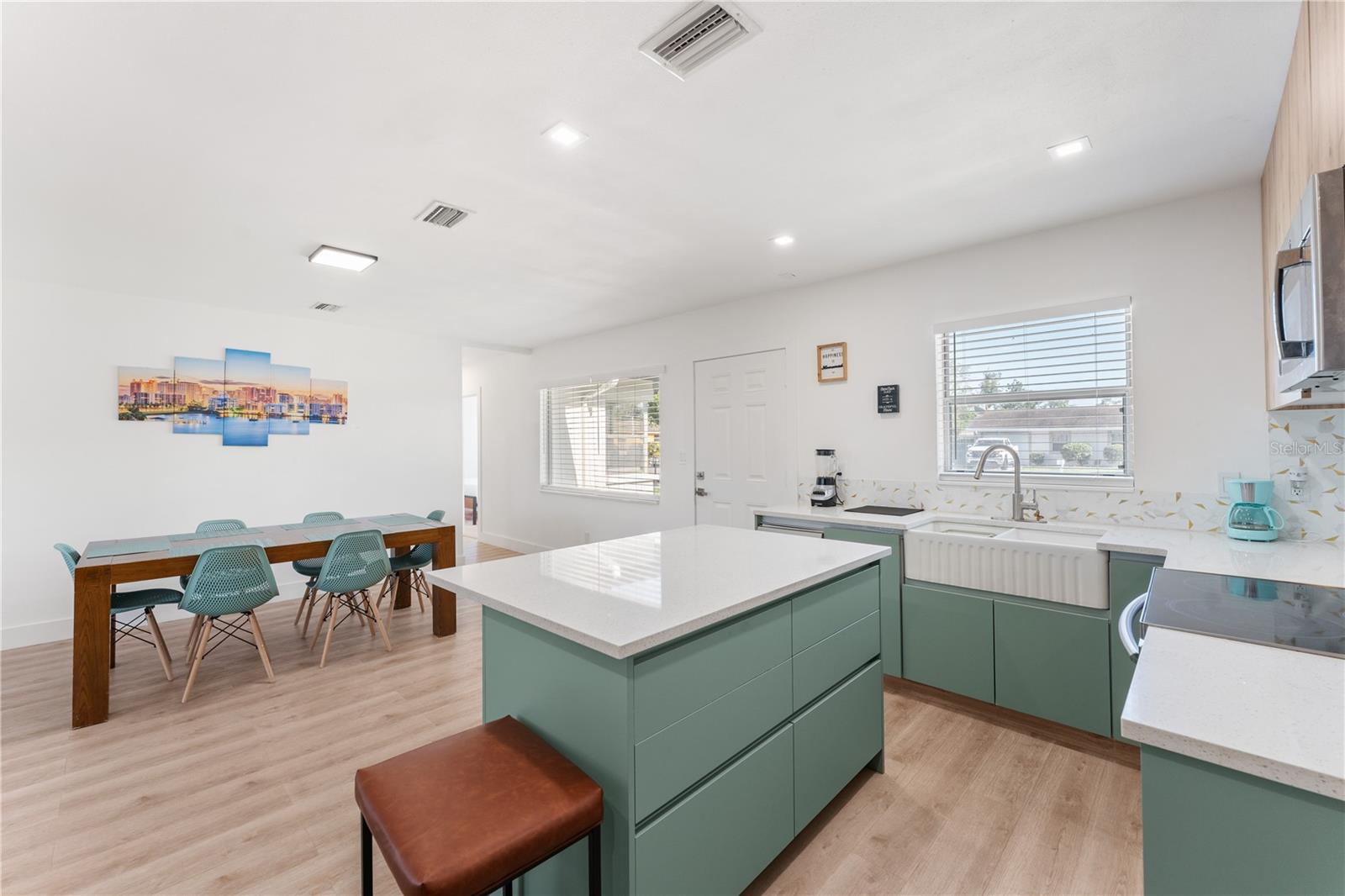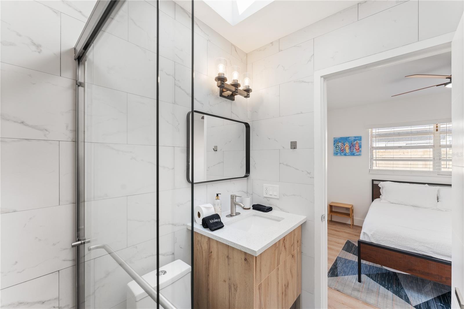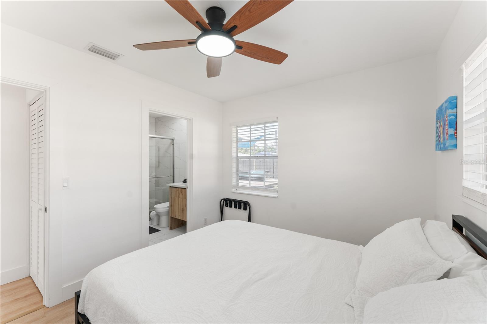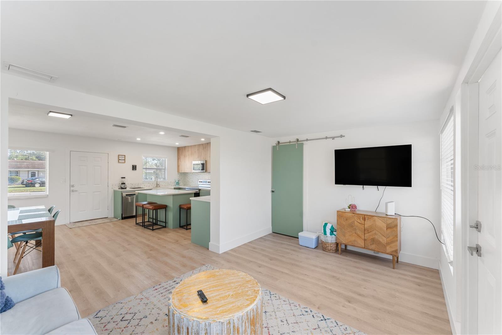 This is a cozy home with modern touch upgrades. The open concept with minimalist modern style makes this home a blend of comfort and convenience. The kitchen brightens with a vibrant cabinet color, quartz countertops, and natural light. There is a master bedroom with an ensuite bathroom, a second bedroom, and a guest bathroom. The patio is fully fenced for privacy, with an open deck for gathering. For your peace of mind, the roof is 1 year old. In flood zone X, no flood insurance is required, no flooding from past hurricanes, no CDD, no HOA, and no deed restrictions. This is a beautiful home for a family looking for a place to live or a vacation home. Offered fully furnished at full price. For investors looking for passive income property, this home has been a rental vacation home with great results and is located just 10 minutes from the fabulous Siesta Key Beach. Don't miss this opportunity, priced to sell! Come to see it, make it yours!
