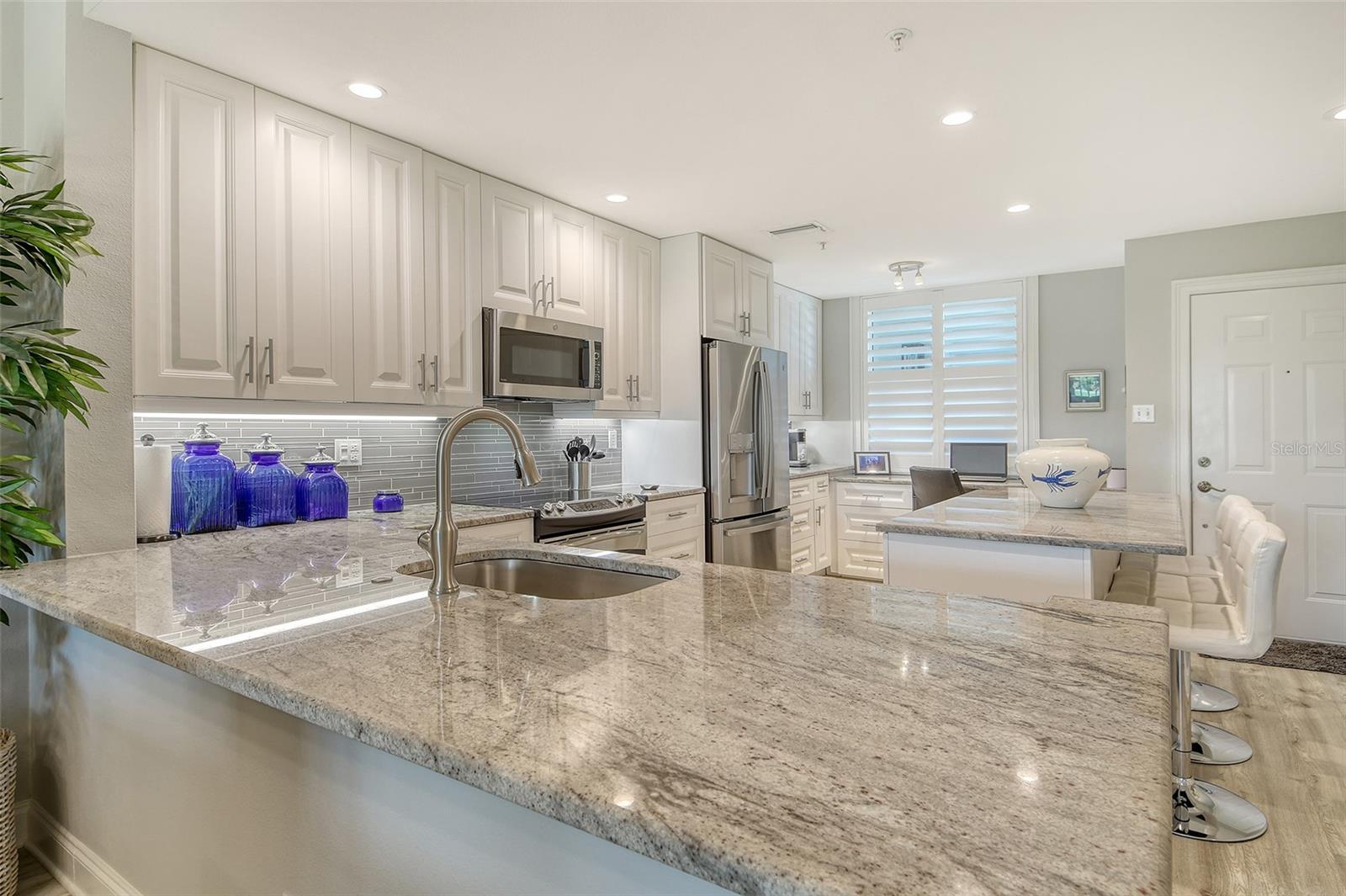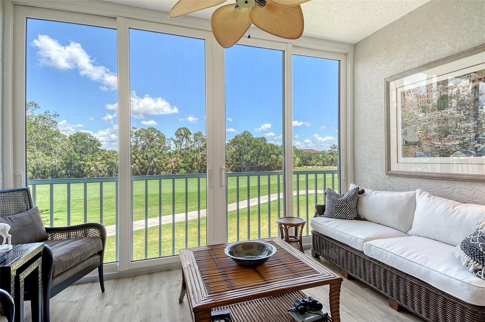 Wow!! Totally updated, modern design Condo Home with large Glassed-in Lanai featuring views of the 8th fairway and preserves. Completely updated Kitchen with Island design, granite counters, stainless steel appliances, glass tiled backsplash and built in desk area. Modern Luxury Vinyl floors through out! Plantation Shutters! Beautiful fixtures throughout the home. Primary Bedroom has its own slider to the lanai area, updated Primary Bathroom with twin sinks, additional cabinetry storage, updated shower. Guest quarters bath updated. The Terraces is a very active community with nightly gatherings, grills for owners use, carport and additional storage shed, community pool and pickleball/tennis court for the unit's owners. A premier member-owned country club, Stoneybrook of Sarasota, is only a short distance from Siesta Key and offers easy access to shopping and borders the Legacy Trail. Ownership in Stoneybrook Golf and Country Club includes an updated clubhouse and restaurant, Har-Tru tennis facility, well-equipped fitness center and additional club pool and spa. Nestled between Downtown Sarasota and Downtown Venice. In 2024, the Golf Course went through a complete redesign and is now complete and open to the members! Schedule your tour of this amazing unit before its too late.