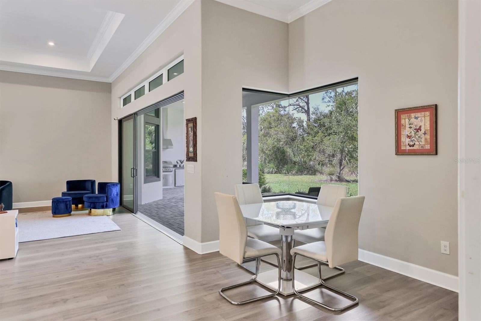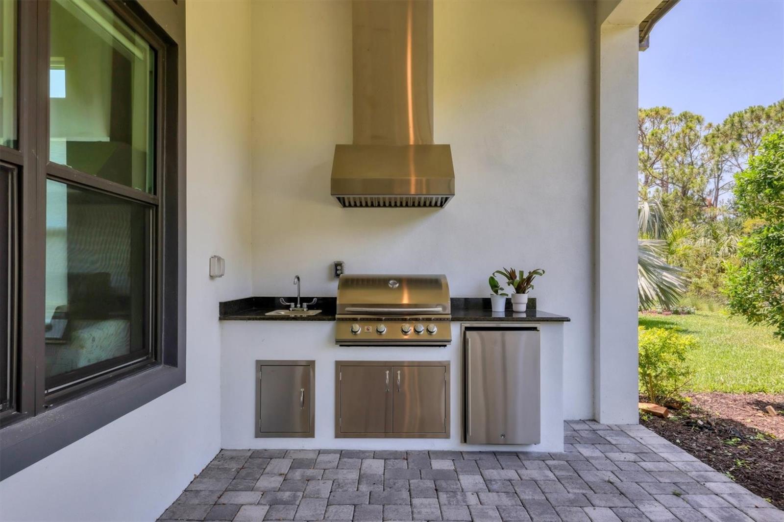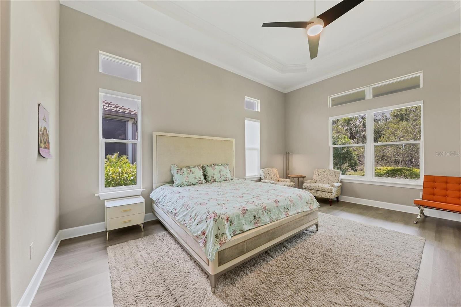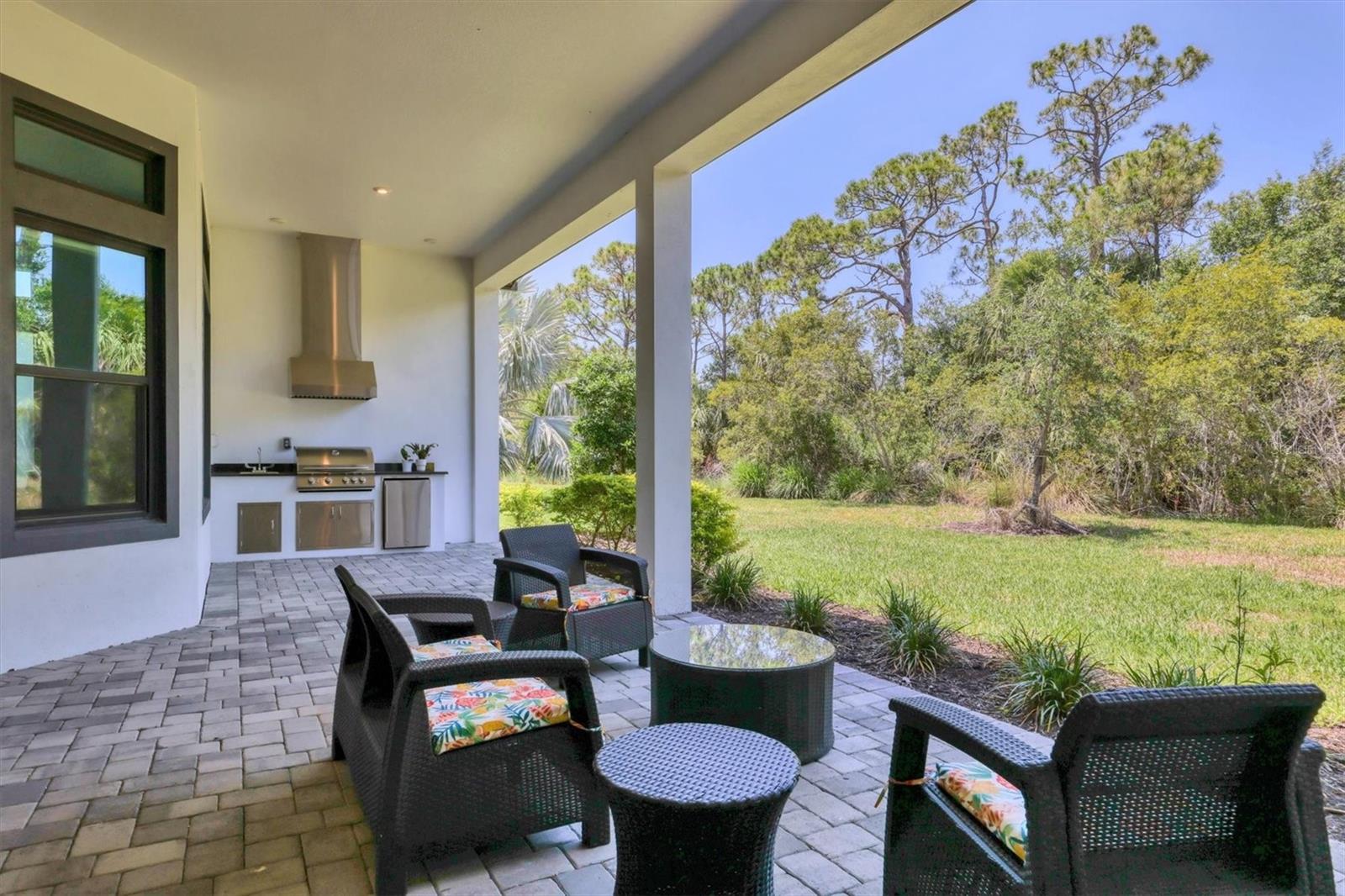 Welcome to Legacy Estates at Palmer Ranch—where timeless elegance and modern comfort meet. Tucked within the exclusive estate section of this coveted community, this exceptional 2022-built Beacon model offers nearly 5,000 square feet of beautifully designed living space with a refined neutral palette and clean, sophisticated lines. Featuring four spacious en-suite bedrooms, four full baths, and two additional powder rooms, this home delivers the perfect balance of grandeur and livability. Soaring ceilings and abundant natural light greet you upon entry, enhancing the open-concept floor plan designed for effortless entertaining and everyday relaxation. At the center of the home, a chef-inspired kitchen pairs sleek custom cabinetry with quartz countertops and top-of-the-line stainless steel appliances. Seamlessly connected to expansive living and dining areas, it creates a warm, welcoming space for hosting and gathering. The primary suite is a true retreat, complete with dual boutique-style walk-in closets, a spa-inspired ensuite bath, and motorized shades for ultimate comfort. Additional main-floor highlights include a dedicated office/den currently used as a meditation room and a versatile media room with direct access to the covered patio. Upstairs, a large bonus room currently functions as a gym and office, offering limitless potential for customization. This level also features a guest bedroom with a full and half bath, providing ample space and privacy for visitors or extended family. Outside, the private backyard oasis backs onto a tranquil wooded conservation area, offering peace, privacy, and opportunity. Whether you envision a custom pool or prefer to enjoy the fully equipped outdoor kitchen, this space is ideal for alfresco dining and Florida-style relaxation. Residents of Legacy Estates enjoy access to world-class amenities: tennis and pickleball courts, bocce ball, a resort-style Olympic-sized heated pool, resistance pool, water playground, fitness center, full-service spa, and an on-site restaurant and bar. Outdoor enthusiasts will love the direct access to Legacy Trail, perfect for biking, jogging, or a morning stroll. Just minutes from Sarasota’s award-winning beaches, cultural destinations, fine dining, shopping, and top-rated schools, this is more than a home—it’s a lifestyle. An extraordinary opportunity awaits. Your legacy begins here.