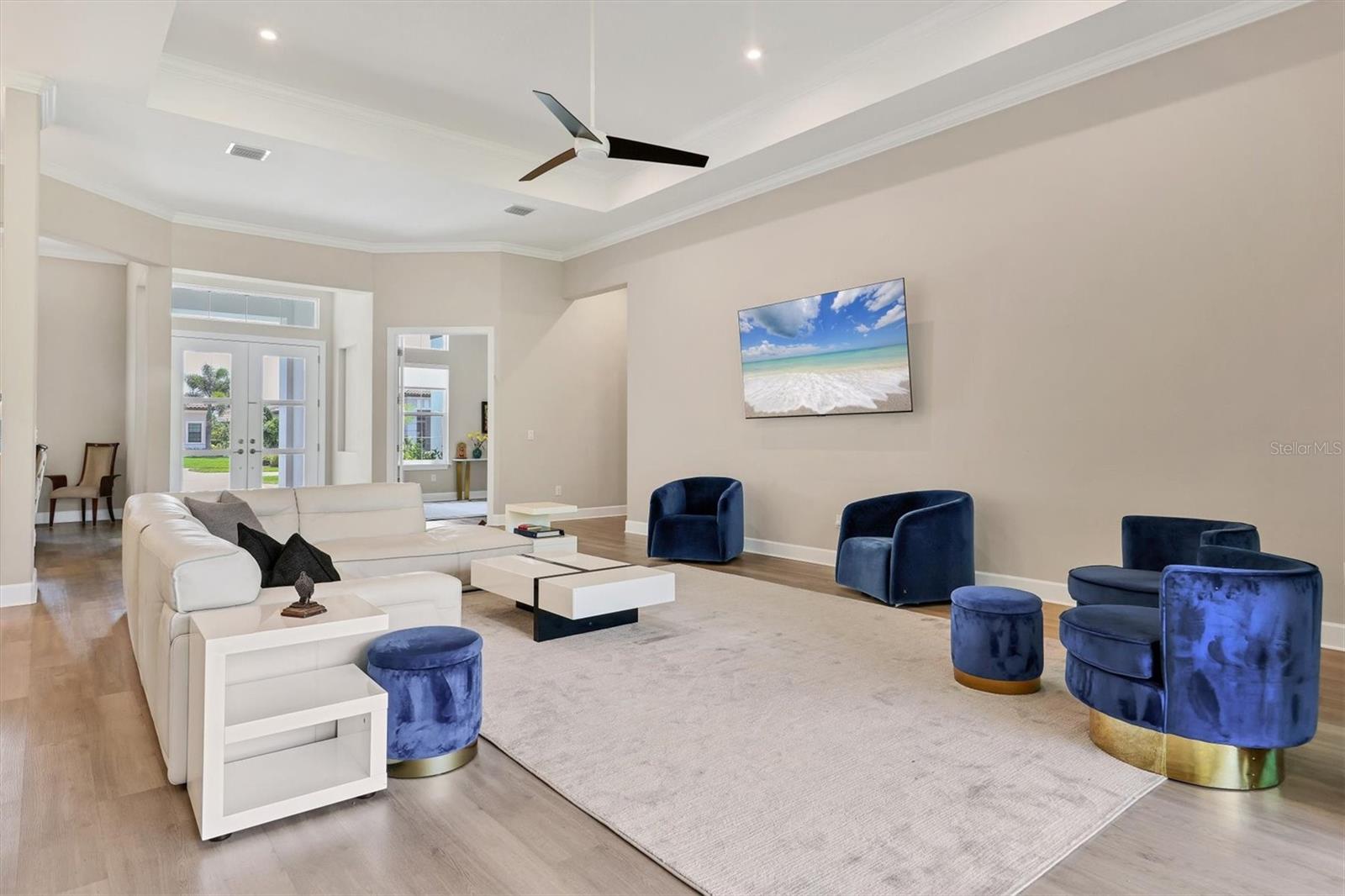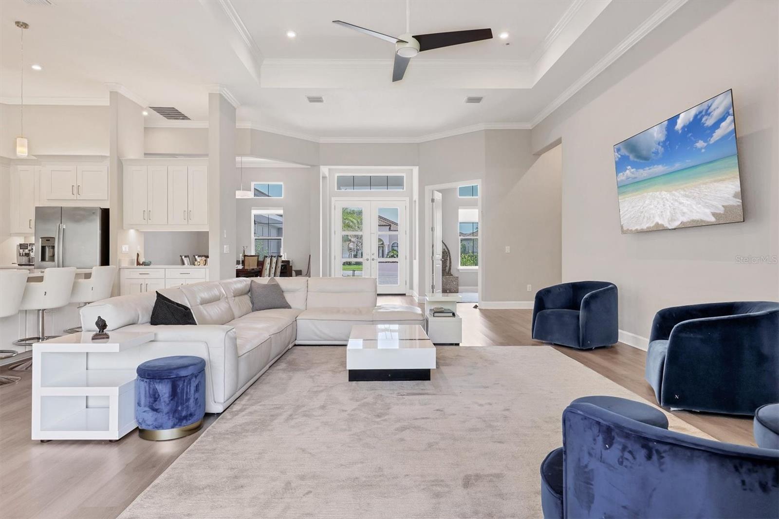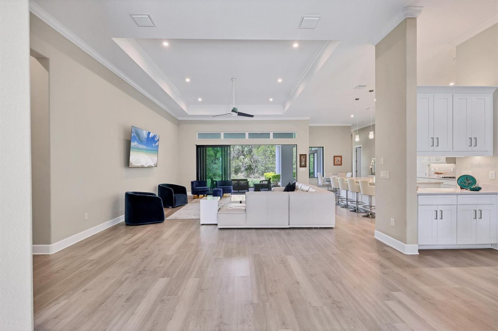Welcome to Legacy Estates at Palmer Ranch—where timeless elegance and modern comfort meet. Tucked within the exclusive estate section of this coveted community, this exceptional 2022-built Beacon model offers nearly 5,000 square feet of beautifully designed living space with a refined neutral palette and clean, sophisticated lines. Featuring four spacious en-suite bedrooms, four full baths, and two additional powder rooms, this home delivers the perfect balance of grandeur and livability. Soaring ceilings and abundant natural light greet you upon entry, enhancing the open-concept floor plan designed for effortless entertaining and everyday relaxation. At the center of the home, a chef-inspired kitchen pairs sleek custom cabinetry with quartz countertops and top-of-the-line stainless steel appliances. Seamlessly connected to expansive living and dining areas, it creates a warm, welcoming space for hosting and gathering. The primary suite is a true retreat, complete with dual boutique-style walk-in closets, a spa-inspired ensuite bath, and motorized shades for ultimate comfort. Additional main-floor highlights include a dedicated office/den currently used as a meditation room and a versatile media room with direct access to the covered patio. Upstairs, a large bonus room currently functions as a gym and office, offering limitless potential for customization. This level also features a guest bedroom with a full and half bath, providing ample space and privacy for visitors or extended family. Outside, the private backyard oasis backs onto a tranquil wooded conservation area, offering peace, privacy, and opportunity. Whether you envision a custom pool or prefer to enjoy the fully equipped outdoor kitchen, this space is ideal for alfresco dining and Florida-style relaxation. Residents of Legacy Estates enjoy access to world-class amenities: tennis and pickleball courts, bocce ball, a resort-style Olympic-sized heated pool, resistance pool, water playground, fitness center, full-service spa, and an on-site restaurant and bar. Outdoor enthusiasts will love the direct access to Legacy Trail, perfect for biking, jogging, or a morning stroll. Just minutes from Sarasota’s award-winning beaches, cultural destinations, fine dining, shopping, and top-rated schools, this is more than a home—it’s a lifestyle. An extraordinary opportunity awaits. Your legacy begins here.