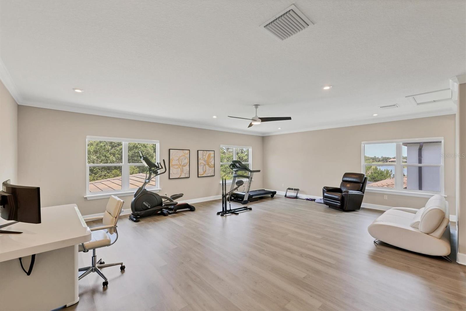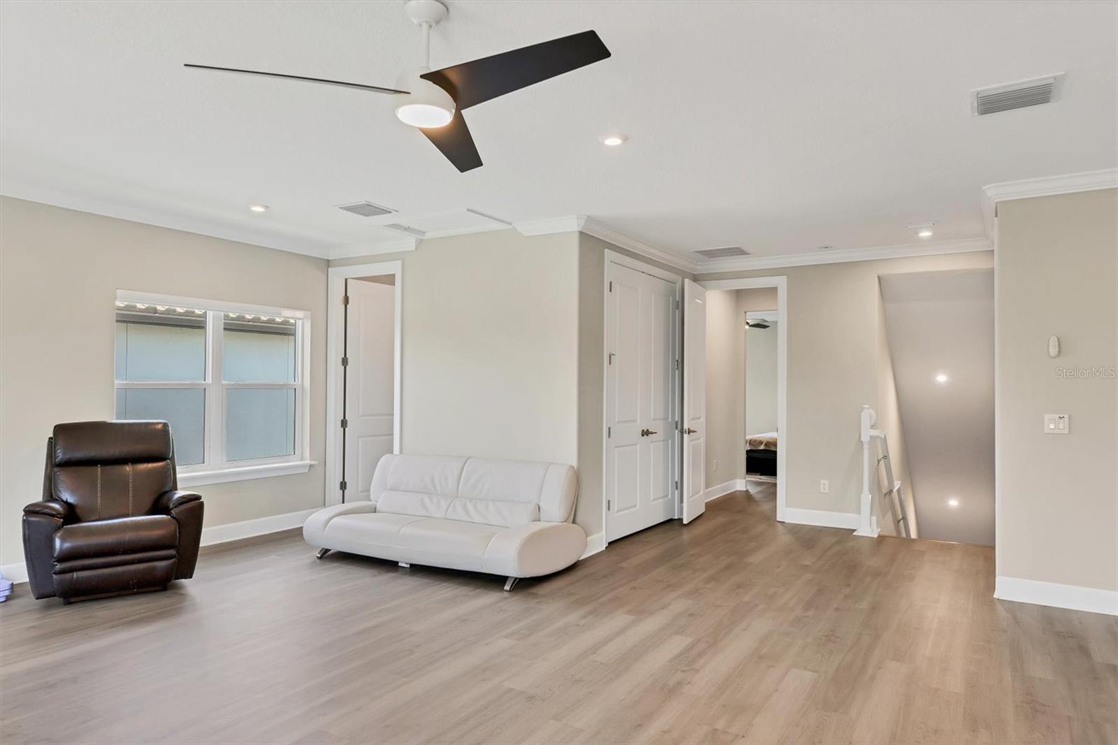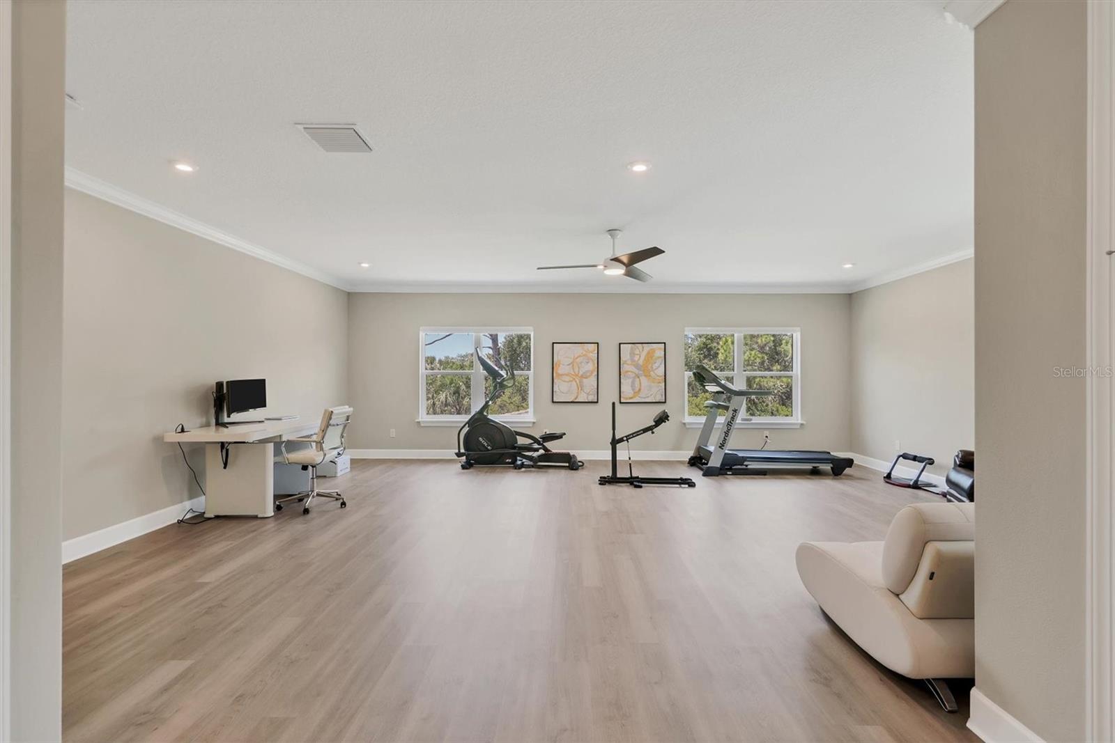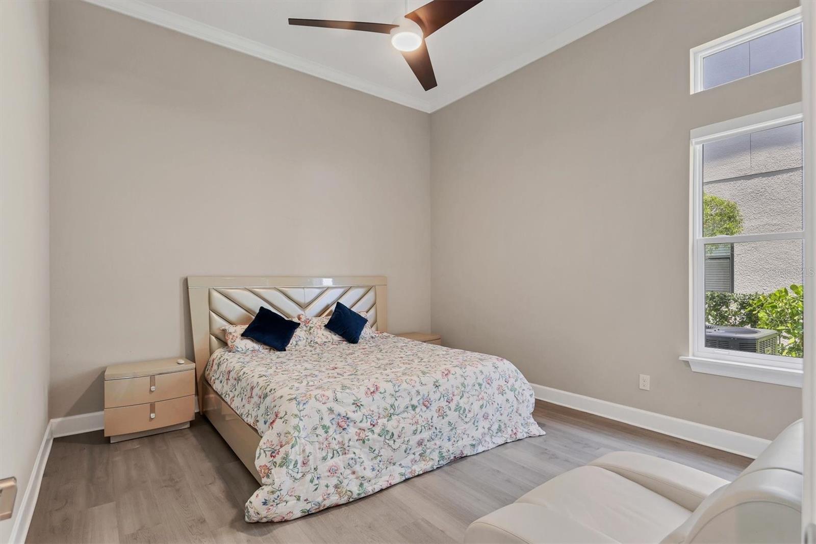 Welcome to Legacy Estates at Palmer Ranch—where timeless elegance and modern comfort meet. Tucked within the exclusive estate section of this coveted community, this exceptional 2022-built Beacon model offers nearly 5,000 square feet of beautifully designed living space with a refined neutral palette and clean, sophisticated lines. Featuring four spacious en-suite bedrooms, four full baths, and two additional powder rooms, this home delivers the perfect balance of grandeur and livability. Soaring ceilings and abundant natural light greet you upon entry, enhancing the open-concept floor plan designed for effortless entertaining and everyday relaxation. At the center of the home, a chef-inspired kitchen pairs sleek custom cabinetry with quartz countertops and top-of-the-line stainless steel appliances. Seamlessly connected to expansive living and dining areas, it creates a warm, welcoming space for hosting and gathering. The primary suite is a true retreat, complete with dual boutique-style walk-in closets, a spa-inspired ensuite bath, and motorized shades for ultimate comfort. Additional main-floor highlights include a dedicated office/den currently used as a meditation room and a versatile media room with direct access to the covered patio. Upstairs, a large bonus room currently functions as a gym and office, offering limitless potential for customization. This level also features a guest bedroom with a full and half bath, providing ample space and privacy for visitors or extended family. Outside, the private backyard oasis backs onto a tranquil wooded conservation area, offering peace, privacy, and opportunity. Whether you envision a custom pool or prefer to enjoy the fully equipped outdoor kitchen, this space is ideal for alfresco dining and Florida-style relaxation. Residents of Legacy Estates enjoy access to world-class amenities: tennis and pickleball courts, bocce ball, a resort-style Olympic-sized heated pool, resistance pool, water playground, fitness center, full-service spa, and an on-site restaurant and bar. Outdoor enthusiasts will love the direct access to Legacy Trail, perfect for biking, jogging, or a morning stroll. Just minutes from Sarasota’s award-winning beaches, cultural destinations, fine dining, shopping, and top-rated schools, this is more than a home—it’s a lifestyle. An extraordinary opportunity awaits. Your legacy begins here.