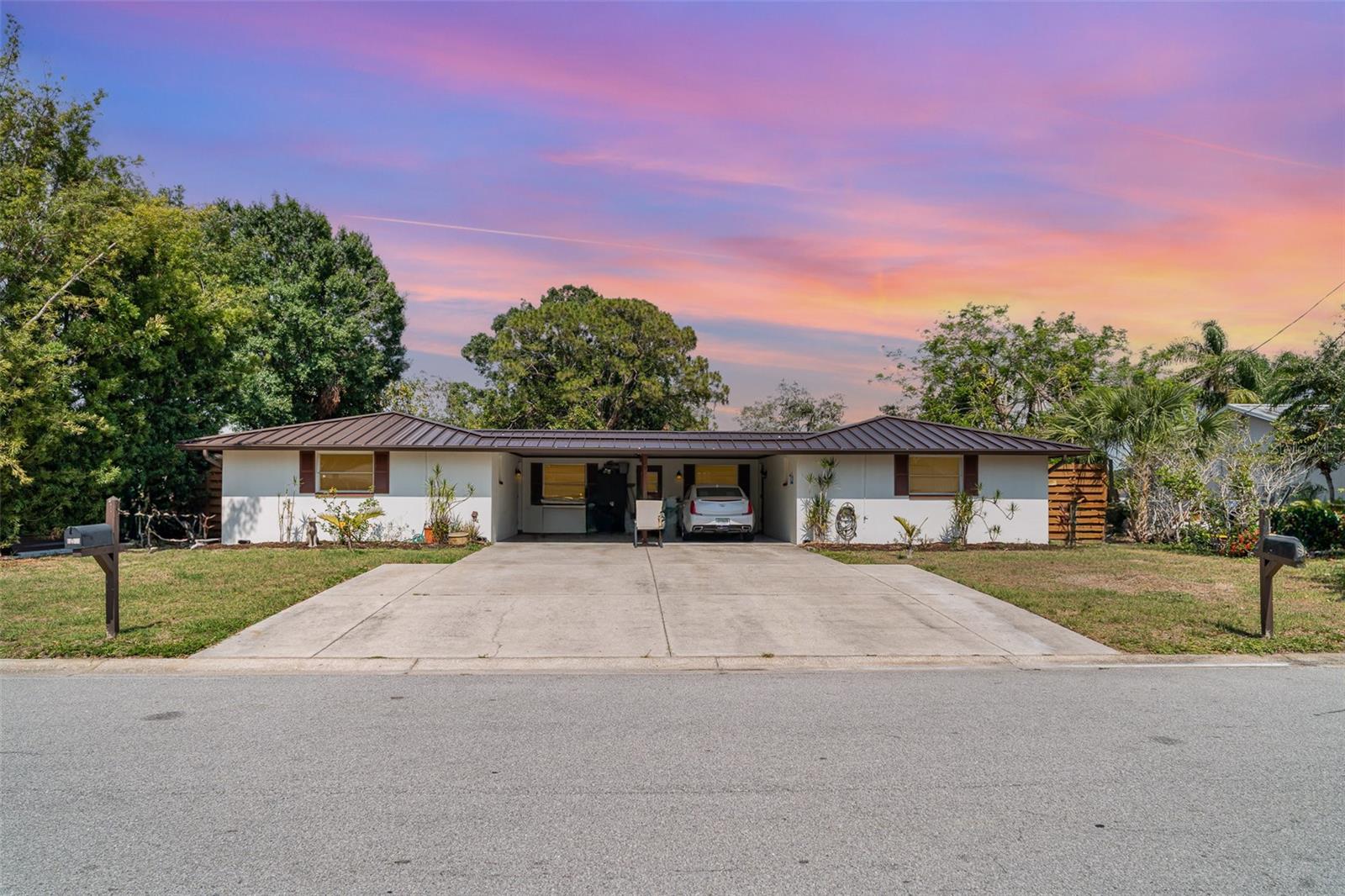 Great Opportunity on this 2-unit duplex, perfect for both investors and homebuyers alike. Live on one side and rent out the other or rent both for great income potential. Each side features two spacious bedrooms and two bathrooms, ready for new owners to update the units. The property boasts a brand-new Metal roof, gutters and soffits in 2025, ensuring durability and peace of mind. Step outside where you can relax while taking in picturesque views of the expansive lot that backs up to a serene, large lake. Additionally, the separate laundry room adds convenience to your daily routine, and the carport provides protection from the elements. Nestled in a tranquil neighborhood surrounded by single-family homes, this duplex offers both privacy and a sense of community. Don't miss the opportunity to make this versatile property your own!