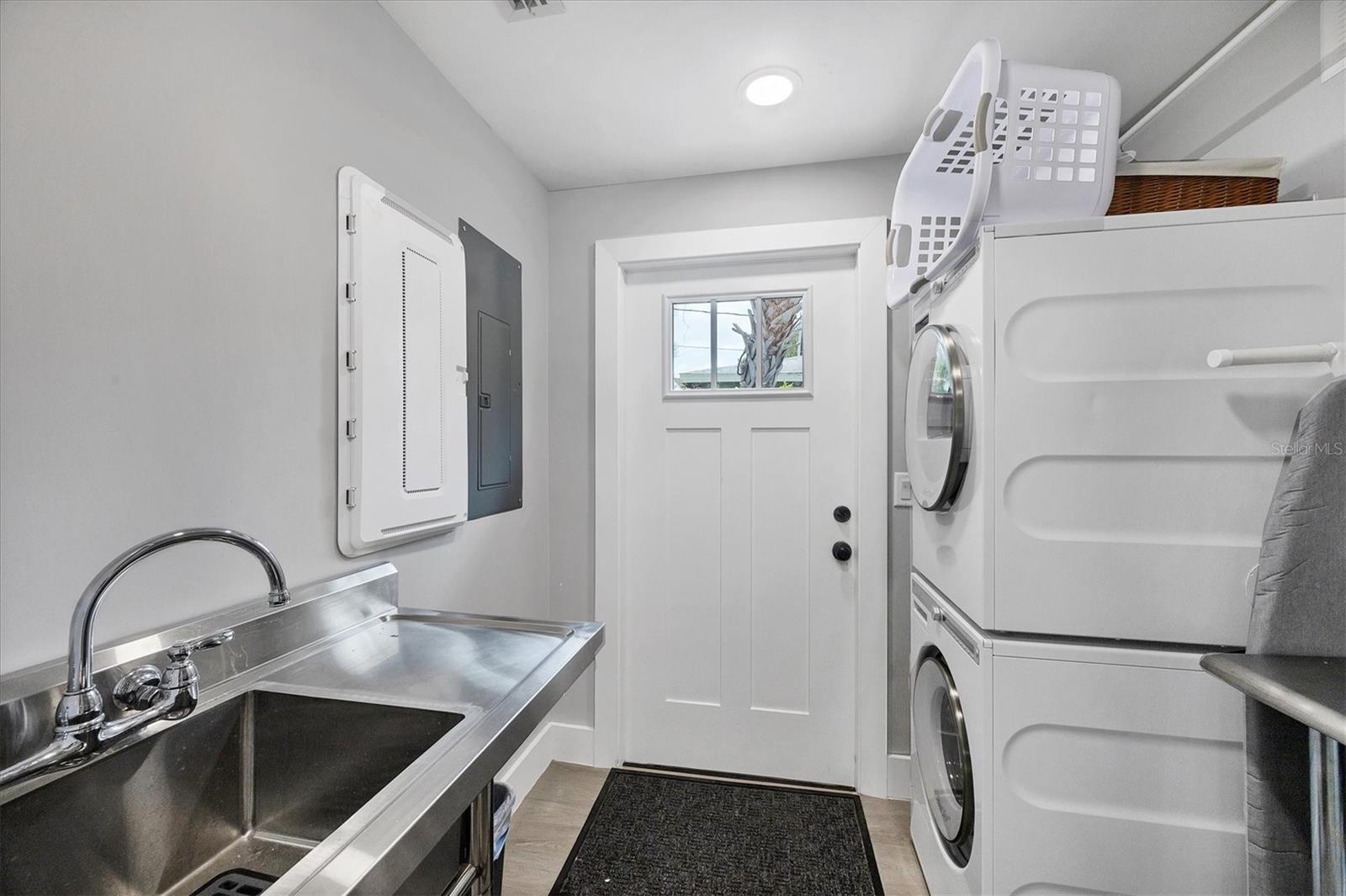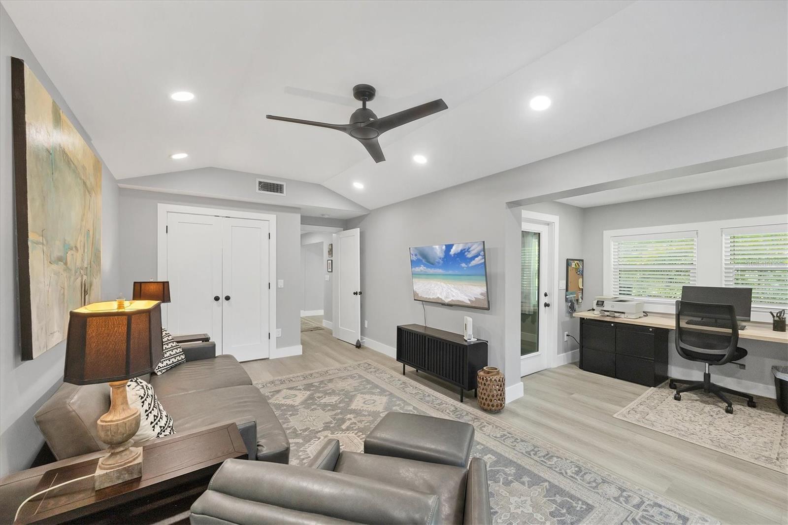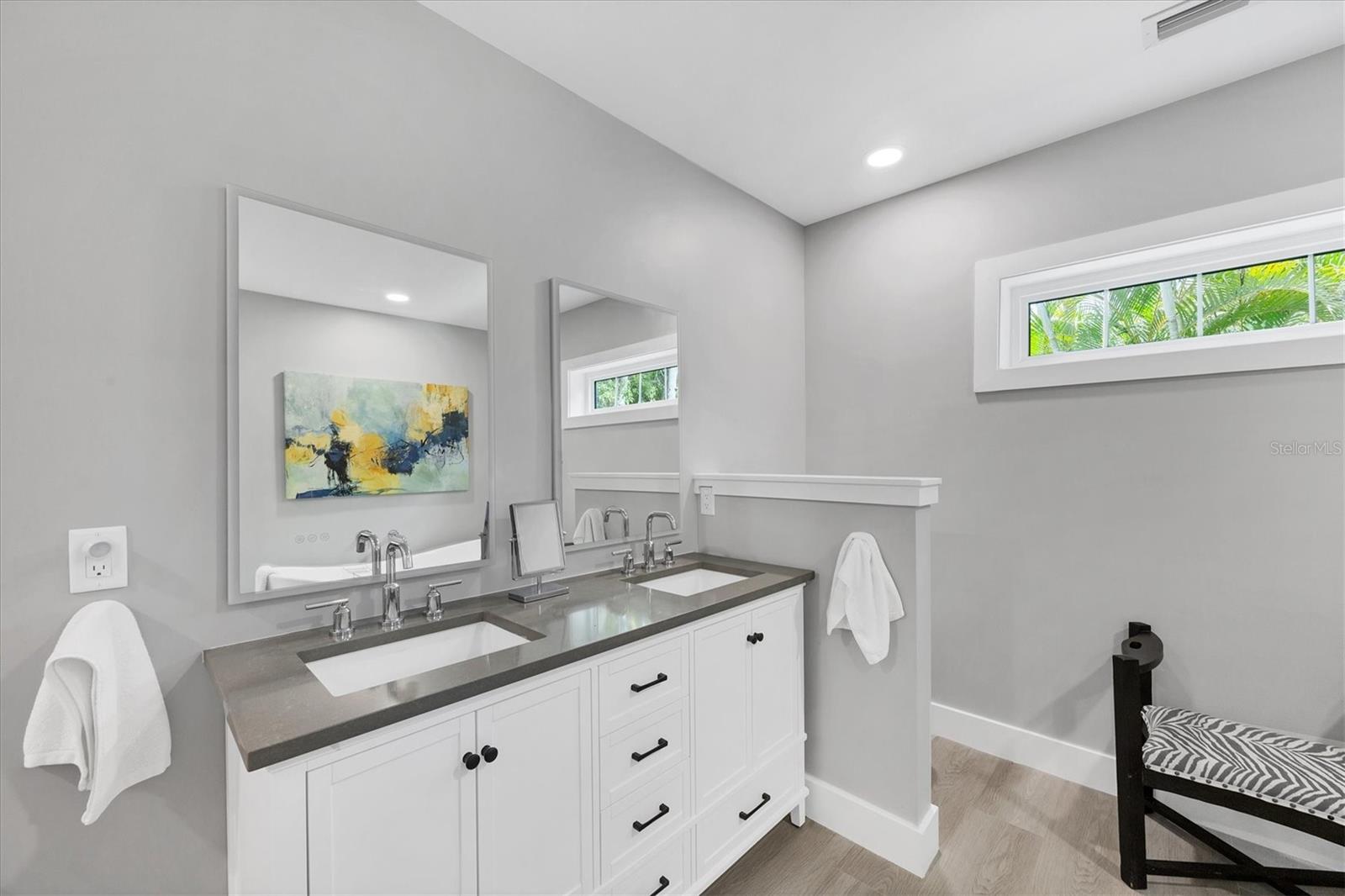 This 2 bedroom 2 bath bungalow located in Historic Laurel Park is an absolute must see. If you want to live in a place that exudes charm but has the conveniences of a new home... this is it. The current owners have recreated the space and maximized the entire property from the outside in. The property is fenced for privacy and for pet owners. The garden encompasses the entire property. From the minute you enter through the front gate, you feel right at home. A screen enclosed front porch... with led lights, wood look ceiling and even a fan... welcome you into the entry. The home has a very open concept. The living room is has custom built-ins as well as a fireplace. The well thought out kitchen has custom cabinetry. White shaker doors and drawer fronts, quartz counters, an oversized walk-in pantry, stainless steel appliances and a breakfast counter are all apart of the designer upgrades. An oversized dining room with a French door to the garden compliments the living space. The owner's suite was large walk-in closet, a custom designed bath...complete with soaking tub, separate shower, dual sinks and lighted vanities. The guest suite currently being used a family room has cozy corner office. All living areas have luxury vinyl planking, impact windows with casing, shaker profile baseboards, shaker entry doors, new hardware, lighting and paint. The laundry room has a stainless sink and counter. This home is classically designed to stand the test of time. The mechanicals have been updated, insulation has been added and even a generator has been installed. The urban neighborhood is located just minutes to downtown Sarasota, Selby Botanical Gardens, The Bay, area beaches, all of the area restaurants and Sarasota's performing district.