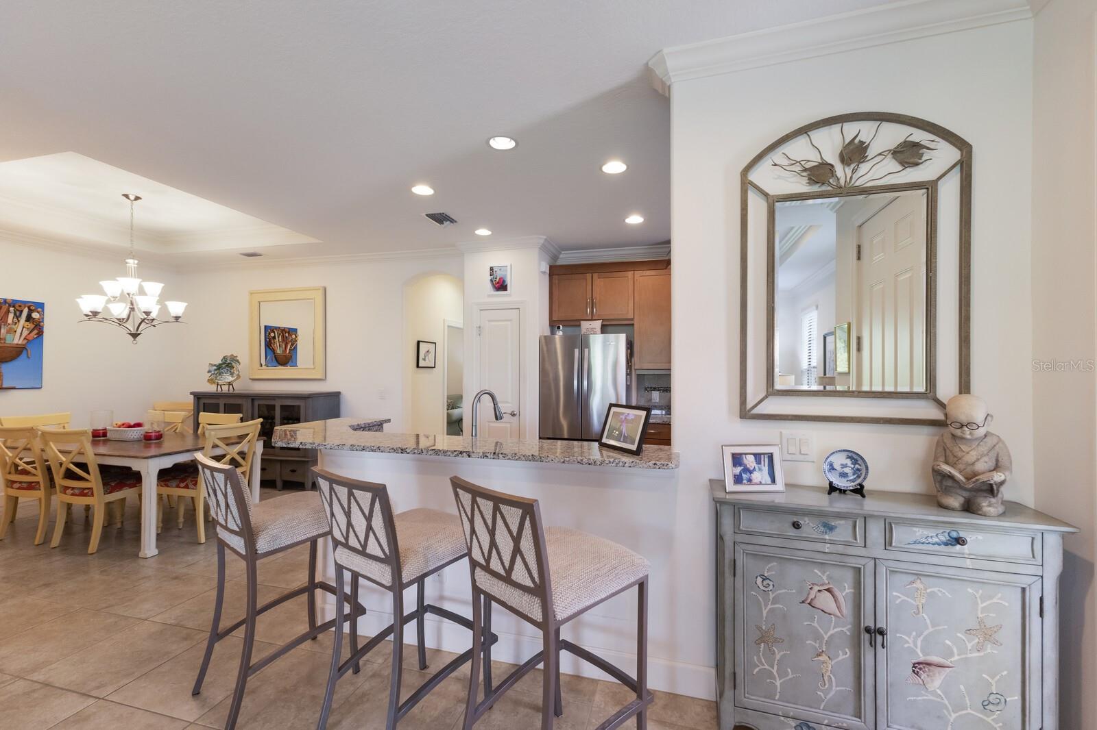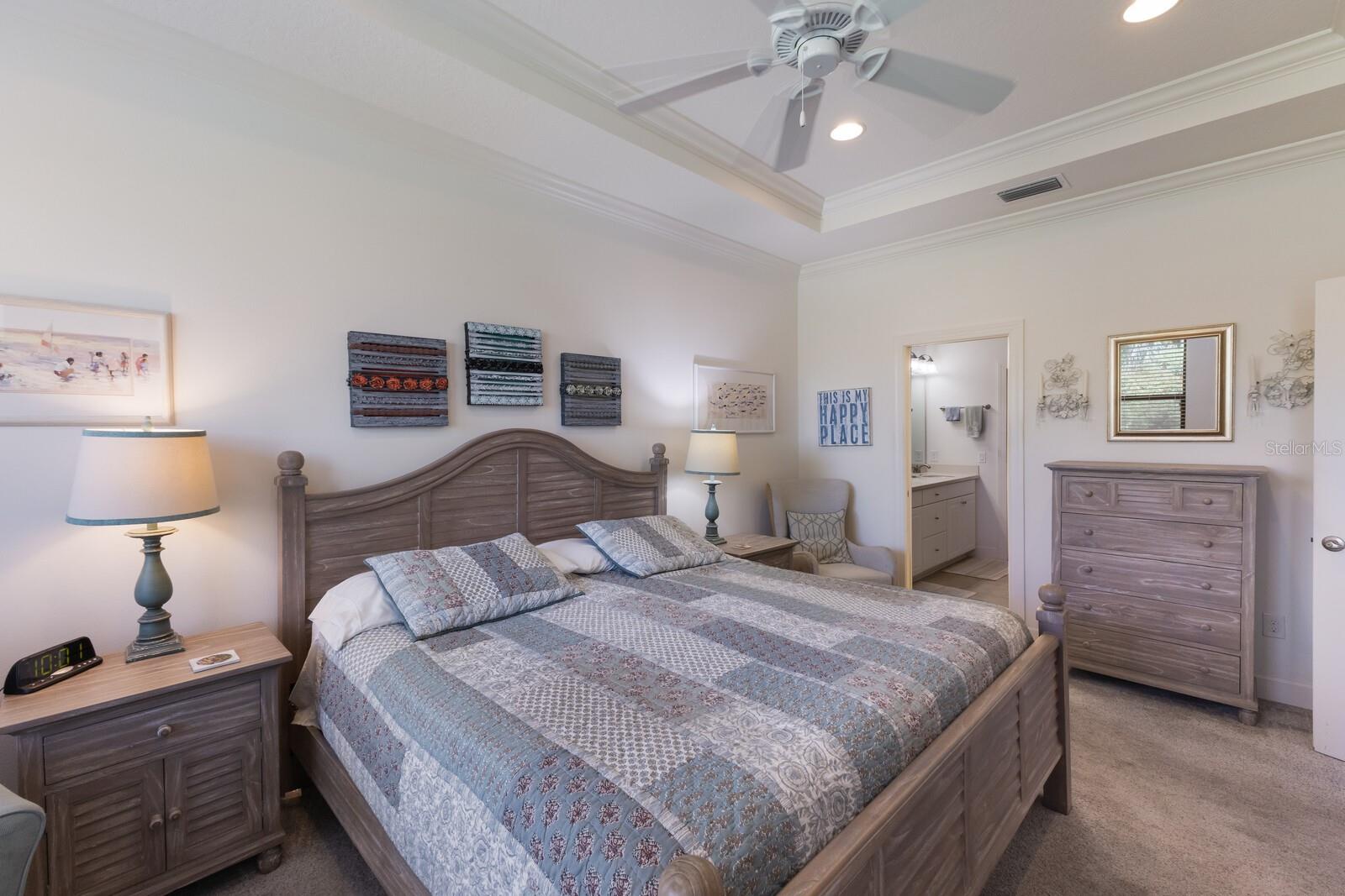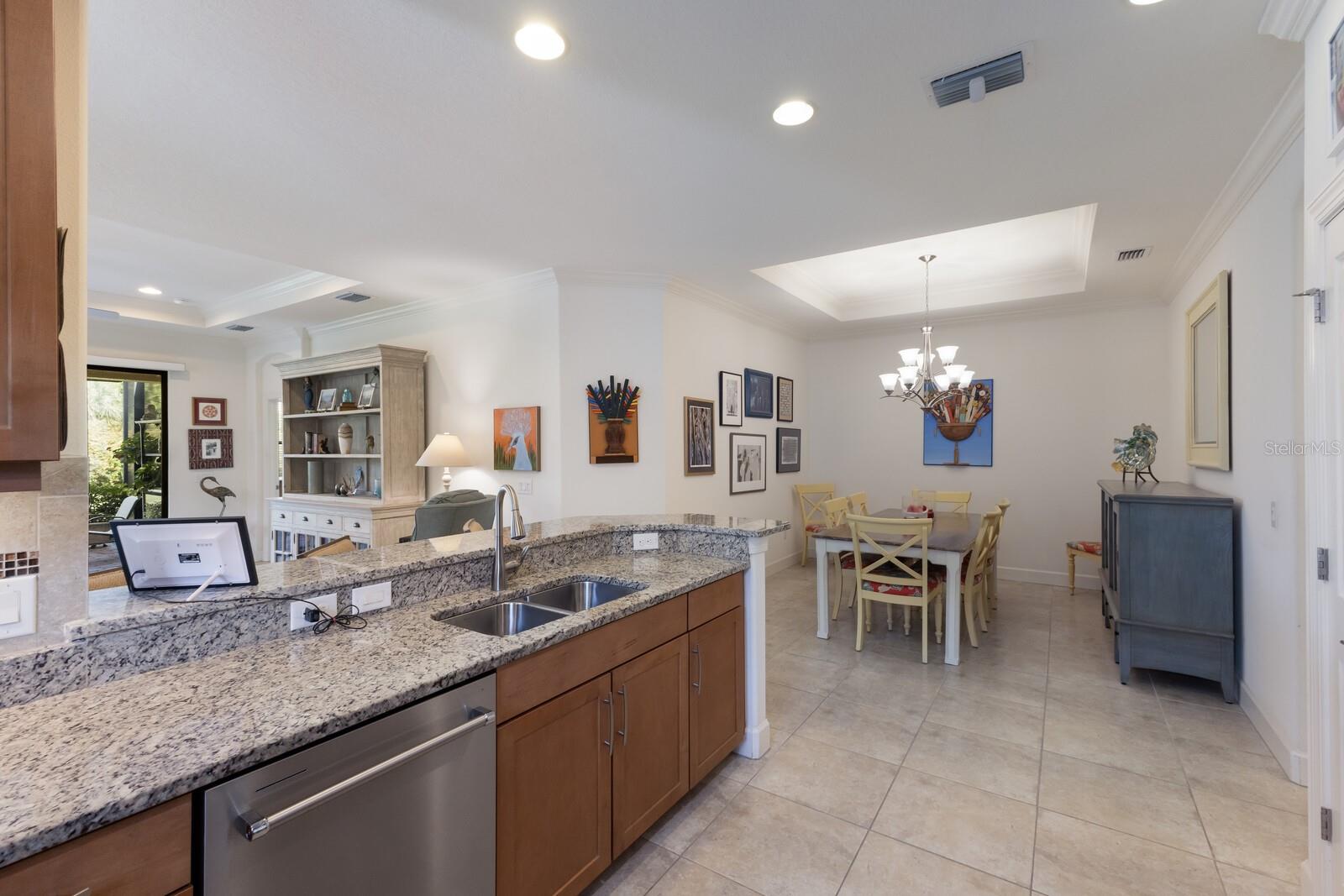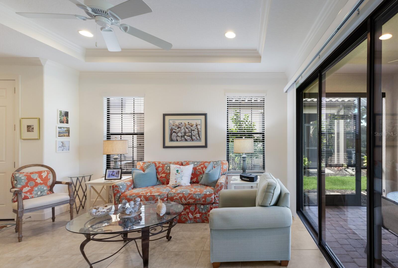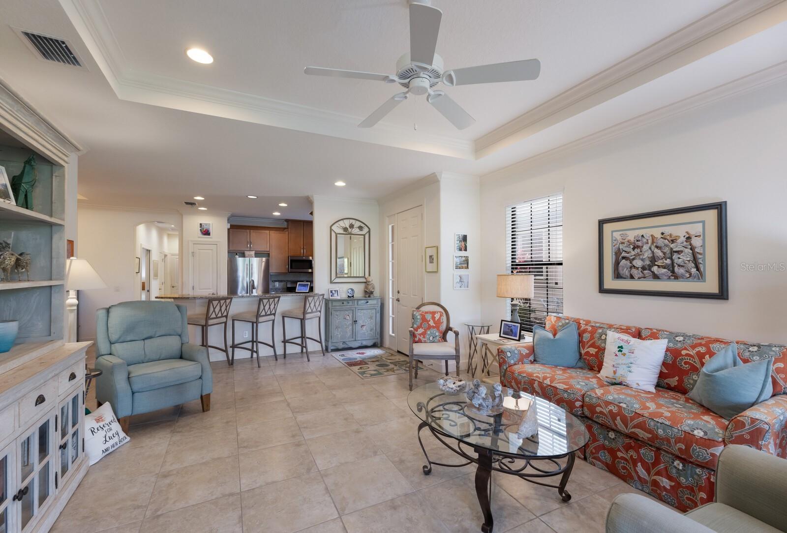 LOCATION, LOCATION, LOCATION!!! ESPLANADE BY SIESTA KEY IS A VERY SPECIAL COMMUNITY LOCATED VERY CLOSE TO SIESTA KEY, JUST A FEW MINUTES TO WORLD FAMOUS SIESTA BEACH, GREAT RESTAURANTS AND CONVENIENT SHOPPING. ESPLANADE BY SIESTA KEY IS A GATED COMMUNITY, HAS A BEAUTIFUL CLUB HOUSE, RESORT POOL, SPA, TENNIS AND PICKLEBALL COURT, FITNESS CENTER, FIRE PIT WITH SEATING, LAKE SIDE PATIO, AND A DOG PARK. THE REASONABLE HOA FEE INCLUDES EXTERIOR BUILDING AND LANDSCAPE MAINTENANCE! UPGRADED FLOOR TILE ACCENTS THIS BEAUTIFUL HOME. THE GREAT ROOM HAS A HIGH CEILING WITH A TRAY AND CROWN MOLDING. SEPARATE DINING ROOM WITH A TRAY CEILING TOO! CHEF'S KITCHEN ACCENTED BY UPGRADED WOOD CABINETS, STONE COUNTERTOPS, STAINLESS APPLIANCES, BREAKFAST BAR, NATURAL GAS COOKING! MODERN DESIGN WITH THE KITCHEN OPENING TO THE GREAT ROOM. SPLIT BEDROOMS ADD PRIVACY. THE GUEST BEDROOM IS EN SUITE AND HAS A WALK-IN CLOSET. SPACIOUS PRIMARY BEDROOM, LARGE WIC WITH BUILT-IN DRESSER DRAWERS. THE GREAT ROOM OPENS TO A BRICK PAVERED EXTENDED LANAI AND PRIVATE BACK YARD. THIS HOME SHOWS LIKE A MODEL!
