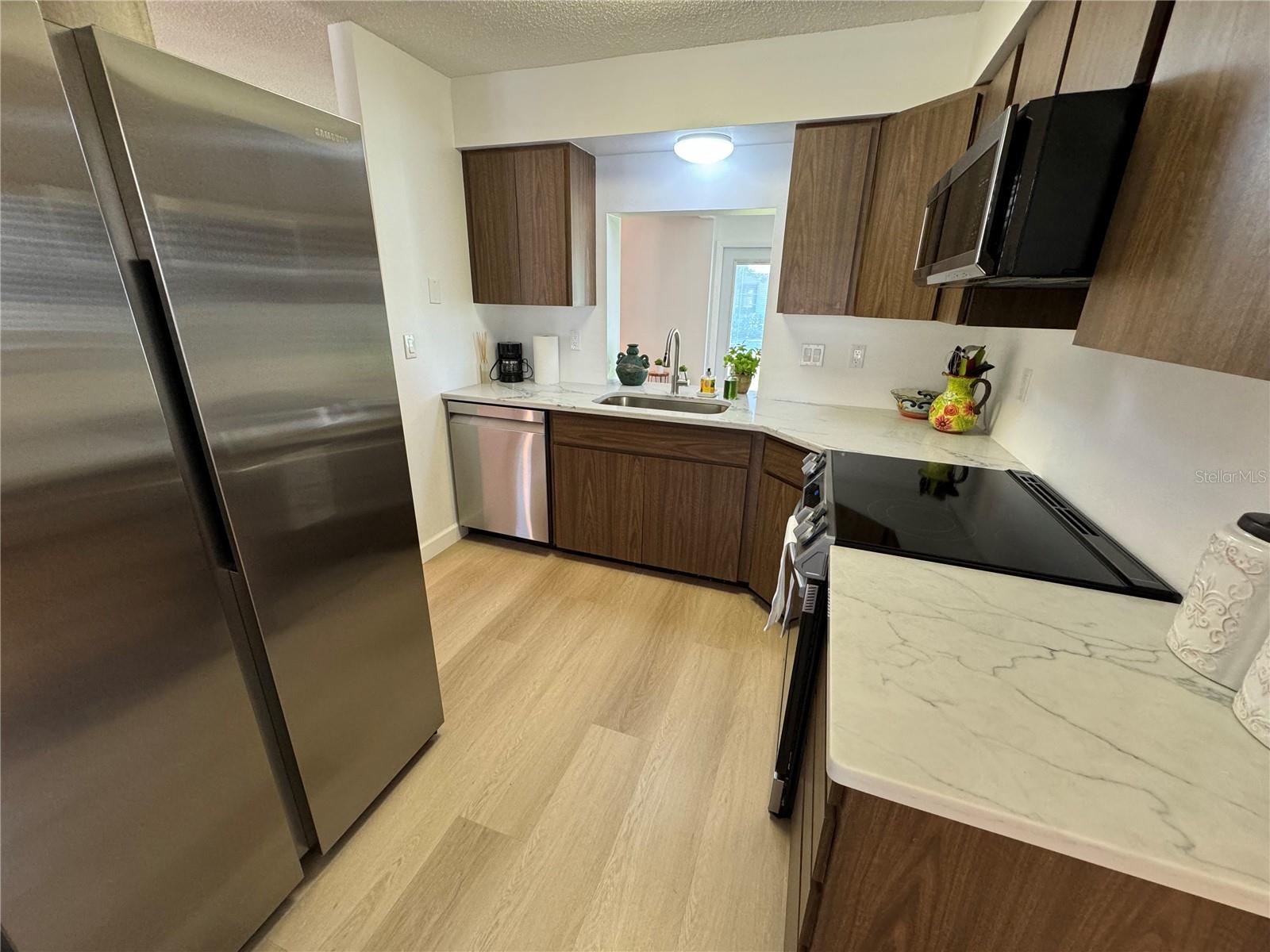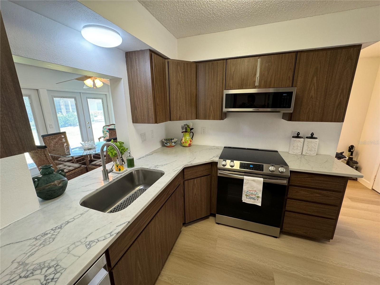 Check out this well maintained Villa with a NEW ROOF in 2022. Recently updated with beautiful New luxury Vinyl floors and baseboards thru-out, New appliances, updated kitchen with beautiful new quartz tops. Spacious floor plan with 1638 sq. ft. of living space, 2 Bedroom 2 Bath home in highly desirable Forest Pines, a 55+ community with heated swimming pool, shuffleboard courts, active Clubhouse with fitness room. You will love the Maintenance Free Living with the low monthly fee which covers: Cable TV, Lawn and Grounds care, Exterior Painting. This is a great neighborhood for walking and meeting new friends. Forest Pines is a superior location, close to world famous beaches, downtown Sarasota and just a short walk to the next door Village of Pinecraft, where you can enjoy Amish Restaurants, Ice cream and coffee shops. Move-In ready and easy to show.