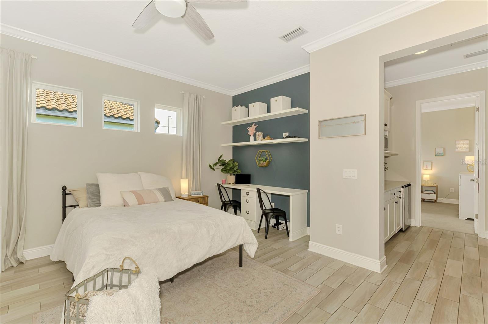 **Recent neighborhood sales support this home’s value, and the new improved list price has been strategically positioned just below the latest comparable closing to ensure strong competitiveness and appraisal confidence. FANTASTIC opportunity in a BEAUTIFUL neighborhood! SCHEDULE YOUR SHOWING NOW!** Welcome to this stunning two-story home in the luxurious gated community of Rivo Lakes. This beautifully maintained 5-bedroom, 3.5-bath residence offers a three-car garage (split layout with one bay on the left and two at the front), lush tropical landscaping, and inviting covered front and rear porches. Double entry doors create a grand first impression with a direct sightline through the home to the screened-in pool and tranquil pond beyond. Inside, a dramatic two-story foyer and sweeping staircase set the tone. The elegant living room features decorative crown molding, custom built-in cabinetry, and three large sliders that open to the covered patio, pool, and serene water views. The expansive chef’s kitchen includes a large eat-at island, abundant neutral cabinetry, stainless steel appliances, quartz countertops, and a designer backsplash. The adjacent dining area offers oversized windows and generous space, ideal for entertaining. The main-floor primary suite is a private retreat with soaring ceilings, a luxurious five-piece bath with walk-in shower, deep soaking tub, dual vanities, and a custom walk-in closet with built-ins. Also on the main floor—just off the entry—is a bedroom, full bath, study/den, and a convenient mini-kitchenette, perfect for multigenerational living, guest quarters, or a dedicated workspace. Upstairs, a spacious loft with barn doors overlooks the pond and functions as a flexible bonus room—ideal for a bedroom, media room, or recreation space. Two additional large bedrooms and a full bath with dual sinks complete the upper level. Outdoor living shines with a private screened lanai, resort-style pool with waterfall, play deck, and a paver patio backing to the pond—offering beautiful sunset views. Additional Features: • Tile roof & stucco exterior • Hurricane impact windows (Perf Grade PG LC-PG50, Missile Level D), doors & garage doors • Decorative paver driveway • Professionally maintained tropical landscaping • Fresh interior paint & easy-care tile flooring throughout Community Highlights: Rivo Lakes is a gated conservation community known for luxurious, energy-efficient homes surrounded by nature. Enjoy open green spaces, walking paths, and a central lake. Conveniently located just 15 minutes from Siesta Key Beach and close to Myakka State Park, Twin Lakes Park, St. Armands Circle, and top-rated schools—including the new Skye Ranch K-8 (2025).