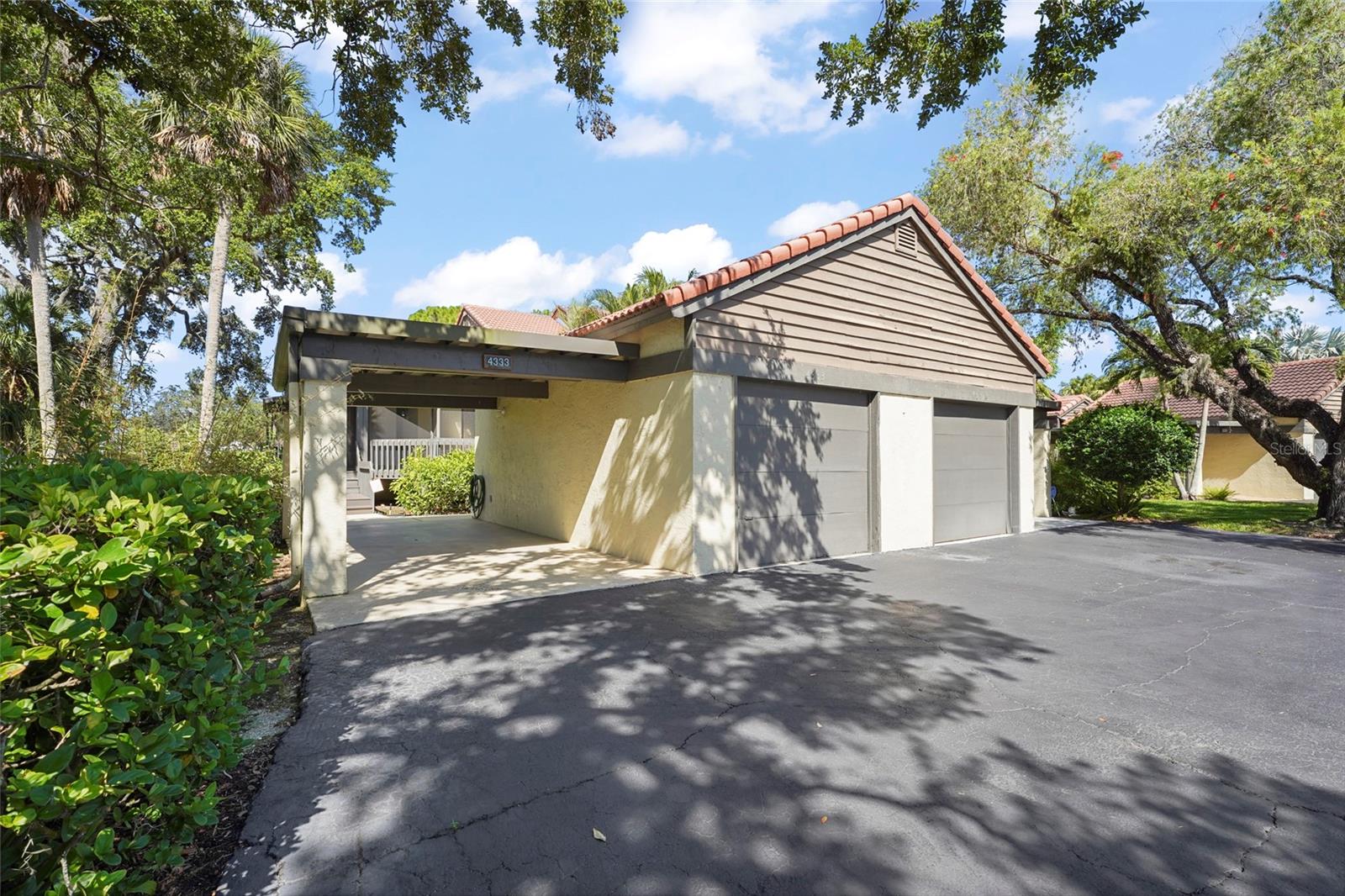 One or more photo(s) has been virtually staged. Tucked away in the sought-after community of Lakes of Sarasota, this charming corner-unit villa offers the perfect blend of space, privacy, and serene surroundings. With 2 bedrooms, 2 bathrooms, and almost 1,200 square feet of living space, this split floor plan home welcomes you with vaulted ceilings and a cozy fireplace that creates a warm and inviting atmosphere the moment you step inside. The kitchen is thoughtfully designed with ample cabinetry, granite countertops, and stainless steel appliances—ideal for both everyday living and entertaining. The spacious primary suite features a walk-in closet, an ensuite bathroom with a double sink vanity and stand-up shower, and a set of double doors that lead out to a peaceful screened-in deck. You’ll love the wrap-around screened-in porch, providing the perfect outdoor retreat to enjoy your morning coffee or unwind in the evenings, all while taking in the lush, mature landscape that surrounds the property. Lakes of Sarasota is known for its resort-style amenities and natural beauty. From the scenic walking paths and central lake to the community clubhouse, fitness center, tennis and basketball courts, and two pools—there’s something for everyone to enjoy. Located just minutes from Sarasota’s best beaches, shopping, dining, and entertainment options—including the Legacy Trail, Downtown Sarasota, Siesta Key, and UTC—you’ll find convenience and tranquility in one perfect location. All of this, plus low monthly fees that include exterior maintenance and common area insurance, makes this a wonderful place to call home.