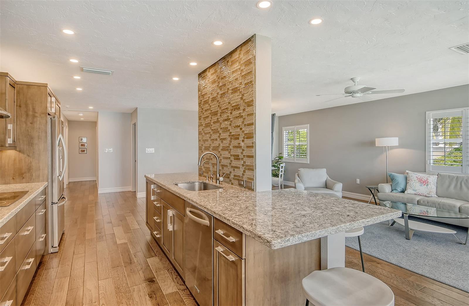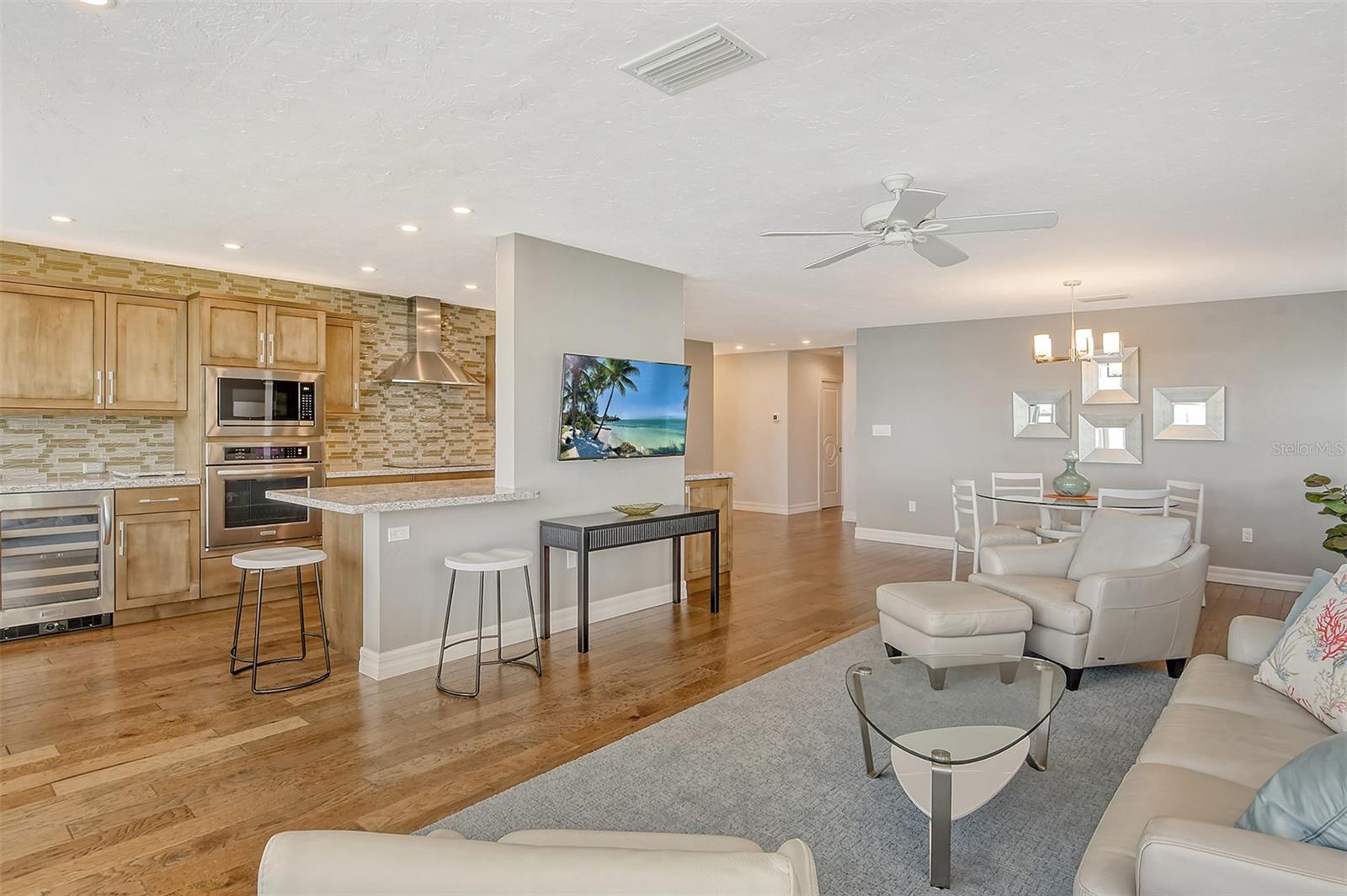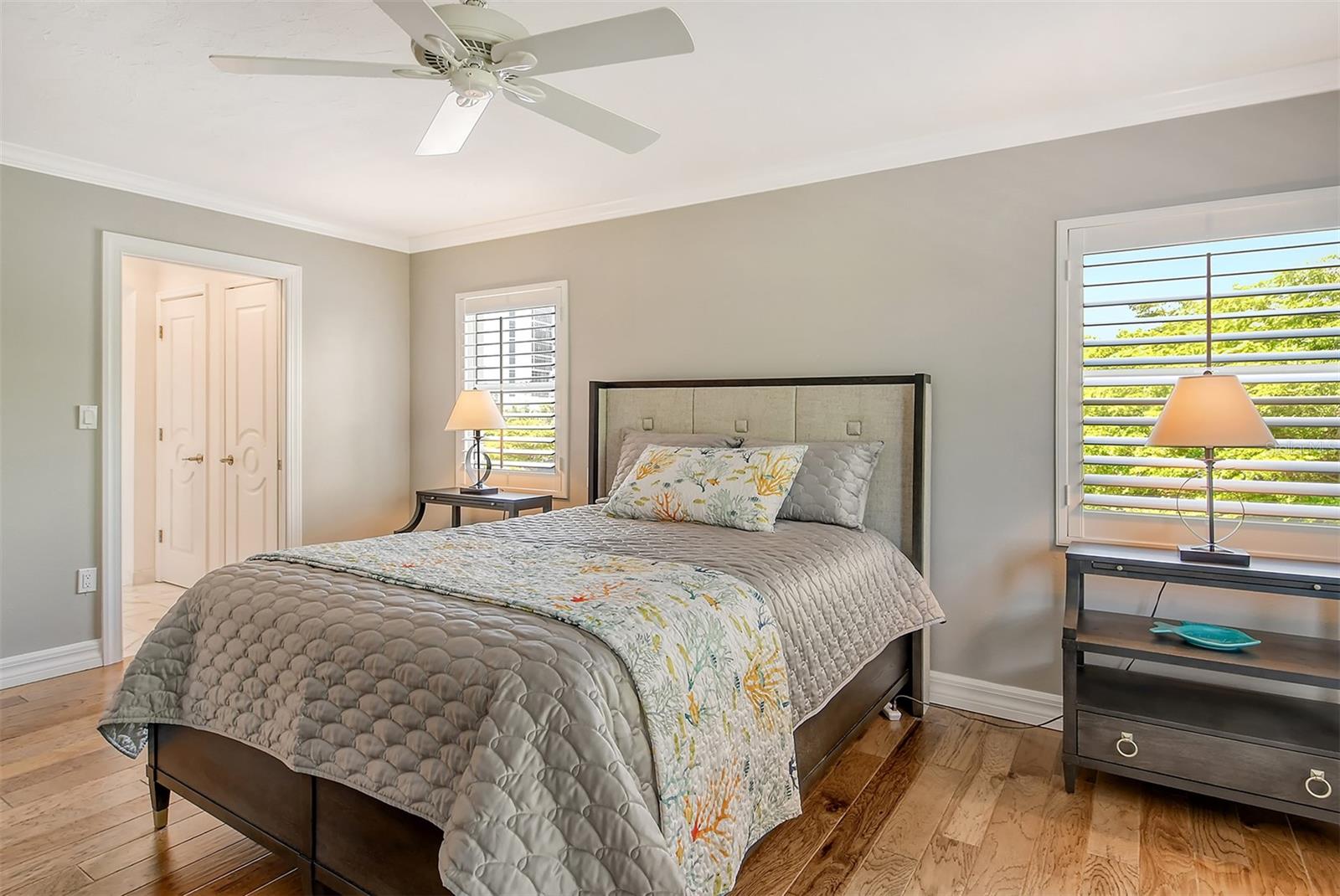 Experience Exquisite living at Harbor House South, where every moment is framed by breathtaking 180-degree Southerly views across Sarasota Bay. This stunning 3rd-floor, 2-bedroom, 2-bath end unit offers an expansive array of windows, the large one incorporates a cozy window seat that invites you to savor ever-changing vistas of the bay. From the privacy of your home, witness marine wildlife, yachts, and sailboats gliding by, all while enjoying the stunning daily show of sunrises and sunsets. Elegant and thoughtfully designed, this home boasts high-end finishes including porcelain tile, crown molding, plantation shutters, solid core doors, and spa-inspired bathrooms. Ideal for both entertaining and relaxation, the open and well-appointed floor plan features a spacious living and dining area, as well as a built-in office perfectly positioned to face the water. The chef's kitchen is a culinary dream with soft-close wood cabinets, quartz countertops, a state-of-the-art induction cooktop with stainless steel hood, a built-in convection oven, microwave, and a striking counter-to-ceiling glass-tiled accent wall. Perfectly situated near Marina Jack, the Ringling Bridge, and Downtown Sarasota, this private oasis is just minutes from everything Sarasota has available. Discover the perfect blend of luxury, privacy, and convenience. Add this exceptional residence to your must-have list today!