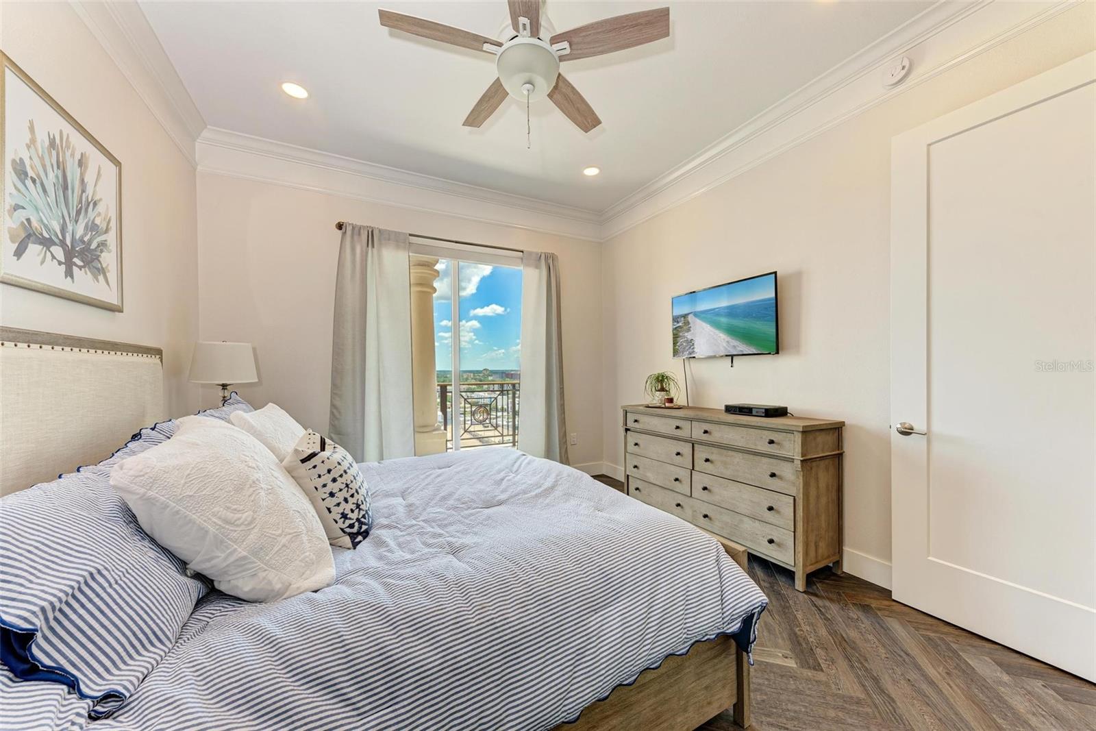 Welcome to this totally updated 2Bed/1Bath Downtown Sarasota Penthouse unit, offering all the amenities of a luxury hotel, and the lavish style of a new building, at a third of the cost. Beautiful kitchen with quartz countertops, open floor plan into the living room and dining area. An opulent bath includes a deluxe shower, and surround-mirrors, located steps from the large primary bedroom. The primary bedroom has a walk-in closet and glass sliders for easy access to the covered balcony. Laundry is in unit with additional storage space. Enjoy the outdoors from three access points to your 44-foot covered balcony that spans the entire length of the unit. This is a highly-amenitized building, and it includes 24/7 manned reception/security desk, all access points are key fobbed, on-site building manager, state of the art fitness center, dramatic club room, catering kitchen, multimedia room, sitting room, massage room, aerobics/yoga room, conference room, business center, and two guest suites. The outdoor grounds showcase a 70-foot luxury pool, jetted spa, barbeque grill and tables, and a meditation garden with reflection pond, all within Sarasota's Rosemary District. Many restaurants and grocery shopping are a close distance away, and the new Bayfront Park is a quick five-minute walk away.