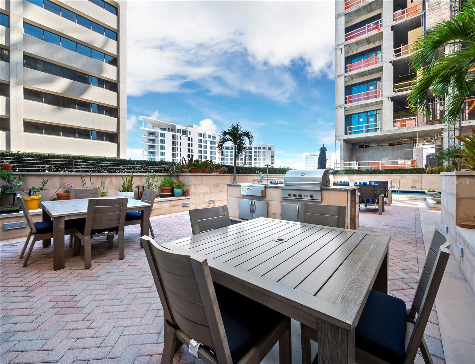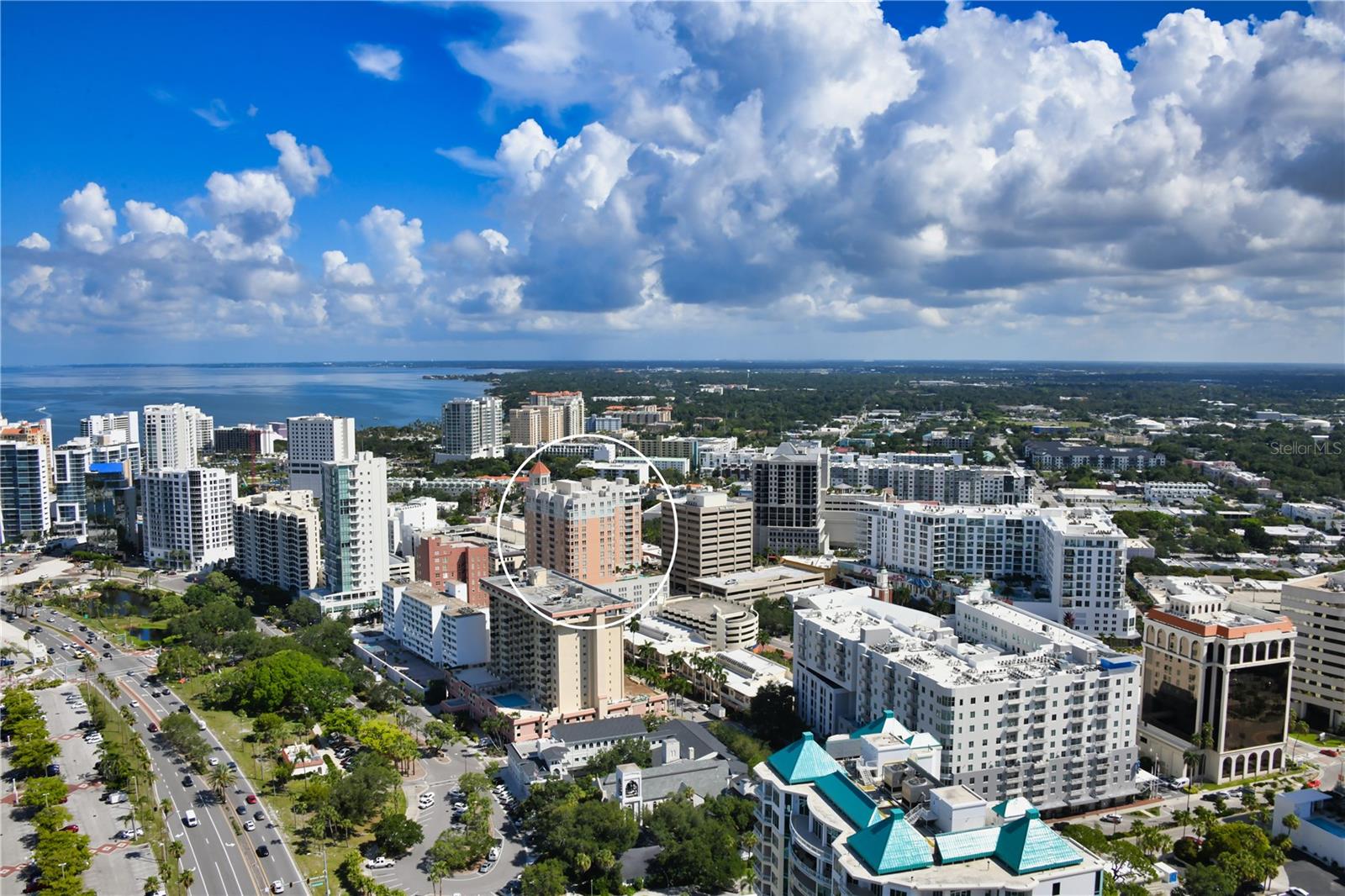Welcome to the epitome of downtown Sarasota living—where sophistication meets convenience in this bright and airy residence perfectly positioned in the heart of the city. With restaurants, coffee shops, galleries, and the marina just steps away, this home offers an ideal walkable lifestyle. Located on the sought-after bayfront-facing side of the building, the residence overlooks the vibrant boutiques and cafés of Palm Avenue while inviting in abundant natural light through expansive windows and sliding glass doors. Step onto your private balcony each morning to enjoy coffee as the city awakens or unwind in the evening while taking in the lively downtown atmosphere. Inside, soaring ceilings and an open floor plan create a spacious, airy feel. The living area features elegant tile floors and a warm, modern palette, flowing seamlessly into the European-style kitchen. Designed for both form and function, the kitchen offers sleek cabinetry, generous counter space, stainless steel appliances, and a serving bar that connects to the living space for easy entertaining. The oversized bedroom is a tranquil retreat with a large walk-in closet and spa-like en suite bath featuring a soaking tub, frameless glass shower, and dual vanities. A well-appointed powder room, ample storage throughout, and the building-wide water softener filtration system add to everyday comfort. This pet-friendly residence includes one dedicated parking space and a climate-controlled storage unit. Owners enjoy exclusive access to an impressive suite of amenities: 24-hour concierge service and fitness center with steam rooms, plus 72-foot heated lap pool, spa, media and social rooms, library, and a guest suite for visiting friends and family (available on a first-come basis). Just outside your door, Sarasota’s cultural and culinary scene awaits. Stroll to the farmers market, attend performances at the Sarasota Opera House or Van Wezel Performing Arts Hall, or spend the day exploring nearby Lido Key Beach and St. Armands Circle. Whether for a seasonal getaway or year-round home, this property offers a rare combination of modern luxury, vibrant city living, and resort-style convenience.