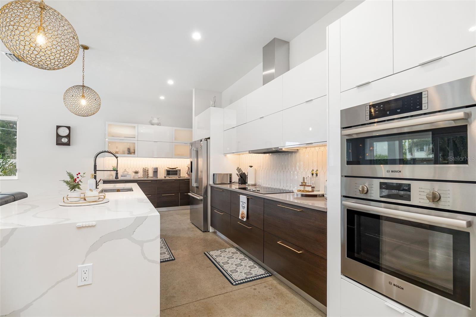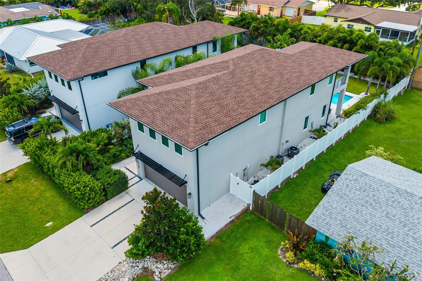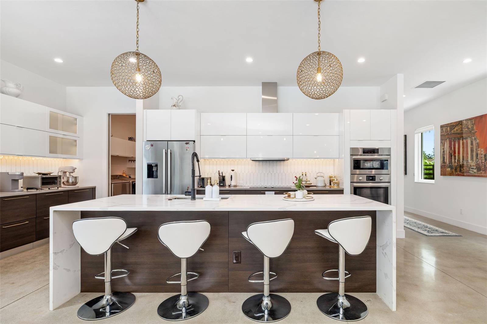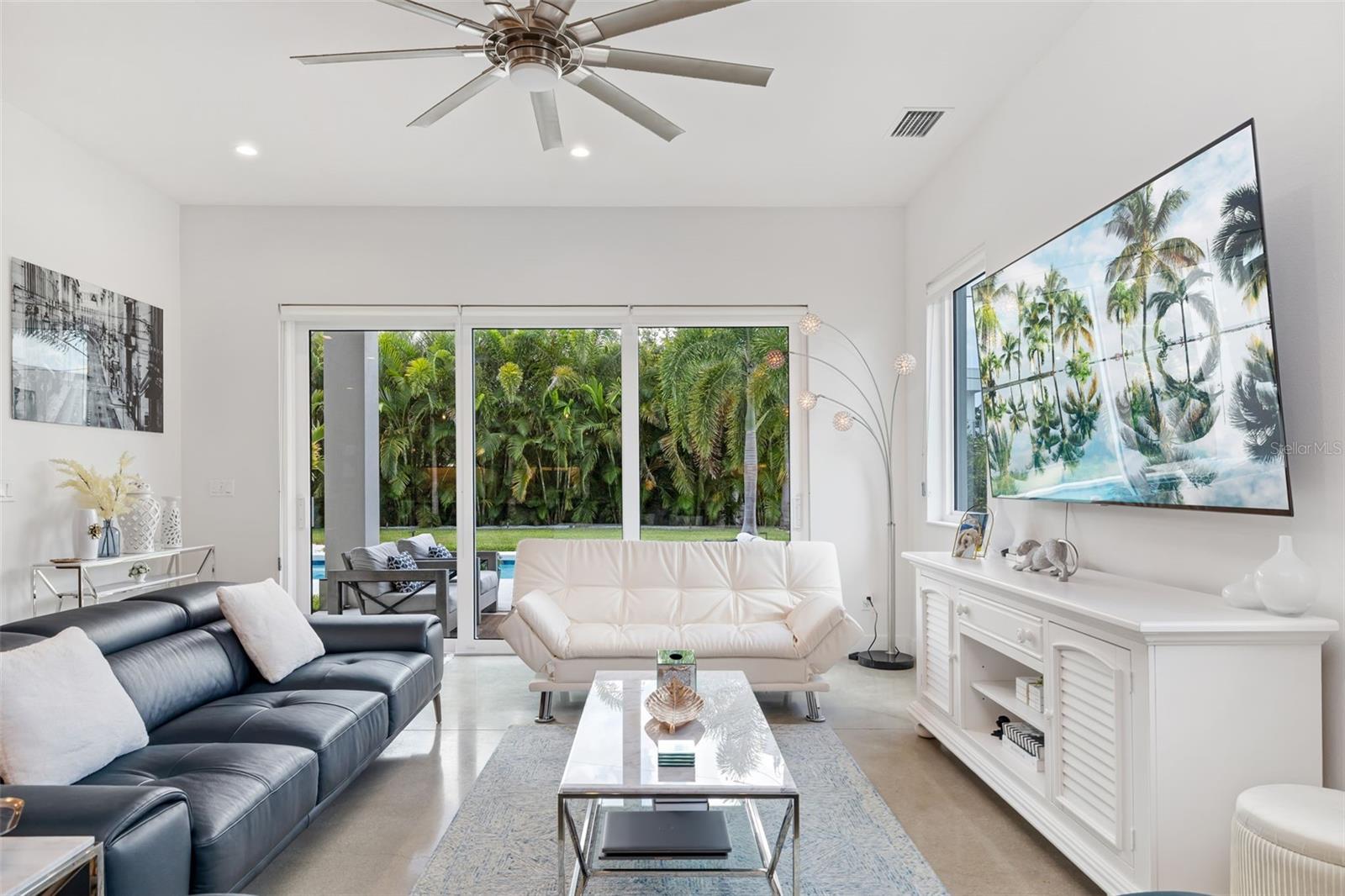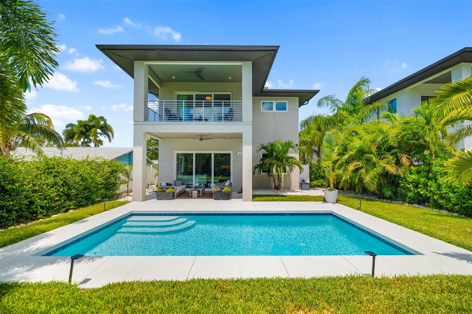 Discover modern luxury in this private and serene 4-bedroom, 2.5-bathroom pool home, built in 2021 and designed for today’s lifestyle. Spanning 2,875 sq. ft., this contemporary residence offers the perfect blend of architectural elegance and everyday comfort. From the moment you enter, soaring ceilings and polished concrete floors set the tone for a sleek yet inviting atmosphere. The open-concept floor plan flows effortlessly, with walls of glass that flood the home with natural light and create a seamless connection between the indoor living spaces and the outdoors. The gourmet kitchen is a true showpiece, featuring a striking quartz waterfall island, high-end cabinetry, and a complete Bosch appliance suite. Whether preparing a casual meal or hosting friends, this space is designed to impress. The adjacent dining and living areas are open and airy, designed for both intimate evenings and lively gatherings. Upstairs, a versatile loft provides flexible space for a home office, media room, or lounge. The primary suite is a retreat of its own, with dual walk-in closets, a private terrace overlooking the pool, and spa-like finishes for the ultimate escape. Three additional bedrooms offer comfort and space for family or guests, each thoughtfully designed with style and functionality in mind. Every detail has been considered, from premium finishes and custom touches to hurricane-impact windows and advanced storm protection for peace of mind. Step outside to an incredible outdoor oasis featuring a cageless pool, expansive sundeck, and lush tropical landscaping—perfect for relaxing, entertaining, or enjoying Sarasota’s year-round sunshine. Offered furnished, this residence is move-in ready and designed to complement Sarasota’s vibrant coastal lifestyle. This is more than a home—it’s a modern sanctuary where luxury, privacy, and Sarasota’s best amenities come together. Ideally located just minutes from Sarasota’s #1-rated beaches, world-class restaurants, and premier shopping. Call today for your private showing. Furniture is optional.