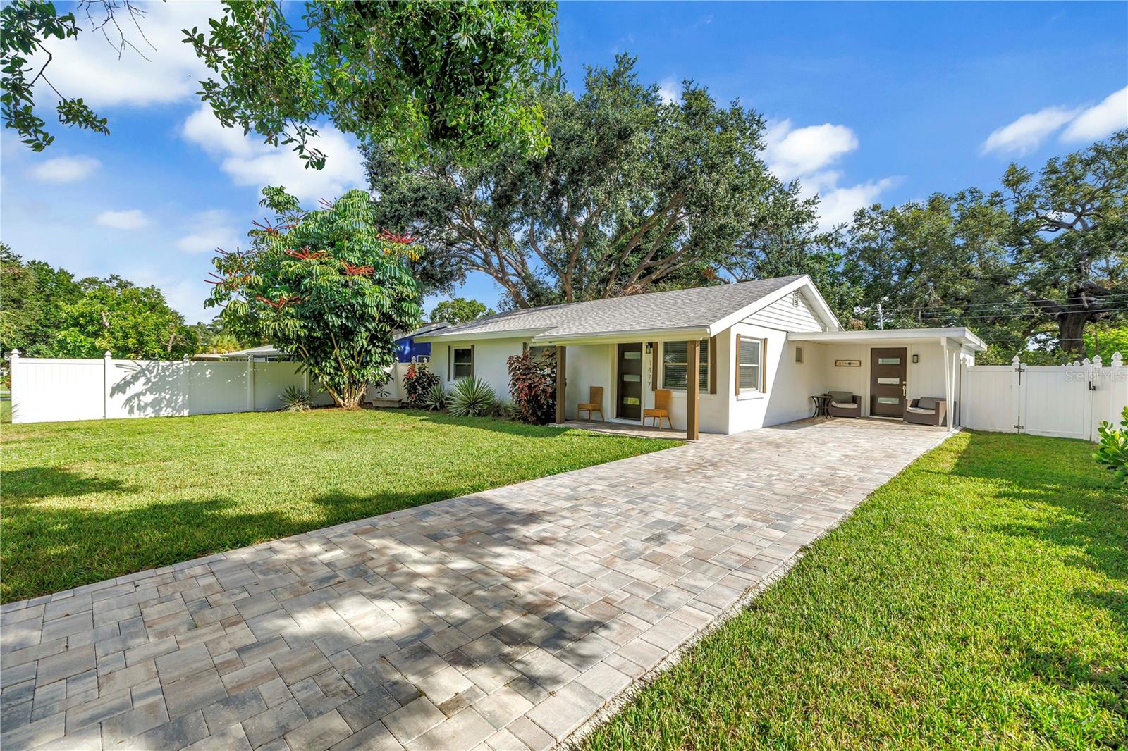 Welcome to this beautifully updated 3-bedroom, 1-bathroom residence in the highly desirable Arlington Park neighborhood. Offering no HOA and a spacious 1,100 sq. ft. paver driveway, there’s plenty of room for additional vehicles, recreational toys, or even a boat. Step inside and you’ll find 1,297 sq. ft. of thoughtfully designed living space featuring porcelain tile flooring throughout. The modern European-inspired kitchen is equipped with custom cabinetry, granite countertops, and new stainless steel appliances, including a refrigerator and dishwasher. The bedrooms feature sleek sliding glass closet doors and provide ample storage, while the bathroom has been completely renovated with a tiled walk-in shower, a double vanity, and contemporary lighting. A private side entrance leads into a versatile drop zone area, perfect for daily essentials or coats and bags. The laundry is tucked away behind a sliding barn door, and this space also offers the option to convert into a second bathroom if desired. The fenced backyard is designed for outdoor living and relaxation, complete with a 200 sq. ft. paver patio, fresh sod, and a new irrigation system to keep the lawn lush year-round. The spacious lot also offers plenty of room to add a pool while maintaining privacy and open green space. Recent updates include a new roof installed in 2018, a flat roof replacement in November 2023, thermal insulated windows, and storm shutters for added peace of mind. Located within Sarasota city limits, this property is eligible for use as a vacation rental, making it an excellent opportunity for both homeowners and investors. Residents of Arlington Park enjoy access to outstanding amenities, including lap and instructional pools, basketball and tennis courts, a playground, outdoor fitness gym, walking trails, and a dog park. All this, just three blocks from Sarasota Memorial Hospital and only minutes from Downtown Sarasota, Marie Selby Gardens, St. Armands Circle, Siesta Key, and Lido Key.