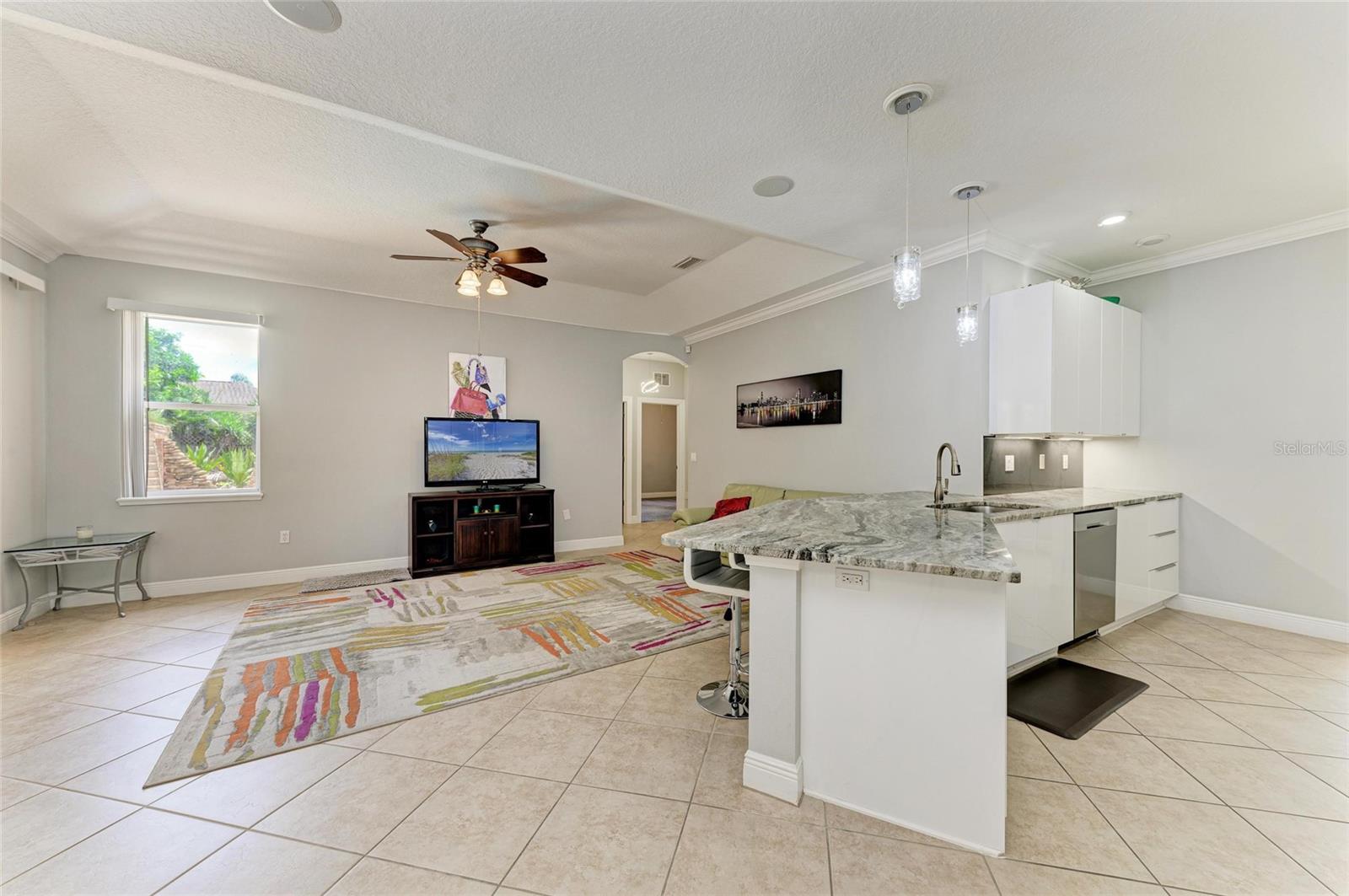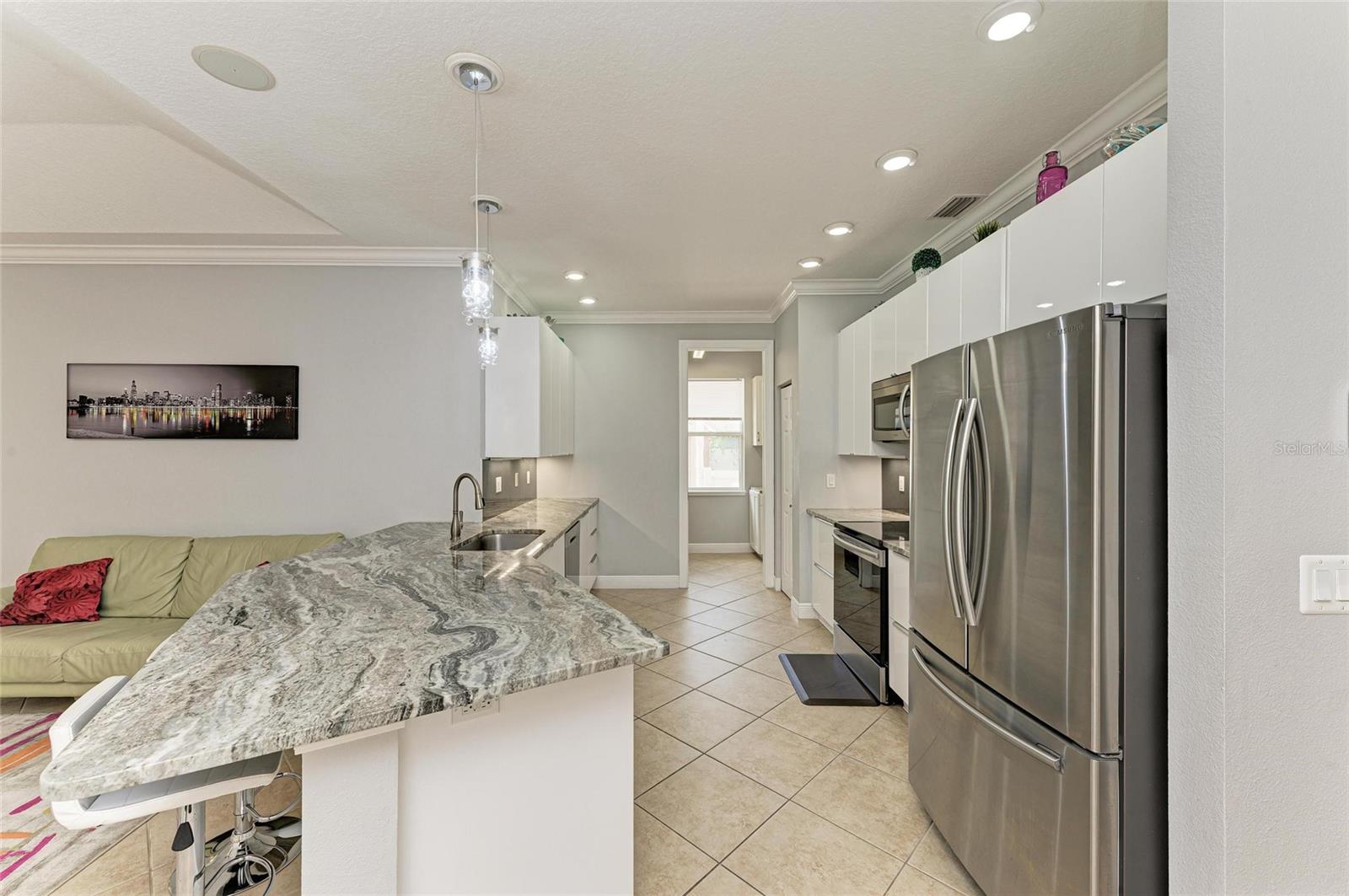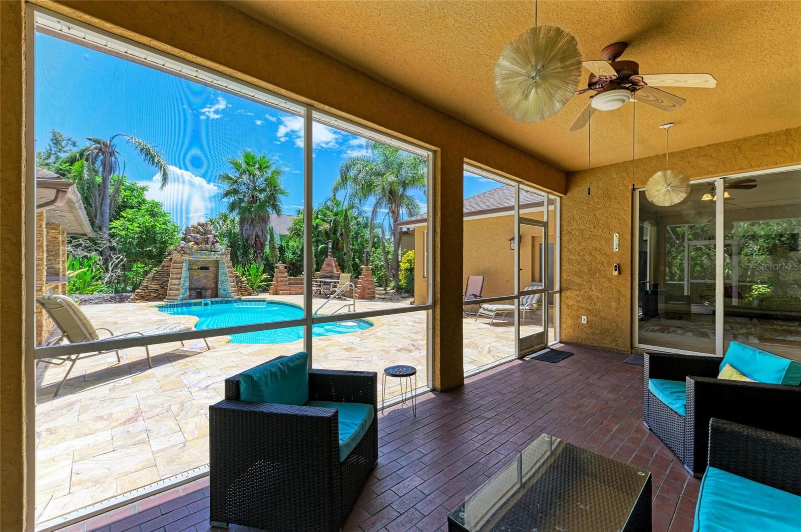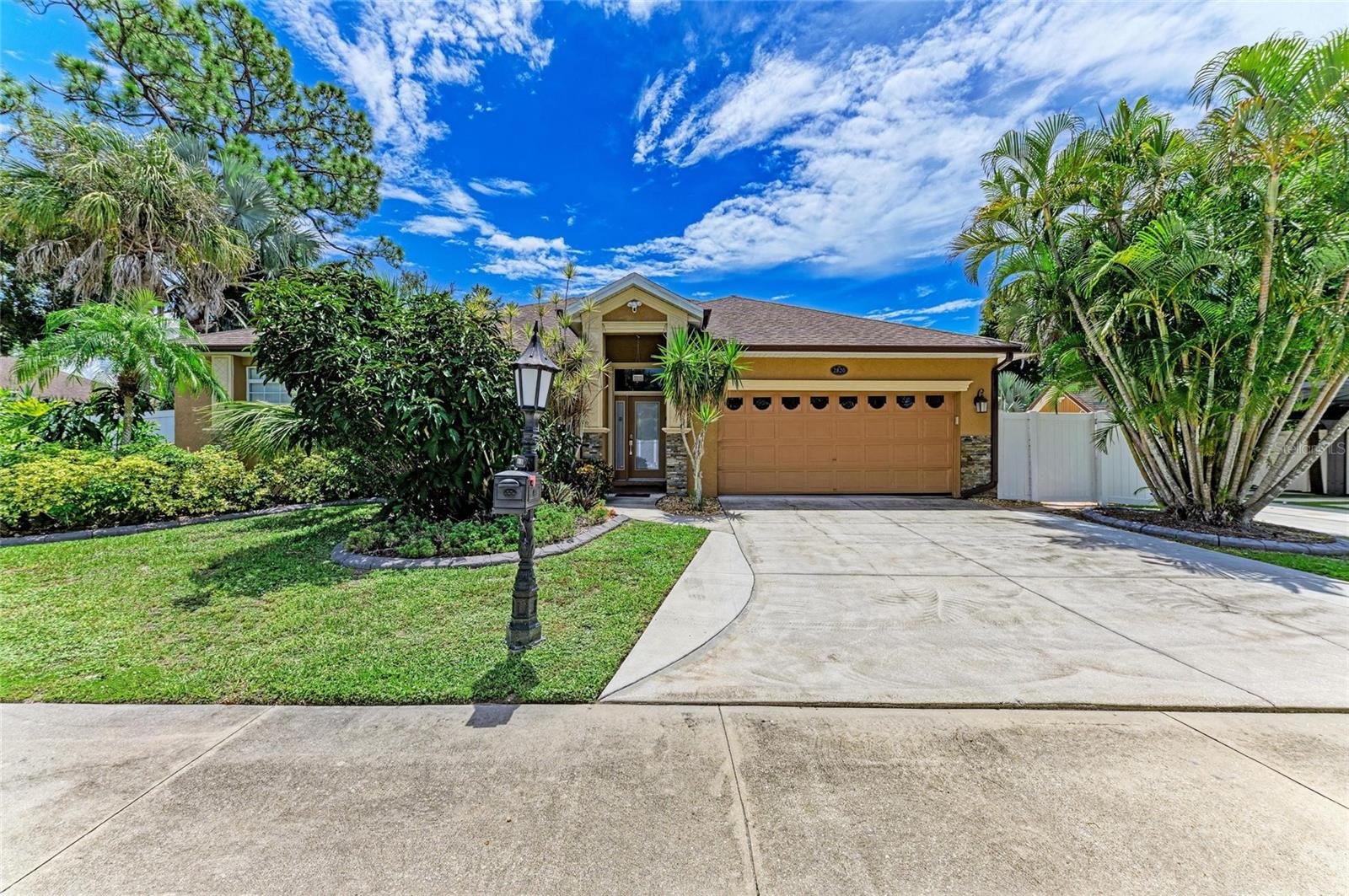 Why go on vacation when you live in this tropical retreat? This spacious home is an entertainer’s paradise with luxurious living both inside and out. As you enter, you'll immediately notice the modern finishes, from the sleek kitchen cabinets to the stylish light fixtures. The kitchen is a chef’s dream with stone countertops and stainless steel appliances. Just off the kitchen, you'll find an indoor laundry room with a newer LG washer and dryer set. The home is designed for comfort and efficiency, with a new HVAC and water heater both installed in 2022. The main living area features tall tray ceilings, and the abundance of natural light streaming through the sliding doors creates a bright, open atmosphere. The primary bedroom is a true retreat, offering walk-in closets and a beautifully renovated ensuite bathroom with a soaking tub, a separate standing shower, and dual vanities—the perfect place to unwind. For added privacy, the opposite side of the home offers three guest bedrooms with newer carpet, and a guest bathroom that also serves as a convenient pool bath, with direct access to the pool deck. Outdoors, this home truly shines with a saltwater heated pool featuring a waterfall, an outdoor kitchen, and a cozy fireplace for those cooler evenings. The travertine deck and outdoor shower complete this private oasis, while the dual carports for jet skis (or other recreational vehicles) and a separate RV garage offer ample space for all your toys. The home even has a separate well for irrigation, ensuring your lush tropical landscaping thrives year-round. Whether you're relaxing in the serene pool area, cooking up a meal in the outdoor kitchen, or enjoying the modern comforts of the interior, this home has everything you need and more! All of this in a prime location on a private road near shopping and award-winning beaches. Home warranty for the first year for added peace of mind.