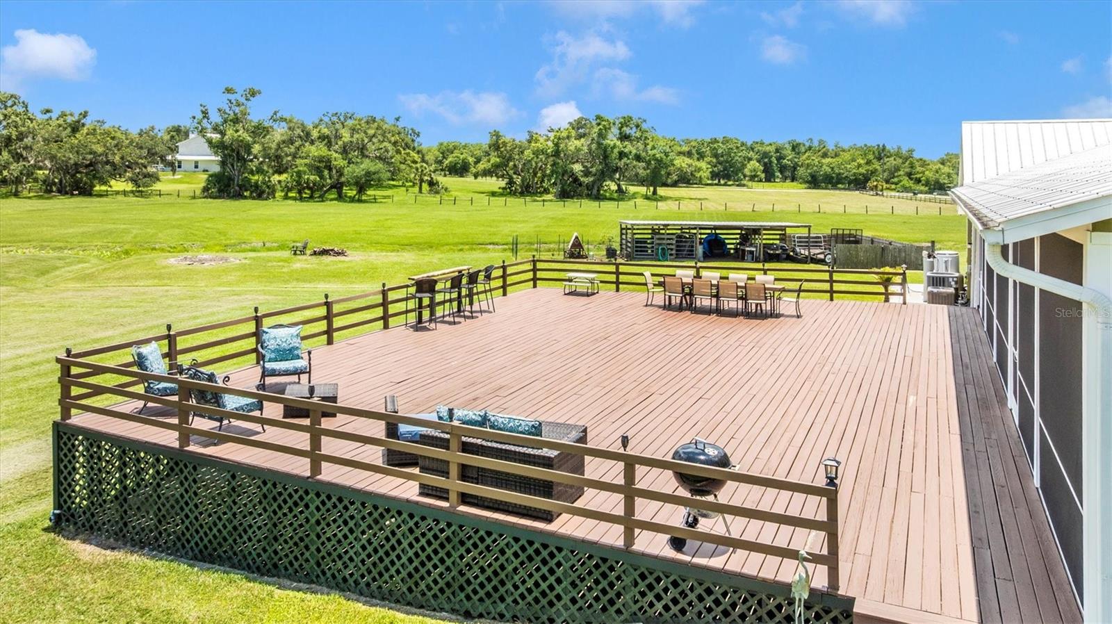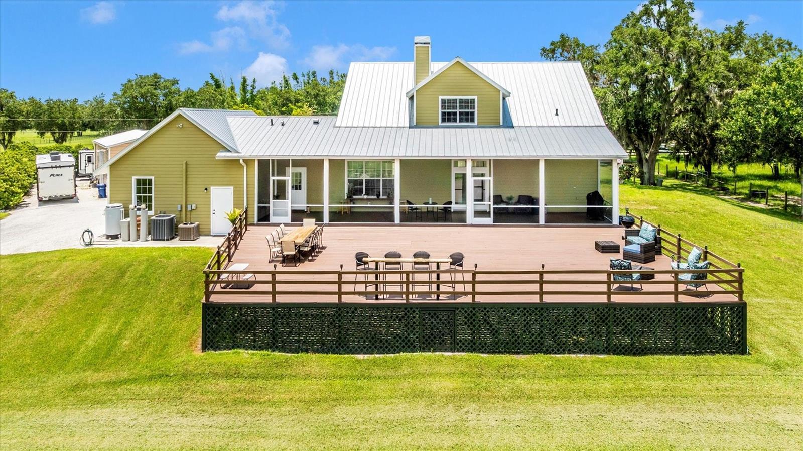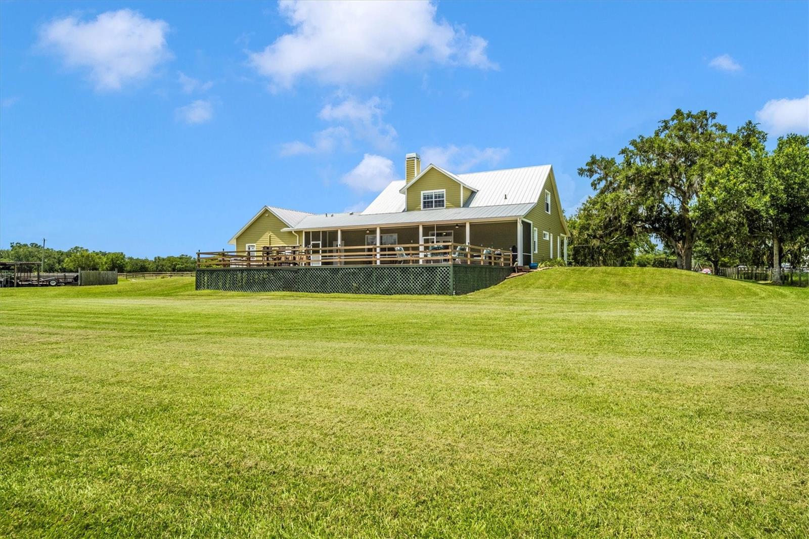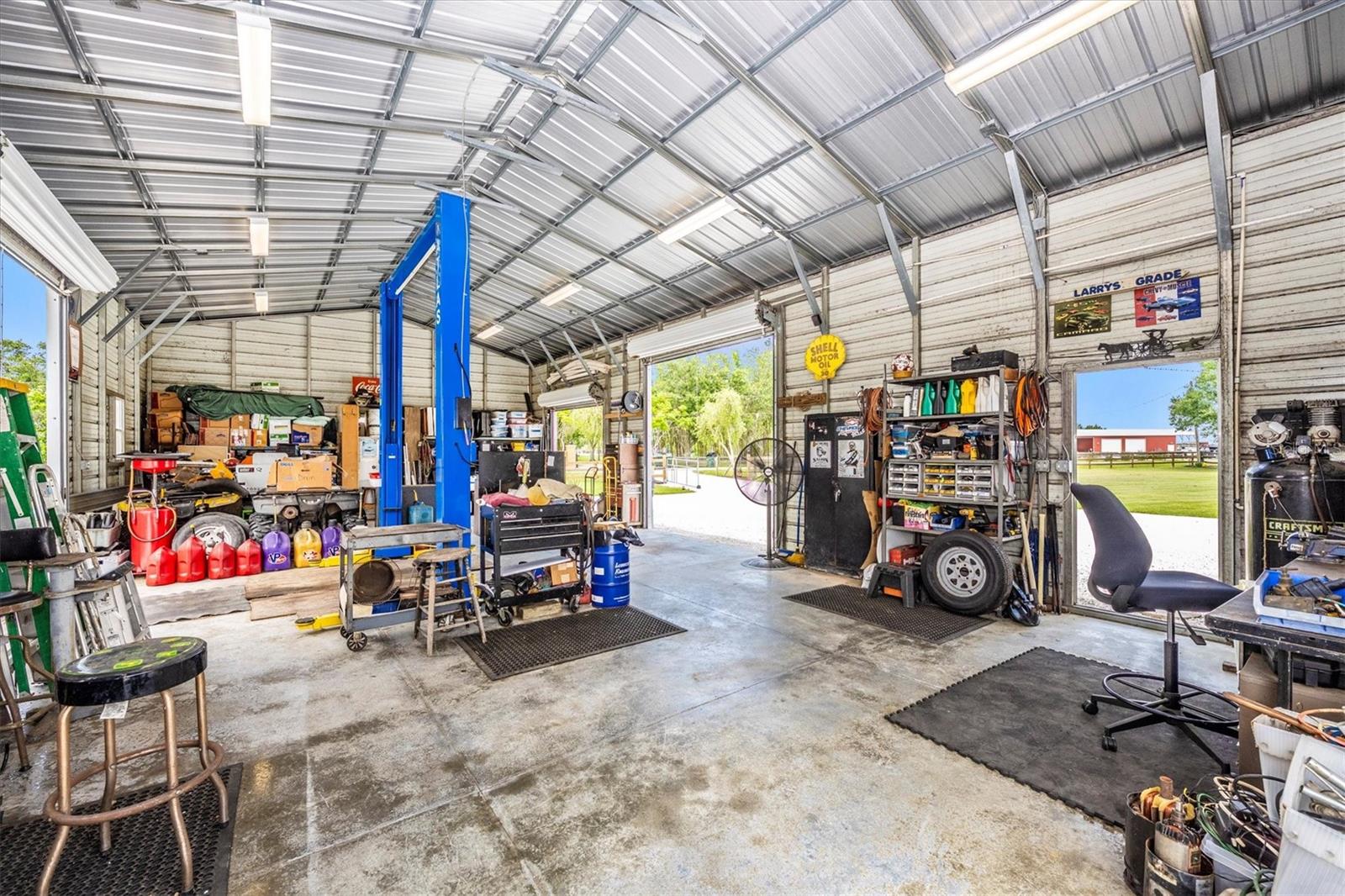Welcome to your own private country retreat, nestled on nearly five acres of fenced land. This unique 3-bedroom, 2.5 bathroom home with soaring ceilings and lots of natural light blends rustic charm with modern comfort and is accessed by a pristine shell driveway. Meticulously maintained with new metal roof in 2020. The main level features a primary bedroom with an en-suite bathroom and walk-in closet. The separate laundry room is on the main level. Upstairs, two additional bedrooms share a large landing area—a versatile bonus space perfect for a home office, with a large window overlooking the view of the land. The outdoor space is just as impressive. A large, east-facing deck is perfectly positioned for tranquil mornings and enjoying stunning sunrise views over the acreage, which is framed by majestic oak trees. It’s common to see deer and Sand Hill Cranes and Whistling ducks on the property. Did you make us coffee yet? Swing on the front porch and listen to the song birds. Beyond the attached 3-car garage, a separate oversized detached garage and workshop provides a haven for hobbyists or car enthusiasts. This space is equipped with three roll-up doors and a vehicle lift. For equestrian or animal lovers, there’s a three-sided shed with two pens and two open stalls Landscaped shell parking provides plenty of room for RV, boat and guests. This estate is nestled in a community with horse trails, offering both privacy and outdoor adventure. Whether you’re seeking space for your passions, room for animals, or simply a serene lifestyle close to Sarasota, shopping, entertainment, dining, beaches, boat ramp, 1901 Joshua Drive delivers it all—land, lifestyle, and lasting value.