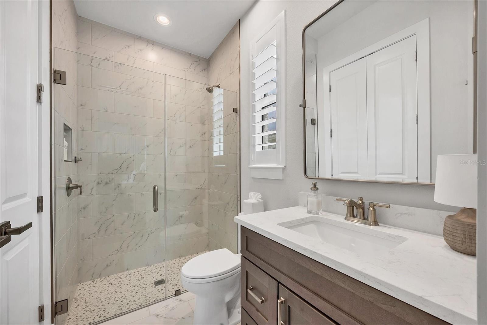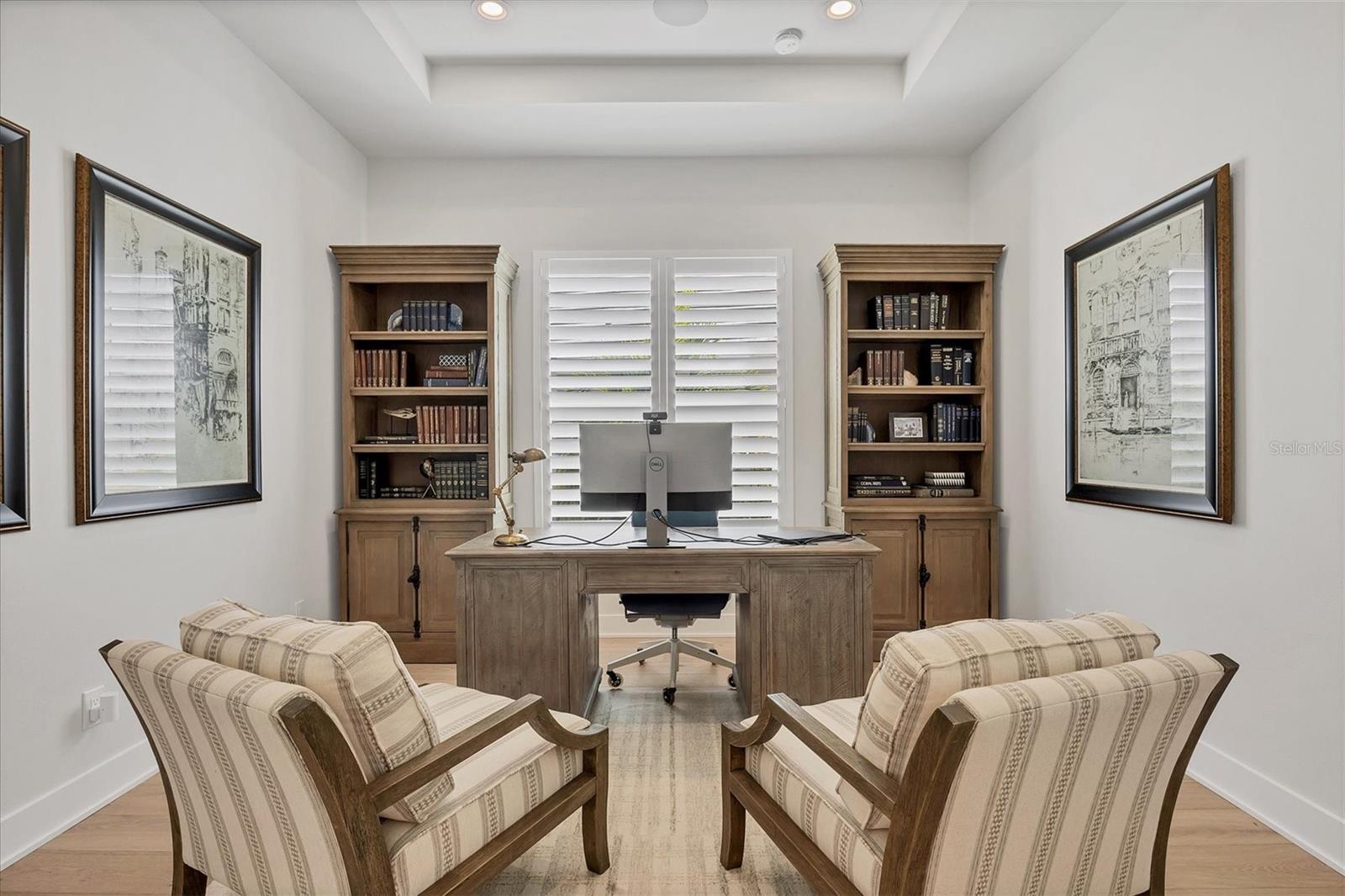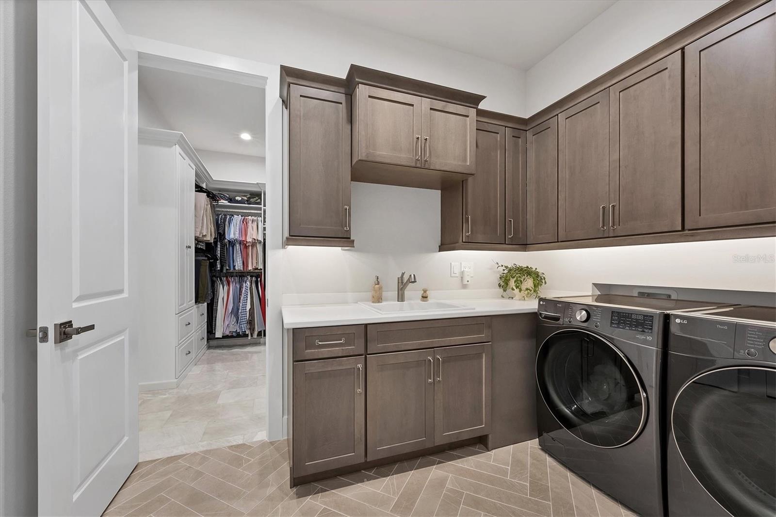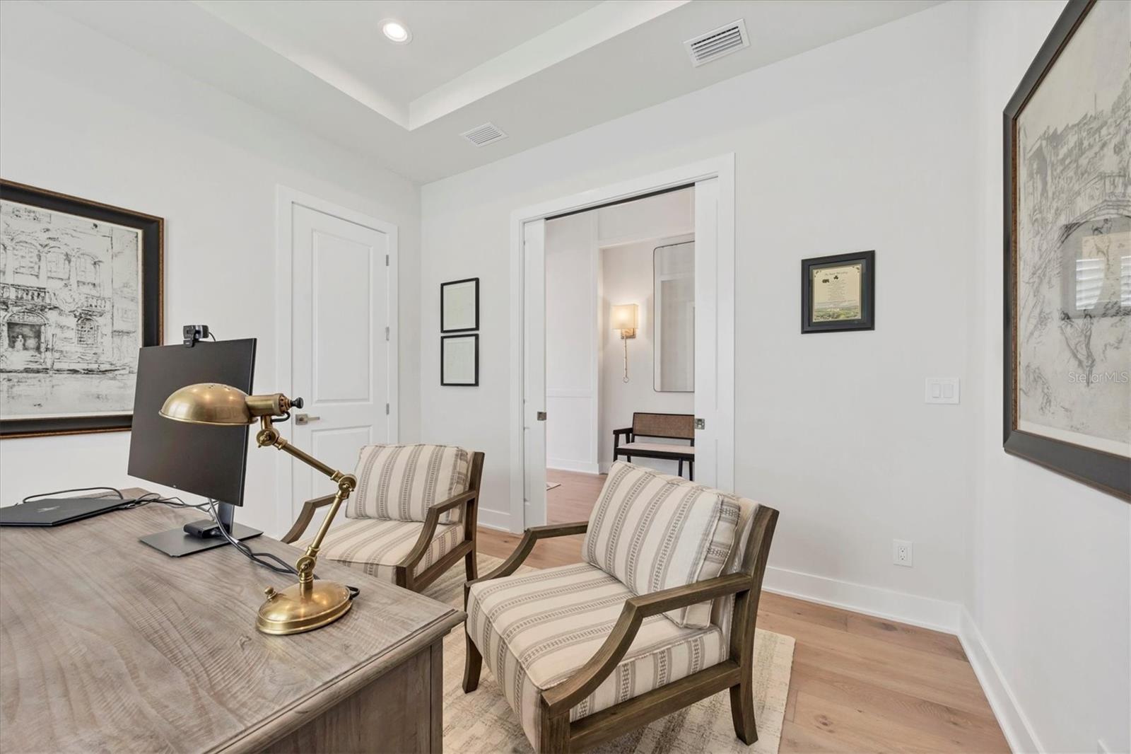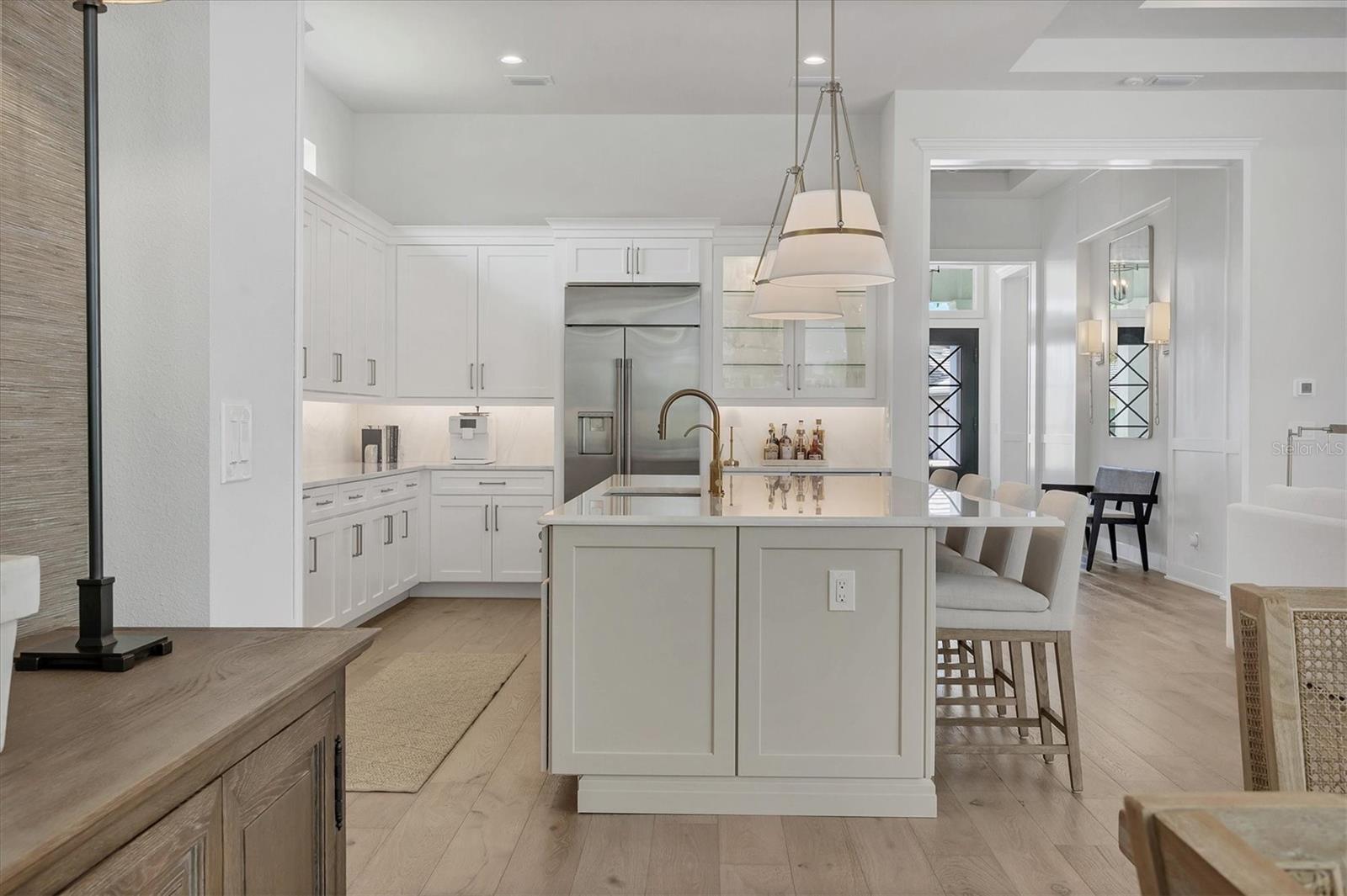 Welcome to 8368 Sea Glass Court in Wild Blue, a custom-built residence by Lee Wetherington, renowned for exceptional craftsmanship and attention to detail. This upscale home is set on a private preserve lot, offering a tranquil backdrop reminiscent of “The Serengeti” with captivating views of native wildlife and birds. Step through iron doors into a fully paneled foyer to experience the finest in design and detail. This custom home features engineered hardwood flooring throughout all living and bedroom areas and is secured with impact windows and doors. The great room impresses with a sleek electric fireplace, built-in bookcases, and a dramatic wall of corner disappearing glass doors that seamlessly frame breathtaking preserve views. Outdoors, your private oasis awaits. Enjoy a panoramic screen enclosure, expansive travertine paver lanai, a large covered sitting area with a second fireplace, and a separate alfresco dining space complete with a fully equipped outdoor kitchen. The sparkling saltwater pool with water feature and spa completes this resort-style retreat. The chef’s kitchen is a dream, showcasing abundant custom soft-close wood cabinetry, Cambria countertops, a large working island with breakfast bar seating and pendant lighting, upgraded appliances, and an oversized walk-in pantry with custom wood shelving. The dining room flows easily from the kitchen and extends outdoors with sliding glass doors to the lanai—ideal for entertaining. A private den near the entry provides the perfect work-from-home space. The primary suite is a true sanctuary with French doors to the lanai and a spa-inspired primary bath featuring split vanities, a freestanding soaking tub, and an oversized walk-in marble shower, with marble floors that extend into the custom-fitted walk-in closet. For added convenience, the closet connects directly to the spacious laundry room. Guests will enjoy two ensuite bedrooms, each offering privacy and comfort. Additional highlights include a whole-house generator for peace of mind, full house water softener and reverse osmosis water filtration system, a three-car garage with epoxy flooring and built in tesla car charger, tray ceilings, extensive wood trim details, library paneling, crown moldings, upgraded light fixtures and fans, plantation shutters, and custom drapery throughout. Set within the desirable enclave of Wild Blue at Waterside, this residence is complemented by an array of world-class amenities. The upcoming 25,000-square-foot resort-style clubhouse will feature private dining, a theater, fitness studio, golf simulator, workout classrooms, and indoor and outdoor dining options. Outdoors, enjoy a spectacular pool complex with a resort-style pool, lap pool, yoga lawn and premier putting course, curated by a dedicated lifestyle director who brings together neighbors with engaging social events. Already open, the Midway Sports Complex enhances the community experience with pickleball and tennis courts, basketball, a dog park, sports activity areas, a kayak launch and scenic lakefront viewing. Schedule your private showing today to view this beautiful home!