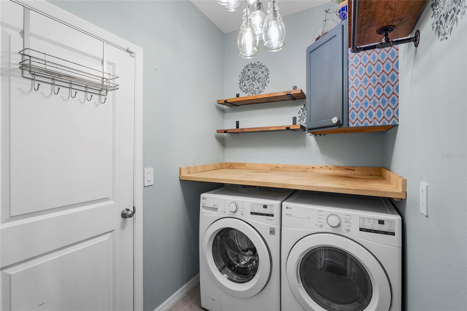 Built in 2021, this beautifully upgraded 4-bedroom, 2.5-bath home offers 2,045 sq. ft. of modern living in a gated community with amazing amenities. Professionally installed luxury wood-look vinyl plank flooring flows throughout, complemented by tile in baths and the laundry room, and the interior has been professionally painted with Sherwin-Williams Emerald line paint. The home features updated lighting, ceiling fans, cabinet hardware, wood woven window shades, enhanced pantry and closet storage, and a thoughtfully upgraded laundry room with butcher block counters and added functionality. The garage includes overhead storage, shelving, and a laundry sink. Exterior highlights include tiled front porch and lanai, landscaped yard, gutters, privacy fencing, aluminum backyard fencing with a puppy barrier, expanded driveway, glass front door, and a security/fire alarm system. Community amenities include a pool, heated spa, basketball court, and dog park. Conveniently located near top-rated schools, this move-in-ready home offers the ideal Florida lifestyle. Call today to schedule your showing!