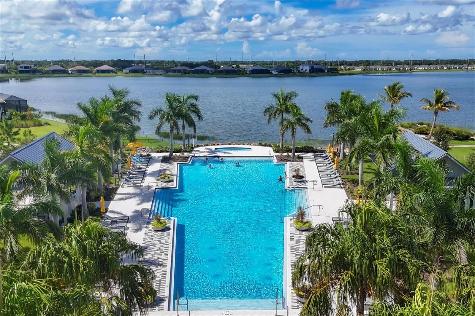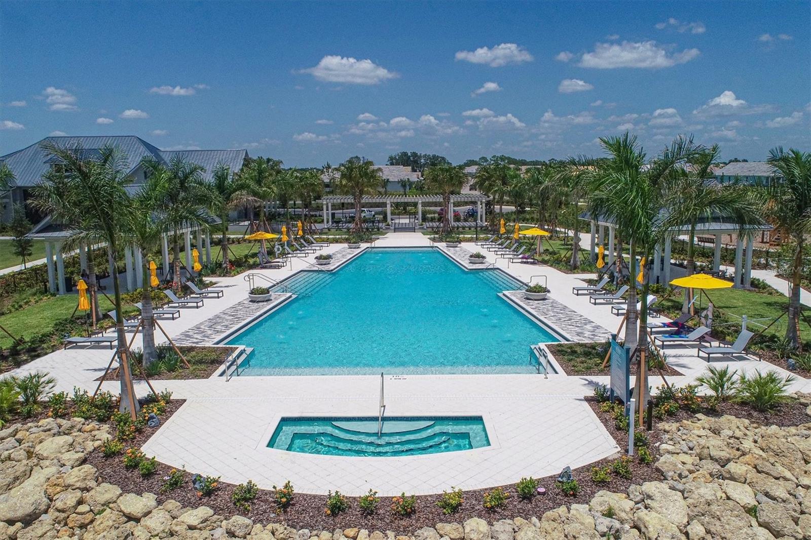 Welcome to this stunning Homes by Towne Schooner model in the Lakehouse Cove neighborhood, just minutes from Lakewood Ranch's Waterside Place. This beautifully designed three-bedroom, two-bath home offers a luxurious blend of comfort and style, ideal for relaxation and entertaining. At the heart of the home is the spacious great room featuring a tray ceiling, stylish lighting and an electric fireplace, creating a warm and inviting atmosphere. Sliding glass doors open to the sunny paver lanai, heated saltwater pool and spa, ideal for enjoying Florida’s year-round sunshine. The open-concept floor plan flows seamlessly into the kitchen, which is a chef’s dream with a large island that seats five, white cabinetry, stainless steel appliances, quartz countertops and pendant lighting. A dry bar with a beverage cooler and pass-through window to the lanai allows you to serve guests outside. The adjacent dining room is conveniently off the kitchen. Retreat to the primary suite, featuring a tray ceiling, abundant natural light and plantation shutters. The en-suite bath offers dual sinks, a walk-in shower and an expansive walk-in closet with built-in organizers. Two guest bedrooms, at front of the home, share a guest bath, providing ultimate privacy. The third bedroom is ideal for use as an office or guest room. Your outdoor space is prepped for an outdoor kitchen, making it easy to create your own alfresco dining and entertaining space. This maintenance-free home features hurricane-impact windows and doors, neutral gray paint, tall ceilings and white molding throughout, offering a fresh, modern look. The beautifully landscaped lawn completes the package, providing an attractive curb appeal. With its built-in sound system, large covered outdoor entertaining space and proximity to Lakewood Ranch’s Waterside Place, this home is must-see! Lakehouse Cove at Waterside presents a lifestyle enriched with an array of amenities that redefine community living. The full-time social director orchestrates events and activities that foster a sense of community, making Lakehouse Cove a place where neighbors become friends. Just a leisurely distance away, Waterside Place awaits, offering a vibrant hub of shopping, dining and entertainment. The clubhouse provides a central gathering point for residents to connect and unwind. Dive into relaxation at the pool and spa, where the serene waters offer a refreshing escape. Stay active at the fitness center or engage in a friendly game at the pickleball courts. For pets, two dog parks provide a space for play and socialization. The children's playground ensures every member of the family has a space to enjoy. Your dream home is here, ready to welcome you with open arms. Don't miss the opportunity to make it yours!