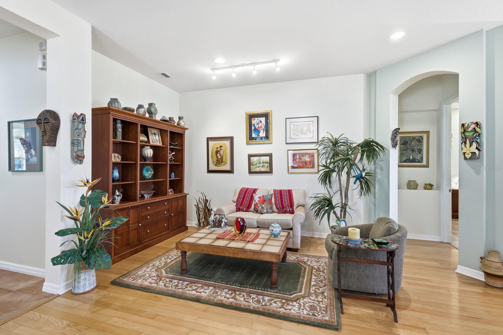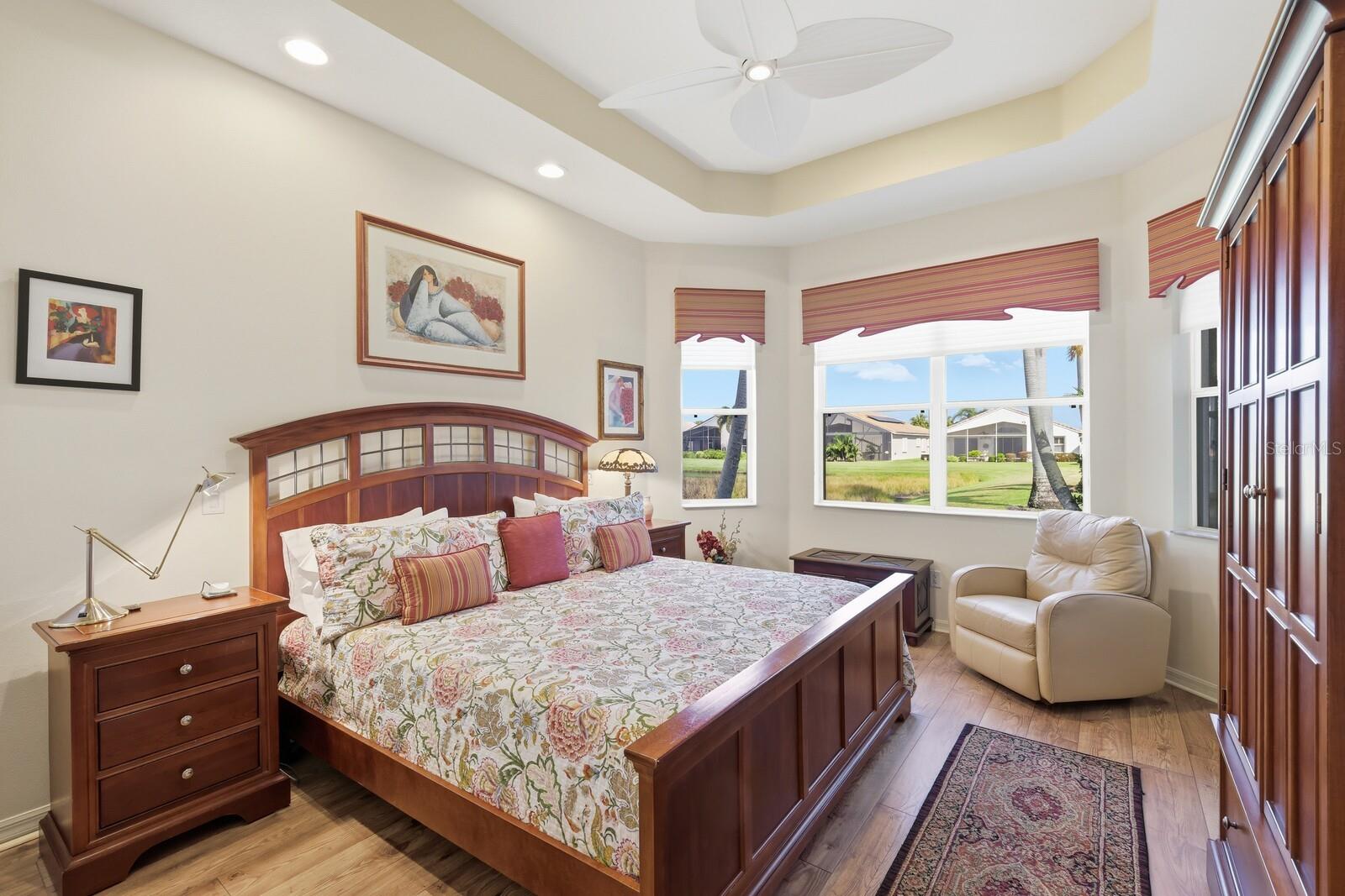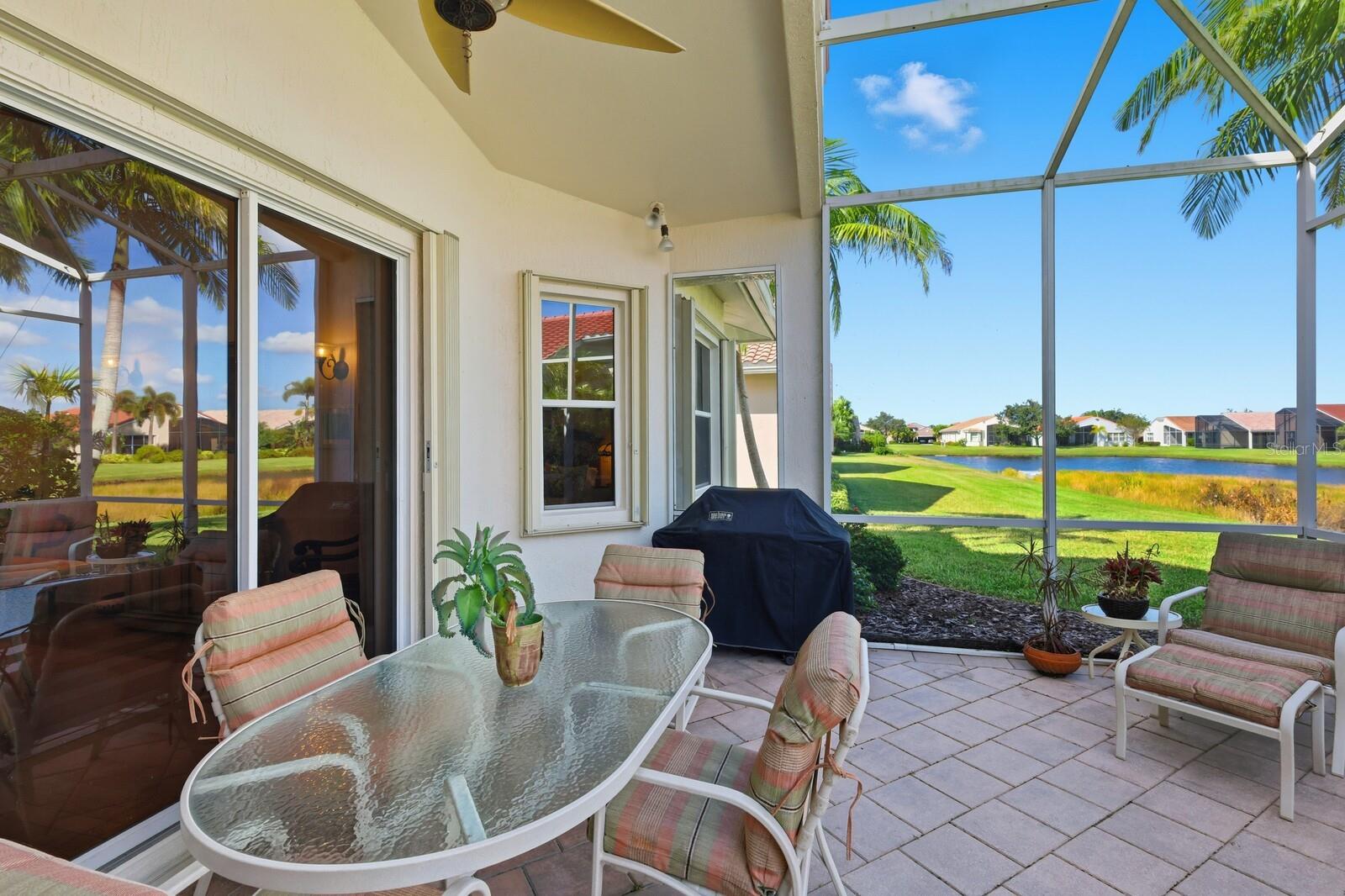 Welcome to your dream home in The Cascades at Sarasota, one of the area's most sought-after 55+ gated communities. This beautifully maintained West Indies floor plan offers over 2,100 square feet of move-in ready living space with 3 bedrooms, 2 baths, and an attached 2-car garage. From the moment you step inside, you will be greeted by soaring ceilings, gleaming inlay tile foyer, and thoughtful upgrades throughout. The heart of the home is the kitchen, where 42" cabinetry with roll-out shelving, Kashmir Gold granite countertops, custom backsplash, and GE Profile appliances make cooking and entertaining a delight. The open floor plan is designed for entertaining, comfort and privacy, with the Owner's suite and guest rooms thoughtfully separated. From the primary suite, dining room, breakfast nook, and extended screened lanai, you will enjoy tranquil partial water views, the perfect backdrop for your morning beverage or evening gatherings. The spacious primary suite offers true luxury with a custom built-in closet, dual sinks, upgraded cabinetry, and a large walk-in shower with bench. Additional highlights include a freshly painted exterior, a NEW Trane HVAC, energy-efficient wall insulation, easy-close accordion hurricane shutters, and custom window treatments, all adding peace of mind and year-round comfort. Step outside to your extended paver lanai and patio, surrounded by tropical landscaping and serene lake views, a wonderful space to relax and enjoy the Florida backdrop. Living in The Cascades at Sarasota means more than just a beautiful home, it's a vibrant lifestyle. Residents enjoy resort-style indoor and outdoor pools, a state-of-the-art fitness center, a 25,000 sq ft clubhouse with ballroom, Har-Tru tennis courts, pickleball courts, bocce, and an abundance of clubs and activities. All of this comes with the convenience of being close to downtown Sarasota, airports, shopping, dining, golf, and the world-renowned beaches of Siesta, Lido, and Longboat Key. Do not miss your chance to own this exceptional home that combines elegance, comfort and an active lifestyle, all in one perfect package.