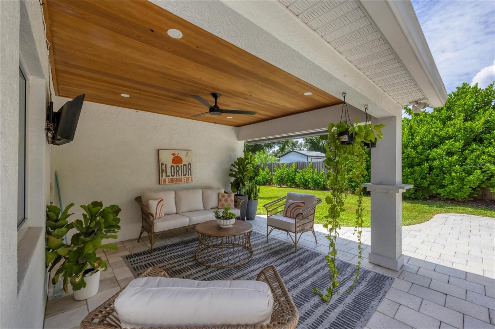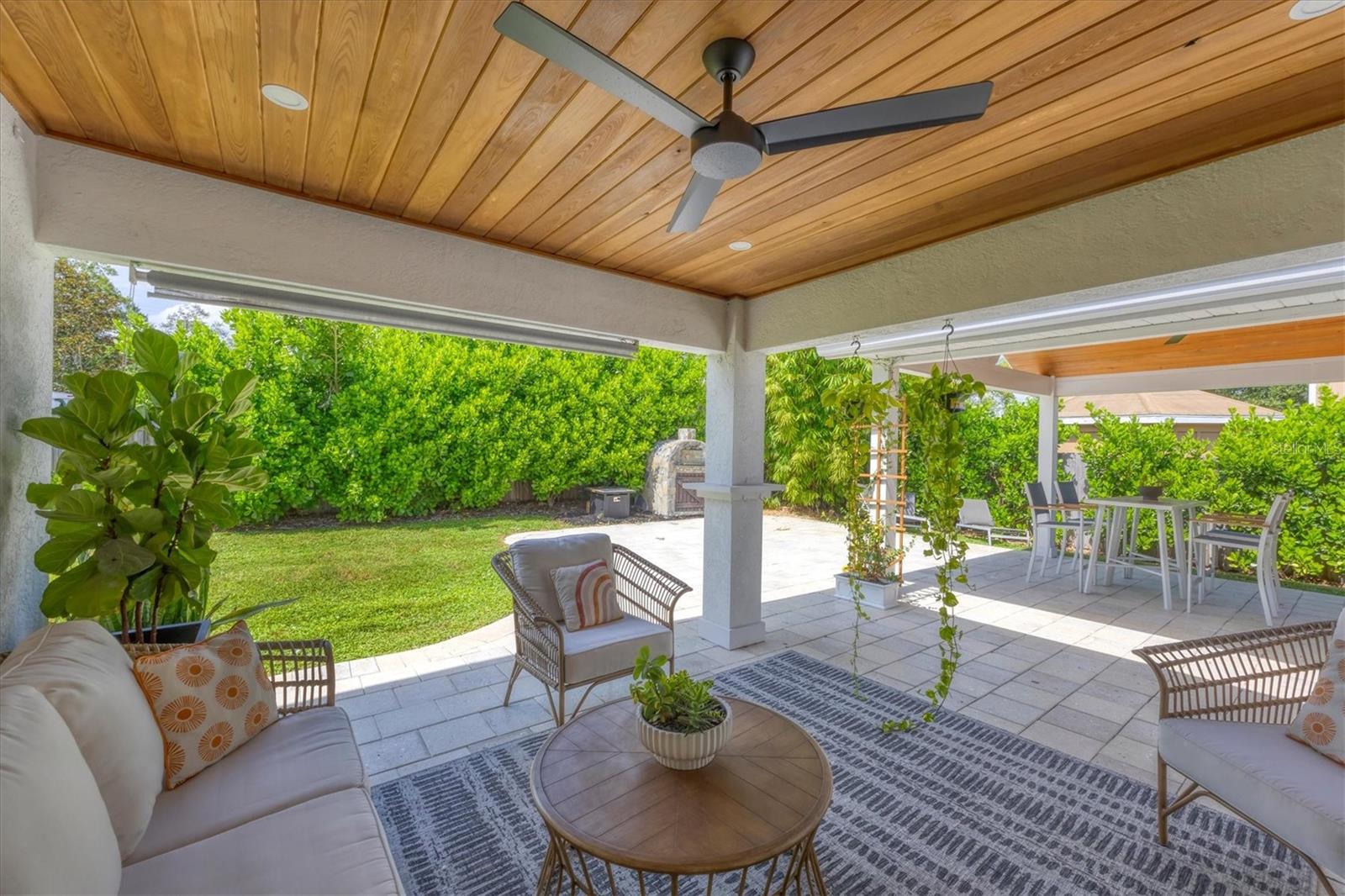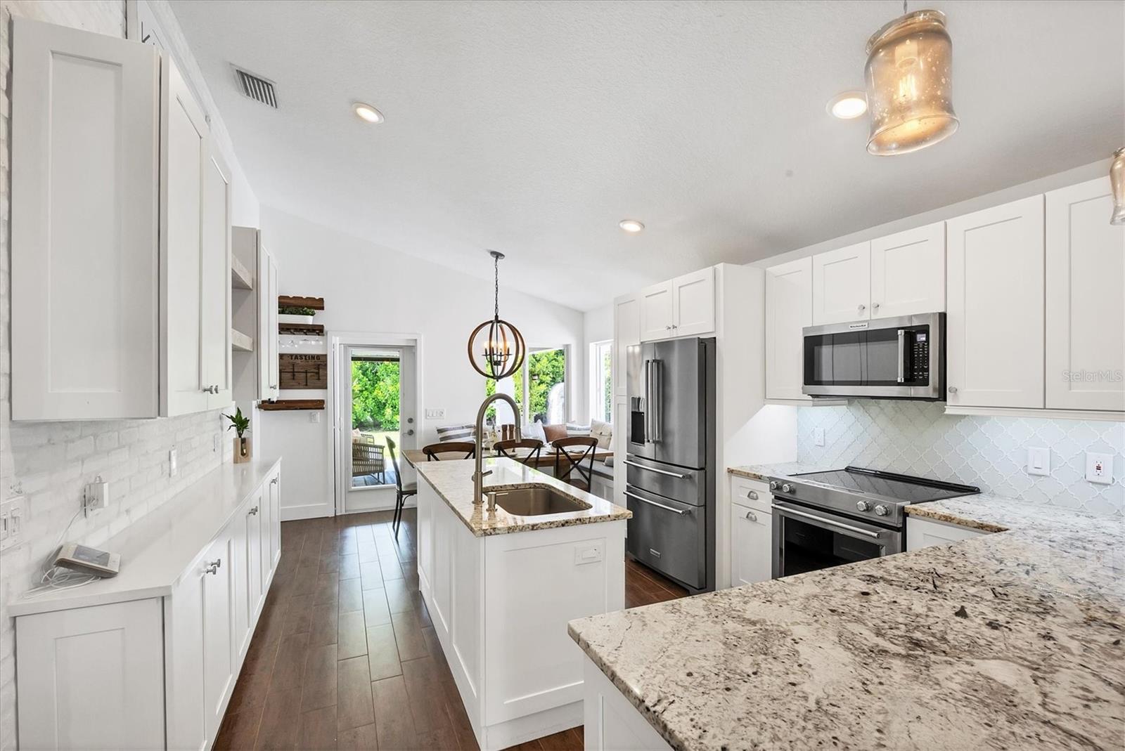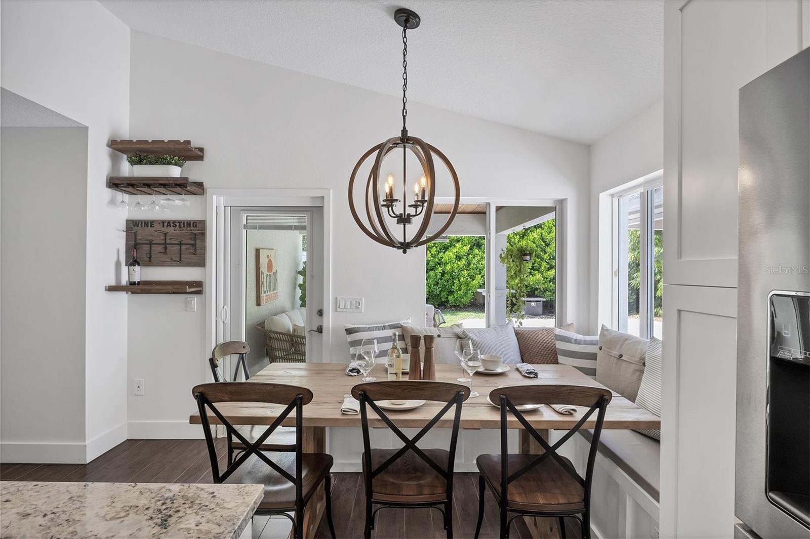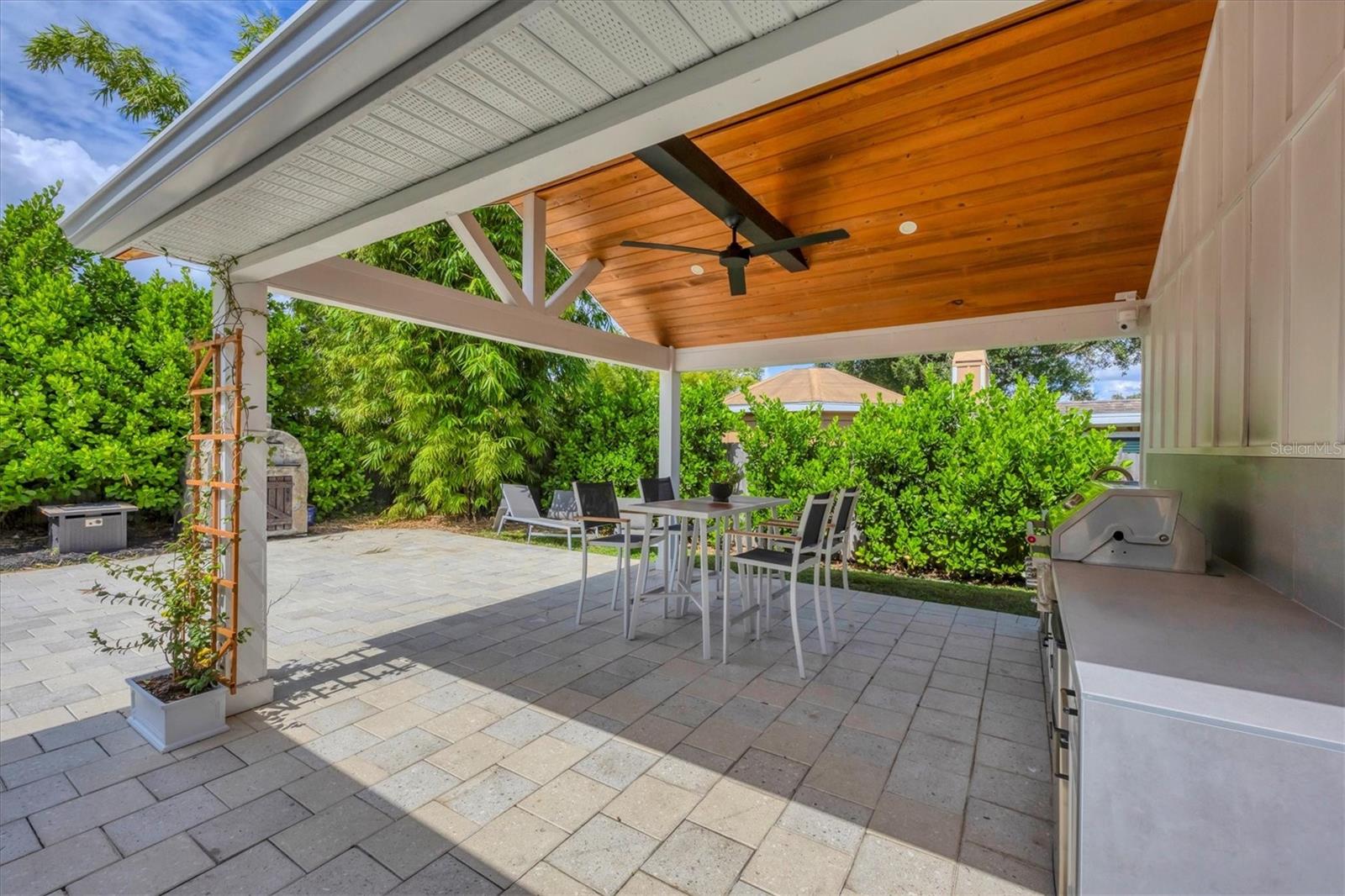 This Charming 3-Bedroom, 2-Bath Home with 2-car garage plus a detached shed/workshop combines High End Craftsmanship with Modern Farmhouse Style. Built by a local builder with meticulous attention to detail, every space in this home was thoughtfully designed for comfort, style, and function. Step inside to find custom touches throughout, including wood-inlaid ceilings on front porch and outdoor covered living areas, a sliding barn door separating the living area from the bedrooms, a built-in dining bench with storage, shiplap wall details in the Primary Suite, detailed trim in the second bedroom, and a built-in desk in the third bedroom, perfect for a home office or study space. The heart of the home is the spacious kitchen, featuring custom wood cabinetry, granite countertops, New Stainless Appliances, an island, a breakfast bar with seating, and an adjacent Dining Area with adorable and functional bench for family dinners or friendly gatherings. The Primary Suite is a retreat of its own with a stunning bathroom showcasing marble floors and marble tile shower, and custom dual vanity with marble tops. Two guest bedrooms share a stylish bath with marble top vanity and a tub/shower combination. Outdoor living is just as impressive. A covered entertainment area provides plenty of room for lounging and dining, complete with outdoor kitchen (grill and beverage cooler), while fenced backyard offers a wood-fired pizza oven-a dream for entertaining. Energy efficiency is built in: solar panels that power appliances, New Tankless hot water heater, AC, and lighting, making this home as smart as it is beautiful, with extremely low energy costs. The fenced yard also features an outdoor private shower, and a large yard providing privacy and function for pets, gardening, or family play. Located in the heart of Sarasota, this home is just minutes from top-rated schools, downtown Sarasota, I-75, University Town Center, award winning restaurants, shopping, and the world-renowned Lido Key and Siesta Key Beaches. This One-of-a-Kind property blends thoughtful design, modern efficiency, and timeless style. Don’t miss your chance to call it Yours!