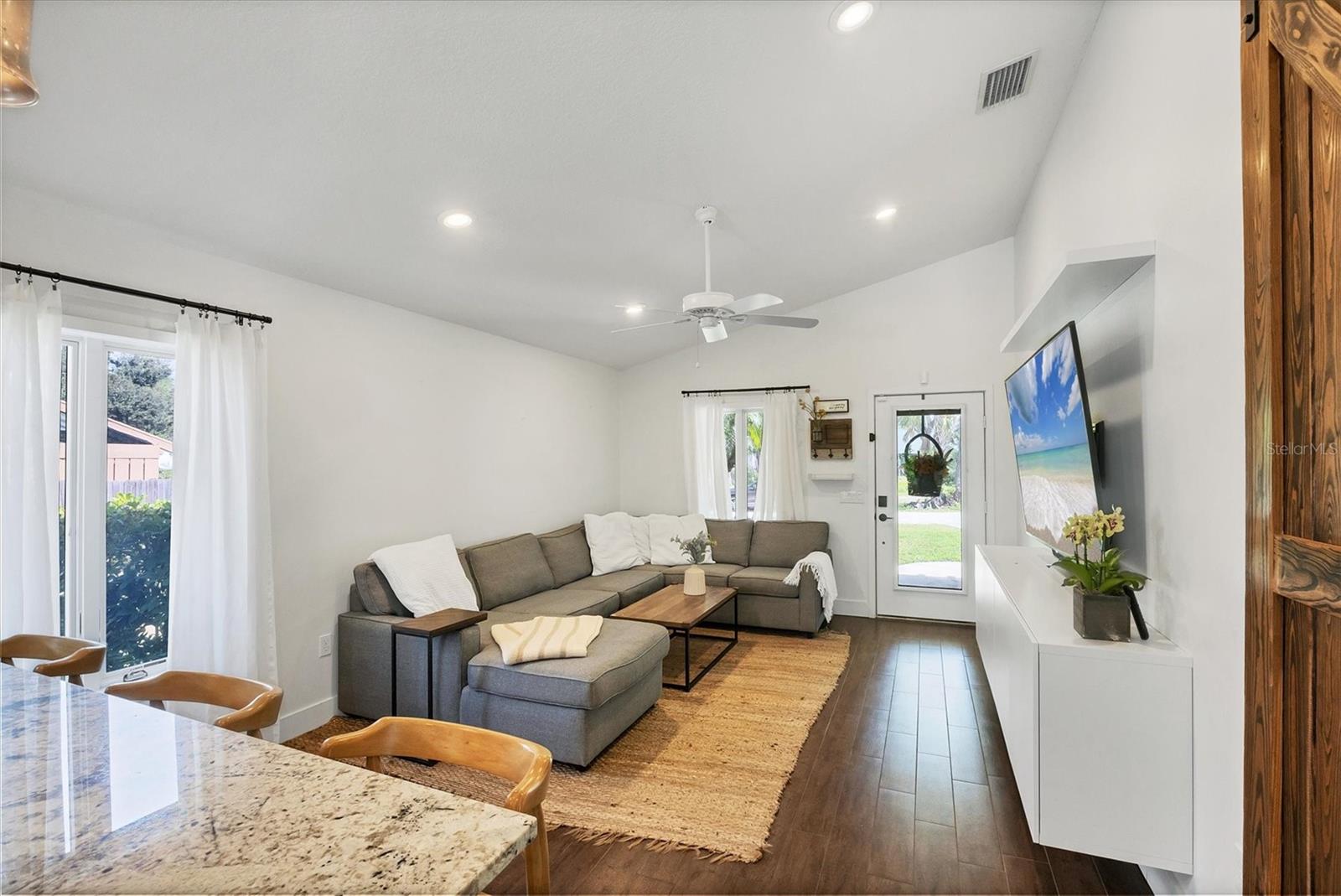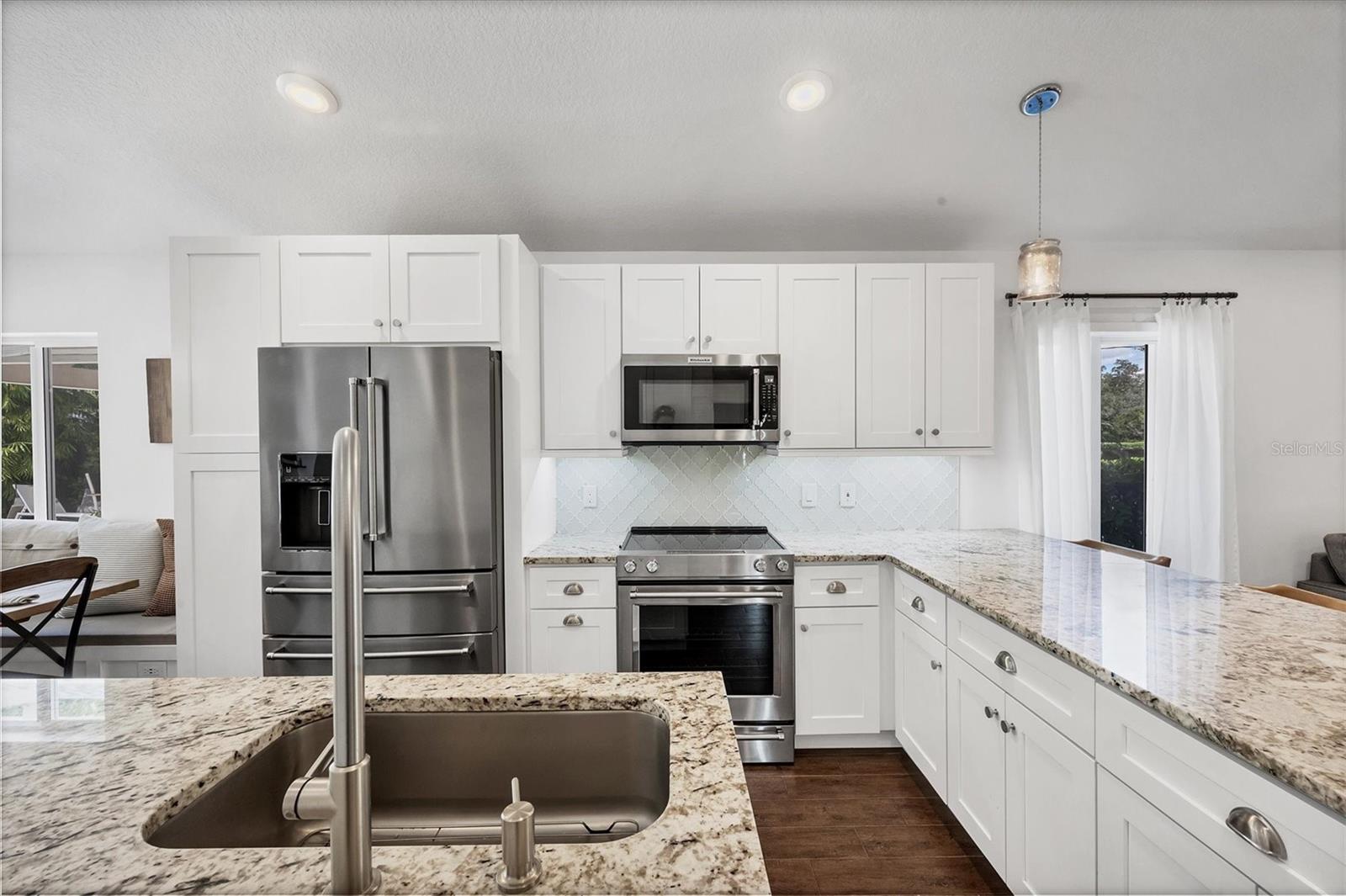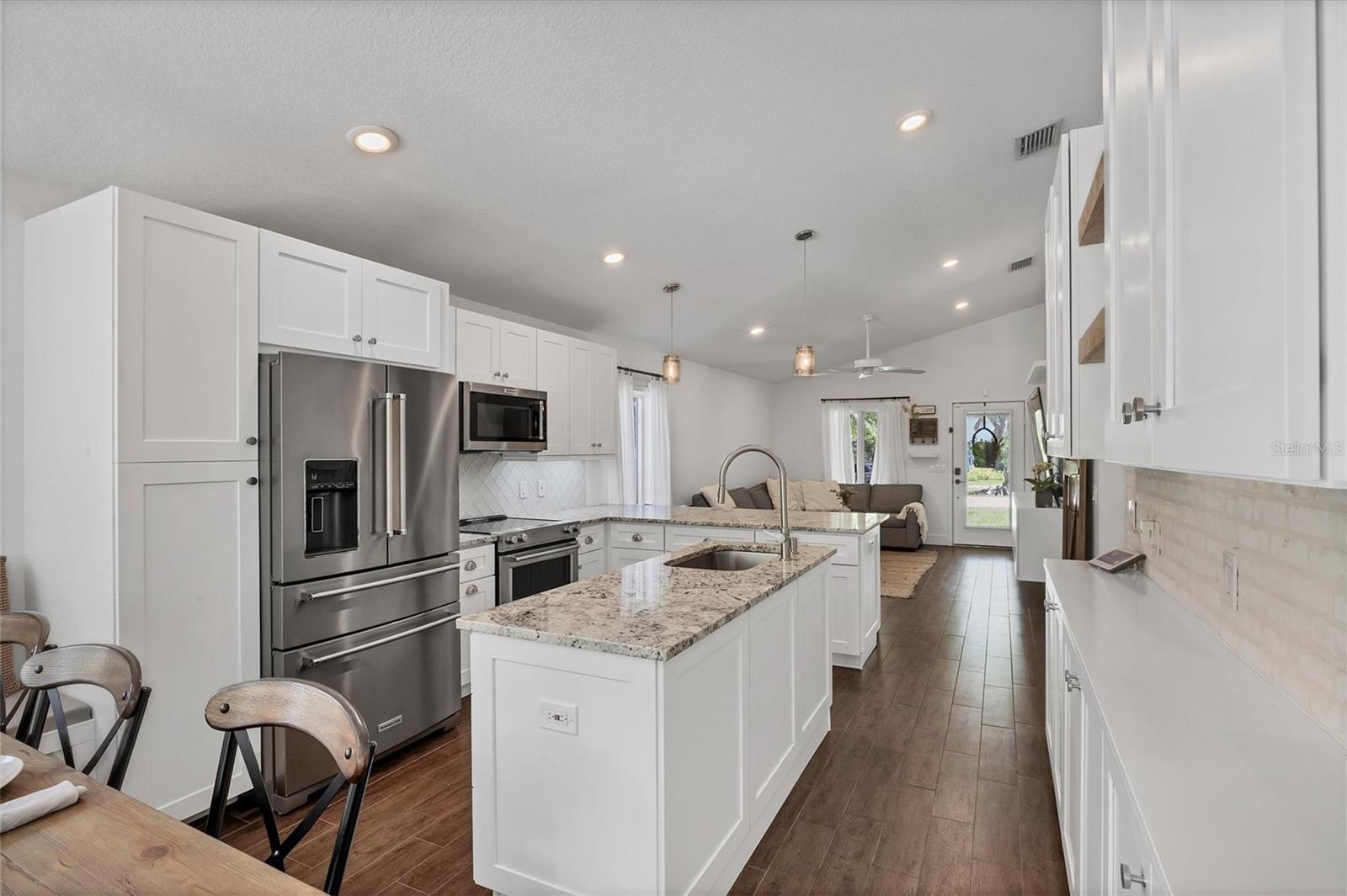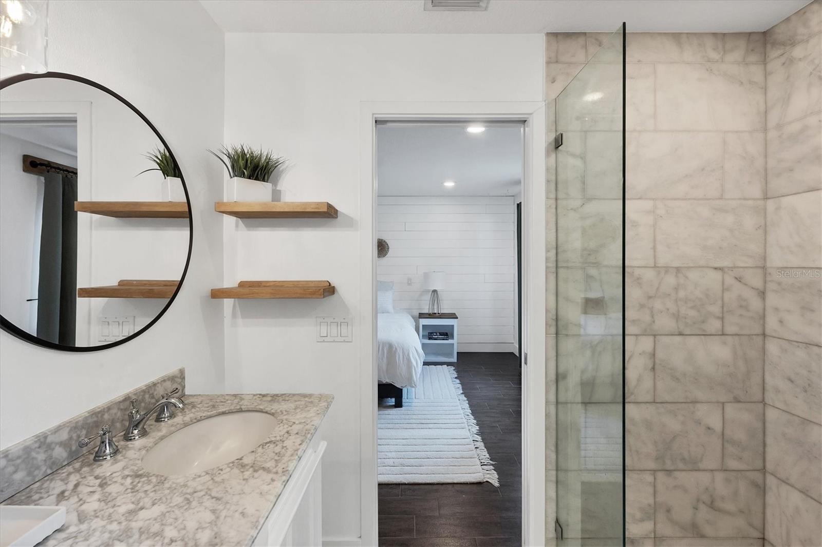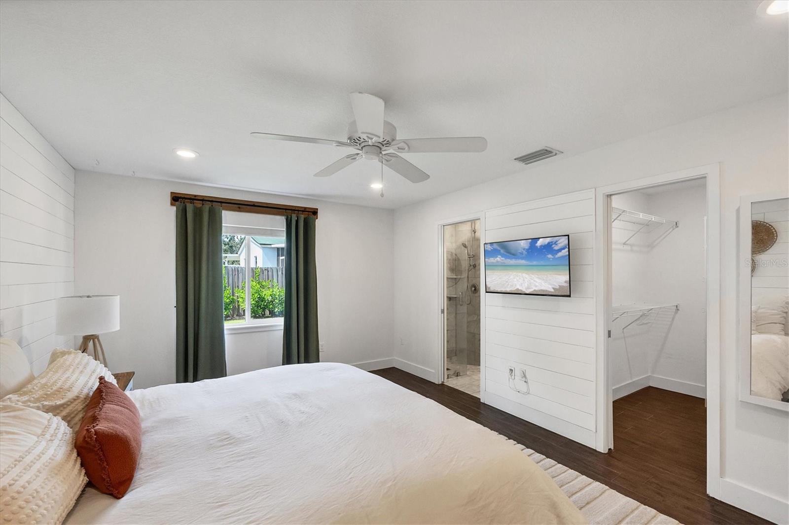 This Charming 3-Bedroom, 2-Bath Home with 2-car garage plus a detached shed/workshop combines High End Craftsmanship with Modern Farmhouse Style. Built by a local builder with meticulous attention to detail, every space in this home was thoughtfully designed for comfort, style, and function. Step inside to find custom touches throughout, including wood-inlaid ceilings on front porch and outdoor covered living areas, a sliding barn door separating the living area from the bedrooms, a built-in dining bench with storage, shiplap wall details in the Primary Suite, detailed trim in the second bedroom, and a built-in desk in the third bedroom, perfect for a home office or study space. The heart of the home is the spacious kitchen, featuring custom wood cabinetry, granite countertops, New Stainless Appliances, an island, a breakfast bar with seating, and an adjacent Dining Area with adorable and functional bench for family dinners or friendly gatherings. The Primary Suite is a retreat of its own with a stunning bathroom showcasing marble floors and marble tile shower, and custom dual vanity with marble tops. Two guest bedrooms share a stylish bath with marble top vanity and a tub/shower combination. Outdoor living is just as impressive. A covered entertainment area provides plenty of room for lounging and dining, complete with outdoor kitchen (grill and beverage cooler), while fenced backyard offers a wood-fired pizza oven-a dream for entertaining. Energy efficiency is built in: solar panels that power appliances, New Tankless hot water heater, AC, and lighting, making this home as smart as it is beautiful, with extremely low energy costs. The fenced yard also features an outdoor private shower, and a large yard providing privacy and function for pets, gardening, or family play. Located in the heart of Sarasota, this home is just minutes from top-rated schools, downtown Sarasota, I-75, University Town Center, award winning restaurants, shopping, and the world-renowned Lido Key and Siesta Key Beaches. This One-of-a-Kind property blends thoughtful design, modern efficiency, and timeless style. Don’t miss your chance to call it Yours!