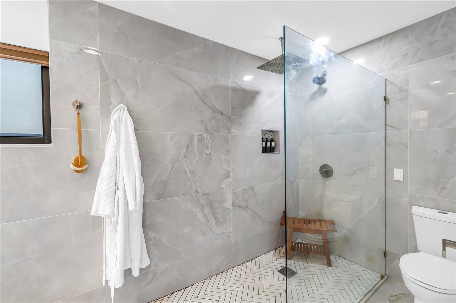 One or more photo(s) has been virtually staged. Welcome to Hidden Oaks Estates—one of Sarasota’s most desirable communities. This thoughtfully updated mid-century ranch combines modern comfort with timeless style. Natural light fills the home upon entry, showcasing views of the pool and lush tropical surroundings. The open-concept layout centers around a fully renovated custom kitchen featuring a large floating island, butler’s pantry, and premium finishes. The living area includes a natural stone and wood-accented fireplace and expansive windows with pool and garden views. A dedicated media room offers the perfect retreat for reading or movie nights. The custom wood staircase leads to a versatile loft area—ideal for an office, fitness room, or additional bedroom—with generous storage. The primary suite features two walk-in closets, dual vanities, a walk-in rainfall shower, and private sliding doors to the pool deck with direct access to the outdoors. The opposite wing includes two spacious bedrooms and a remodeled bathroom with dual vanities and a rainfall shower. An attached guest or in-law suite provides additional flexibility, offering a private entrance, walk-in closet, remodeled bath, and pool access—ideal for extended stays or a home office. Additional highlights include multiple zoned climate control systems, an oversized garage with new epoxy flooring, extended driveway parking, a 10' x 12' storage garage, and an 8' x 10' shed. The expansive lot provides room for recreation, storage, and outdoor living. Experience comfort, functionality, and style in this beautifully updated Hidden Oaks Estates residence.