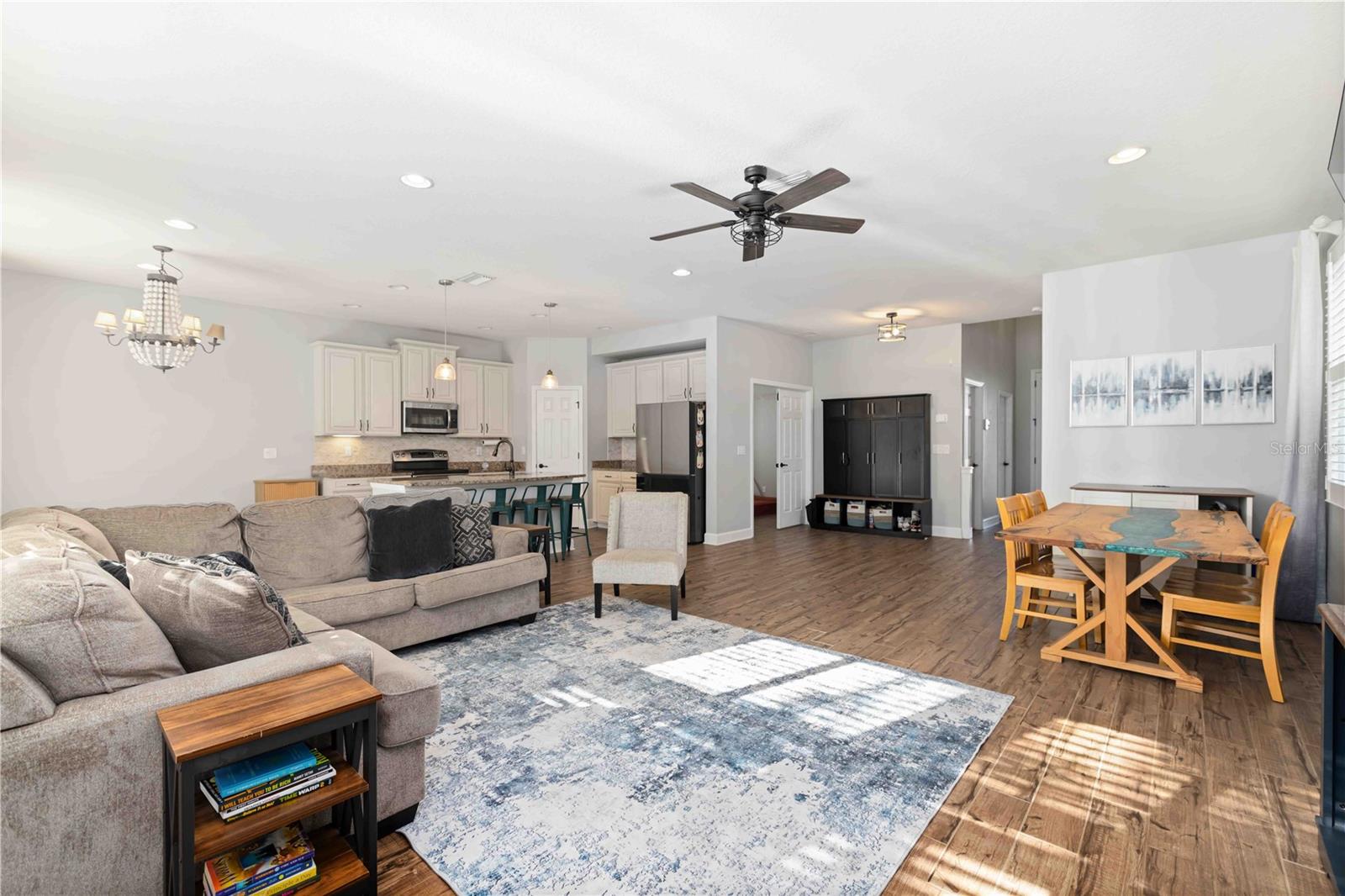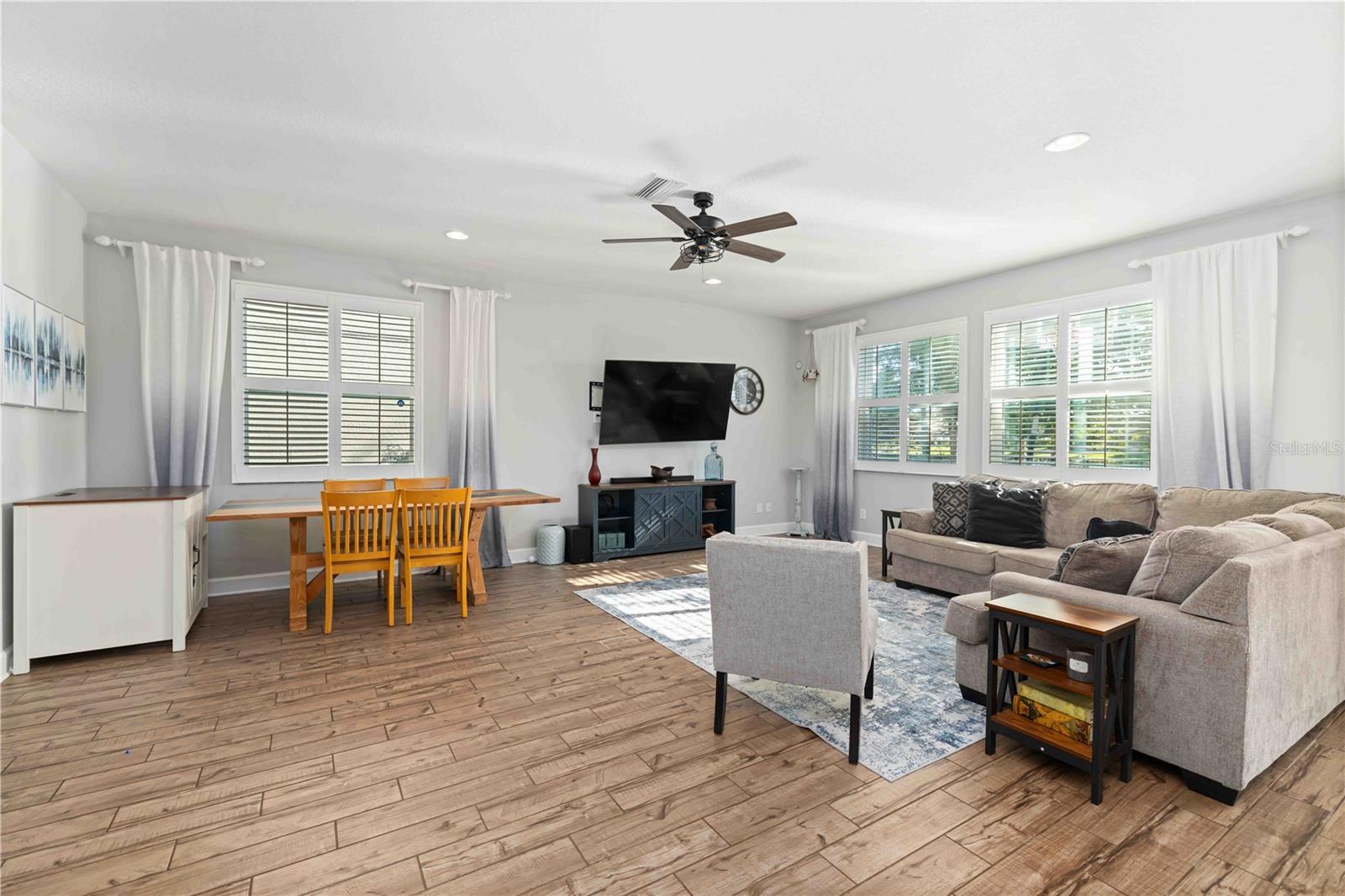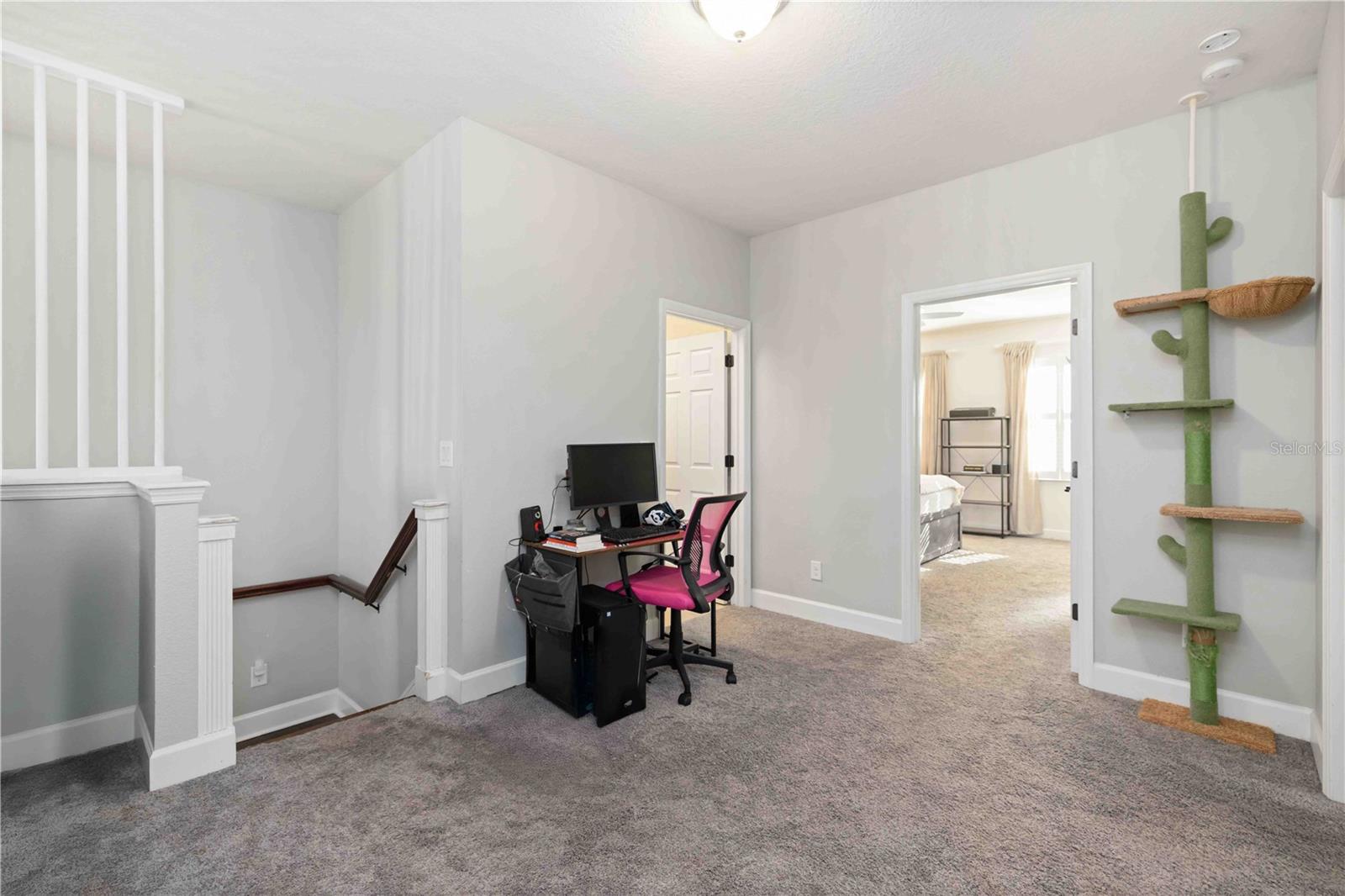 This beautifully upgraded home delivers comfort, design and flexibility in one of Sarasota’s most desirable school districts. The entertainer’s kitchen sets the tone immediately with 42” wood cabinetry, granite counters, tile backsplash, under-cabinet lighting, pull-out drawers, a center island with seating, stainless appliances and an open connection to the main living spaces. The first floor features stylish continuous tile flooring, a large half bath, extra under-stair storage with built-ins, and a versatile bedroom that is currently outfitted as an office with a modern queen Murphy bed — an ideal guest arrangement. Upstairs you’ll find a generous loft, the laundry room, three guest bedrooms and a well-appointed guest bath with double granite vanity, linen closet and tub/shower combo with pocket door separation. The primary suite is a true retreat with a soaking tub, glass shower, double granite vanity, private water closet and an upgraded walk-in closet system. Additional highlights include plantation shutters on every window, recessed lighting, two-story foyer entry, freshly painted exterior, irrigation system, hurricane shutters, paver driveway/walkways/patio and a two-car garage. The fully fenced backyard and southern-facing screened lanai allow you to enjoy Sarasota sunsets nightly — and yes, there is more than enough space to add a pool if desired.