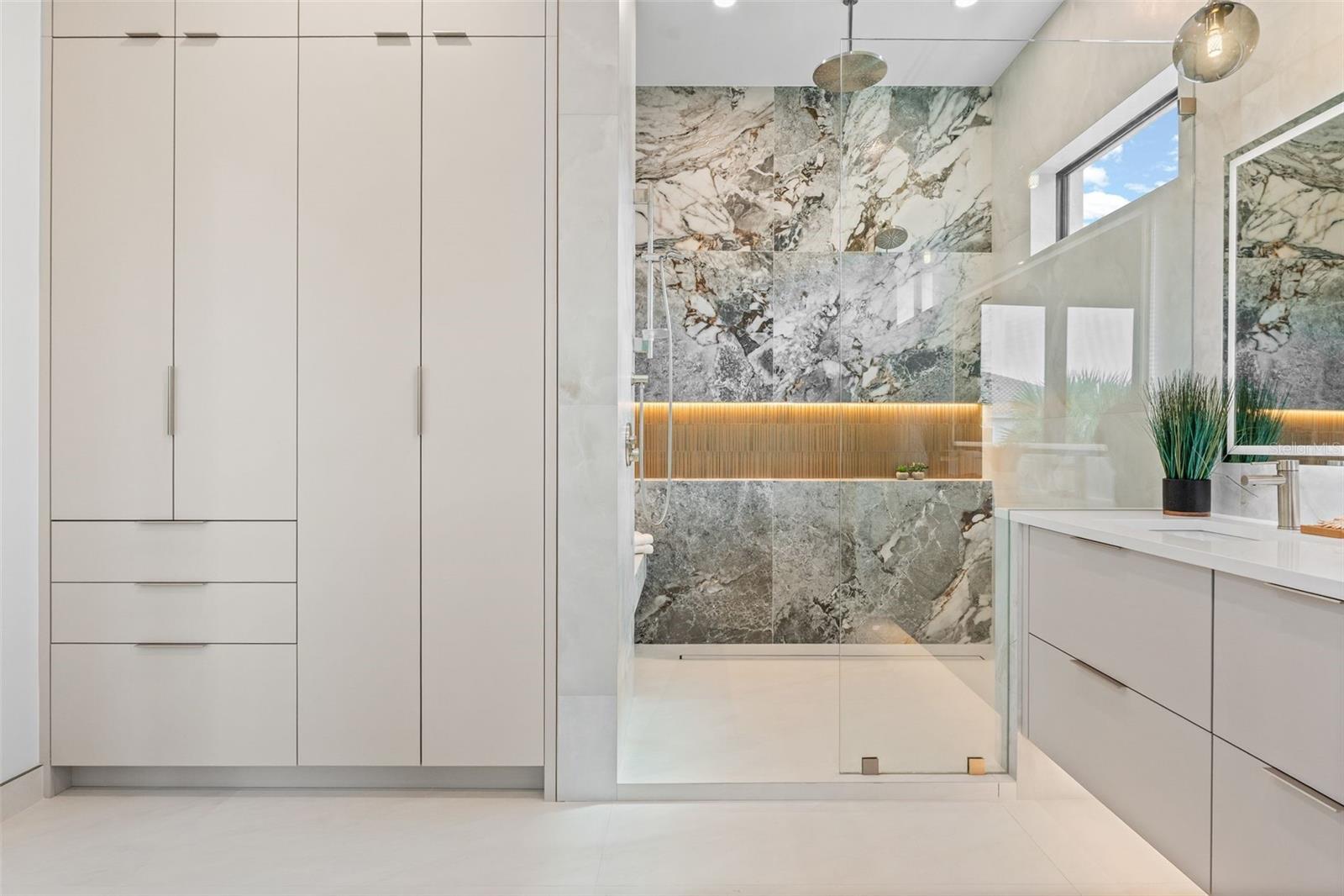 Vacation home in paradise? Potential income earner? House located in an A-rated school district? Yes, yes, and yes! This custom-built by Siesta Kay Properties modern residence showcases unmatched craftsmanship and attention to detail. Moments from Siesta Key and Southside Village with Morton’s Gourmet Market, boutique shops, and top-rated restaurants. Situated outside the flood zone, this home offers peace of mind along with resort-style living. Featuring 4 bedrooms plus office, 6 baths, an elevator, and a stunning saltwater pool and spa with a waterfall feature, this property is designed for both comfort and entertainment. The outdoor living space is a private oasis with a caged lanai, outdoor kitchen, pool bath, and a lush tropical garden filled with oaks, magnolias, olive trees, and a variety of palms — royal, areca, traveler’s, and foxtail. Inside, enjoy 10-foot ceilings on both floors, solid masonry walls, large-format porcelain tile, and custom cabinetry throughout. The floating white oak staircase, which illuminates as you approach, is a true showpiece. Upstairs, the engineered hardwood floors add warmth and sophistication. Each of the four en-suite bedrooms provides comfort and privacy. The primary suite offers space for a king-size bed, a walk-in closet, and a spa-inspired bathroom where you can unwind in the freestanding tub or take in the sunset from the expansive balcony. The chef’s kitchen features islands with double waterfall edges, ample cabinetry, a pantry, and top-of-the-line Bosch appliances including a freestanding commercial-grade range. Premium finishes include Kohler, Grohe, and Hansgrohe fixtures, LED mirrors and lighting, and Level 5 drywall finish for a sleek, modern aesthetic. Additional highlights: 2 A/C systems;PGT hurricane-rated, sound and heat-insulated windows and doors; Surround sound system on the main floor,2-car garage with epoxy floors,Concrete driveway,LED outdoor lights, Irrigation system, concrete fence. This home perfectly blends modern elegance and functionality, offering a lifestyle that’s both luxurious and convenient — a true must-see! Schedule your private showing today!