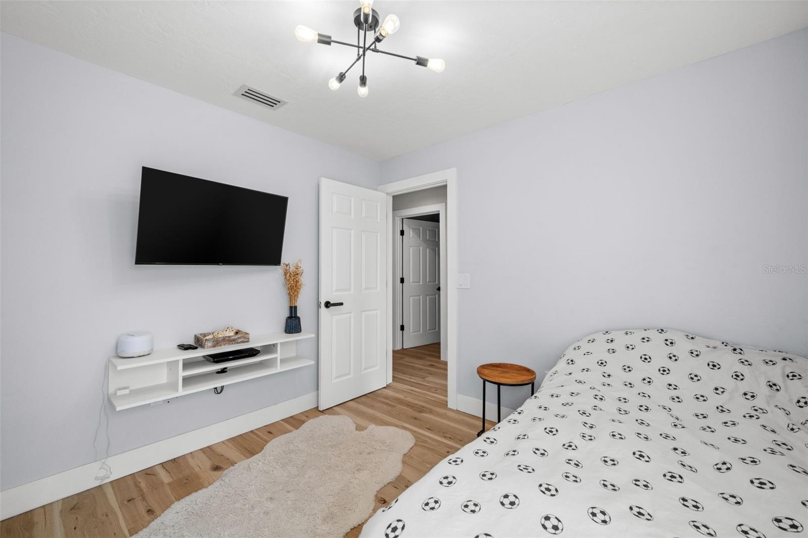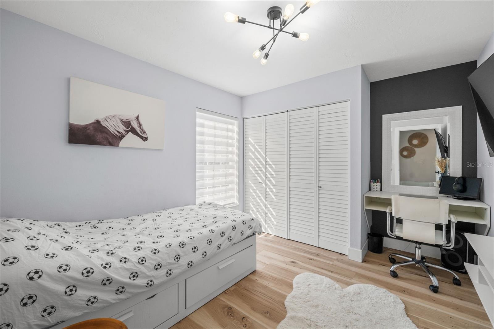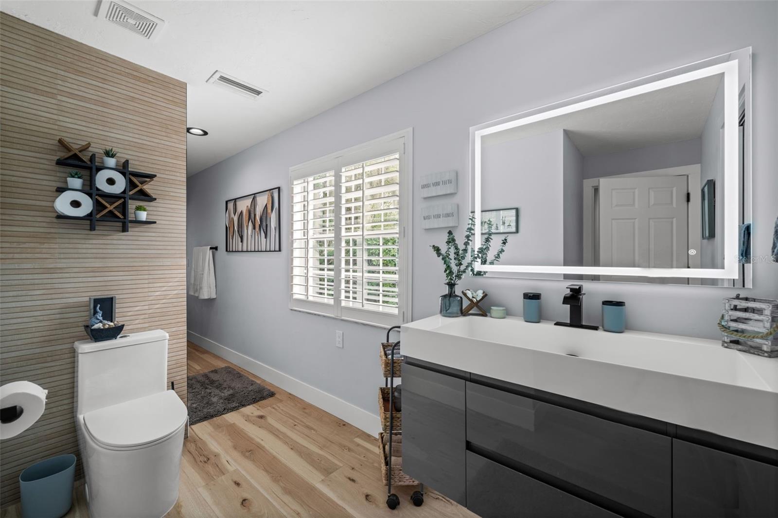 WOW! This stunning 4-bedroom, 3-bath, 3-car garage split-plan pool home is perfectly situated near the end of a quiet cul-de-sac. Completely remodeled from top to bottom and beautifully designed in a modern contemporary style! Enjoy exceptional living space with a formal living and dining area, plus a gorgeous new kitchen that opens to a large family room with a modern electric fireplace and casual dinette area. The spacious master suite offers a luxurious bath with a freestanding tub, oversized walk-in shower with dual rain heads, and double vanities. Bedroom 2 includes its own ensuite bath that also serves as the pool bath, while Bedrooms 3 and 4 share a well-appointed bath. Step outside to your private backyard with a refinished pool and rescreened pool cage, perfect for relaxing or entertaining. The 3-car garage provides plenty of room for vehicles and storage. Newer roof AC and irrigation system. Located near top-rated schools — this home truly checks all the boxes!