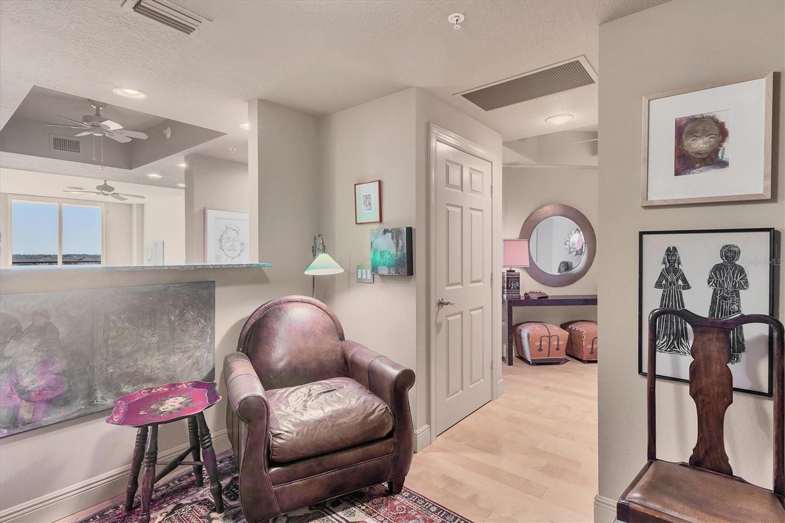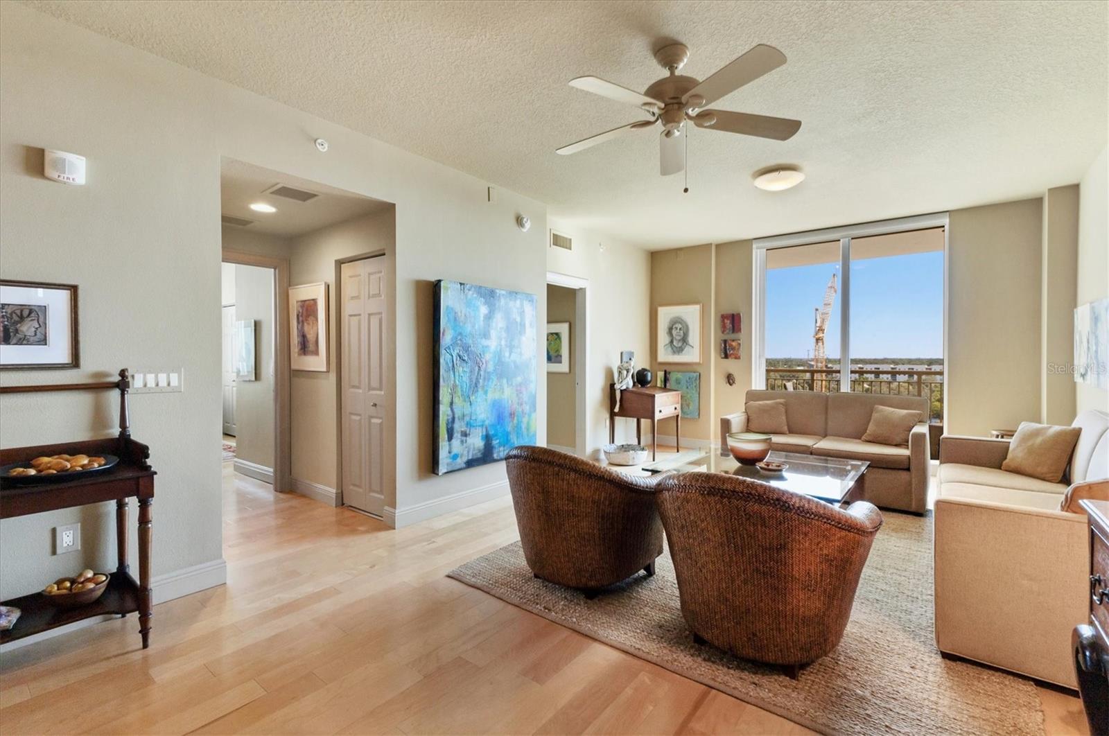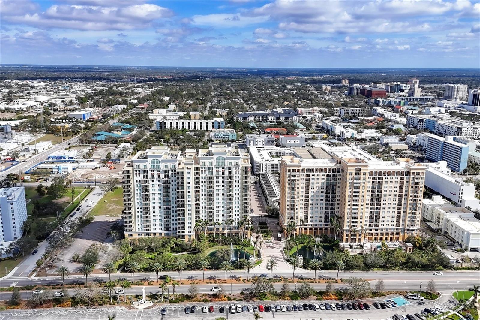 Live effortlessly in this stunning corner-unit residence located in Downtown Sarasota’s coveted Rosemary District. With 1,484 sq. ft., two bedrooms plus a den, and two full baths, this home perfectly blends style and comfort. Natural light pours through large windows, accentuating the elegant maple hardwood floors and high ceilings. The chef’s kitchen is a showpiece—featuring custom cabinetry, expansive countertops, and a central island designed for entertaining. The den, with built-in shelving, provides the ideal space for a home library or creative studio. The primary suite offers serene comfort with thoughtfully designed closets and refined finishes. Additional highlights include electric blinds, a covered terrace, a temperature-controlled storage unit, and a dedicated parking space. The community’s amenities are unparalleled—offering every convenience imaginable, including 24/7 concierge services, guest parking, three guest suites, on-site management and maintenance, a lap pool, spa, sauna, fitness center, movie theater, club room, billiards and game lounge, business office, library, dog run, wine-tasting room, and EV charging stations. Internet and streaming services are included in the HOA for added convenience. Enjoy a true sense of community with monthly resident events designed to bring neighbors together. Savor the best of Sarasota—fine dining, the Van Wezel Performing Arts Hall, and the vibrant downtown scene—all just steps from your door.