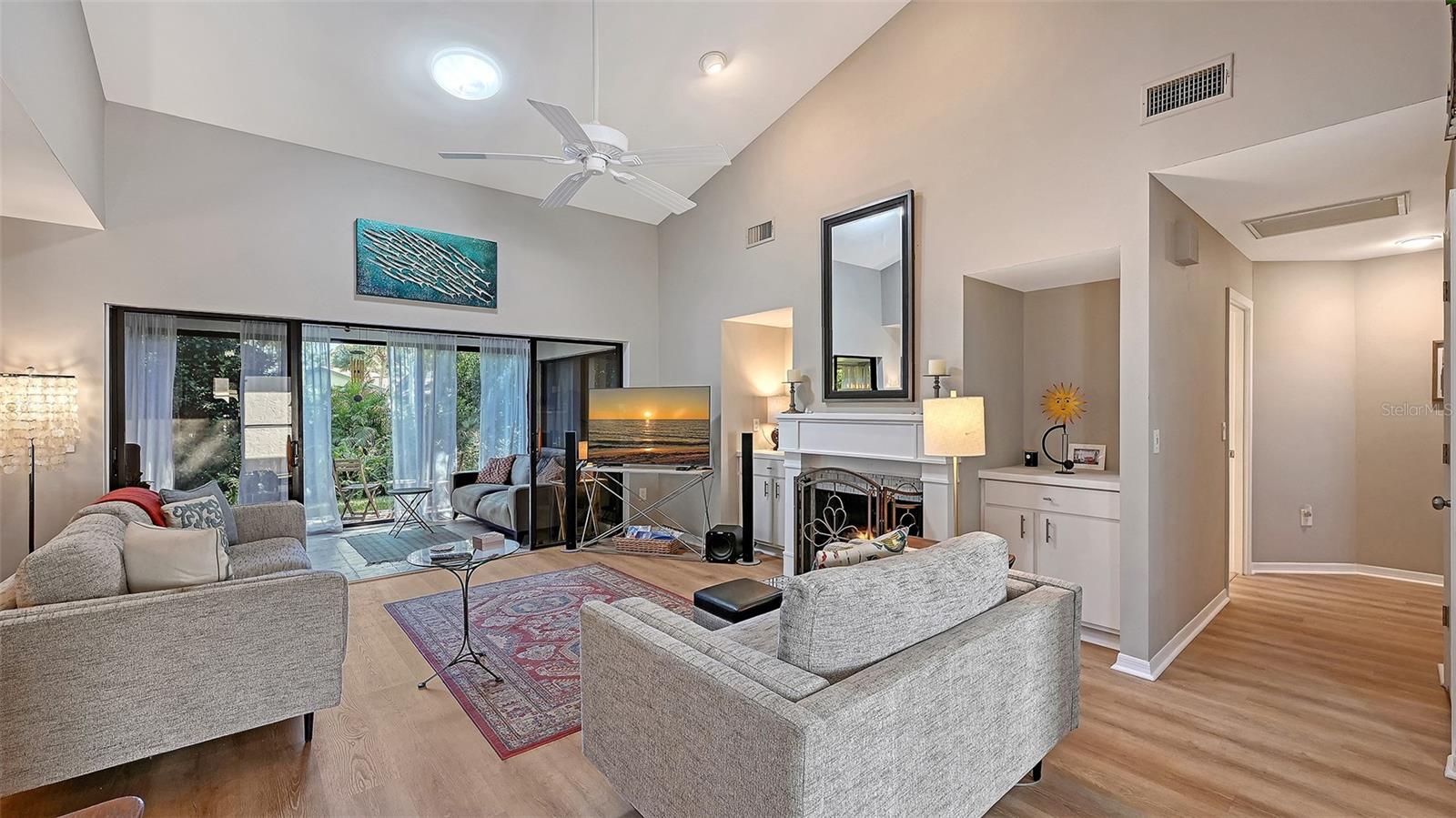 Located in the Luxury Home section of Bent Tree (Woodlands) This fully updated villa situated in Hammocks IV features 2 bedrooms, 2 baths plus den could be 3rd bedroom. Block construction with tile roofs. The owners have spared no expense in updating this beautiful home. Expanded kitchen with eating area, granite counters & newer appliances. An expansive 23x19 Florida Room has a split AC system bringing the living square footage to over 2,000 sq. ft. Bathrooms have been updated. New flooring, brand new AC & 1 1/2 year old hot water heater. A spacious great room with high ceilings wood burning fireplace & built in wet bar. New light fixtures & switches. Extended patio with garden views. Attached 2 car garage. Located a short distance from community pools (one is heated), gazebo, fishing lake & more. Maintenance fee includes: complete exterior maintenance including roof, painting, pest control, wifi, cable, lawn care & social membership to Bent Tree Golf Course. Prime location near golf courses, restaurants shopping & short distance to Siesta Key Beach with easy access to I-75