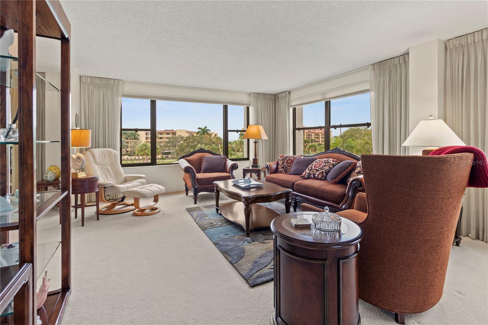 LARGE 3 BED / 3 BATH SIESTA KEY WATERVIEW CONDO AT A GREAT PRICE! Natural light and panoramic water views fill this spacious three-bedroom, three-bath end-unit residence in the sought-after Bayside community of Turtle Bay on Siesta Key. From the glass-enclosed lanai, enjoy breathtaking sunrises as boats glide along the Intracoastal Waterway, and in the evening, take in the sunset from the west-facing front lanai. The home’s kitchen and all three baths have been tastefully remodeled. The kitchen features a raised ceiling with recessed lighting, updated cabinetry, granite countertops, and premium Samsung appliances. Each bath offers elegant finishes, including glass-enclosed showers or tubs, wood cabinetry, and attractive flooring. The generously sized primary suite offers a beautifully updated en-suite bath. A second oversized guest bedroom is also en-suite with tranquil western views of the manicured grounds. Additional features include a new AC (2023), 40-gallon Rheem water heater (2020), indoor laundry room, and your own under-building private parking garage for storage, convenience, and security. No need to carry your beach chairs and accessories up to you condo, just put them in your private garage on the ground level. Turtle Bay is a premier south Siesta Key community known for its lush tropical landscaping and exceptional amenities—updated fishing pier, boat dock with available slips (first-come, first-served), kayak launch, clubhouse, heated pool and spa, grilling area, and lighted tennis courts. Best of all, residents enjoy deeded Beach access just across the street to the Gulf of Mexico, where dazzling sunsets await. Experience the perfect blend of waterfront tranquility, resort-style living, and Siesta Key’s signature coastal charm at Turtle Bay. This condo is being sold TURNKEY - everything stays - just back your bags because everything else is already here!