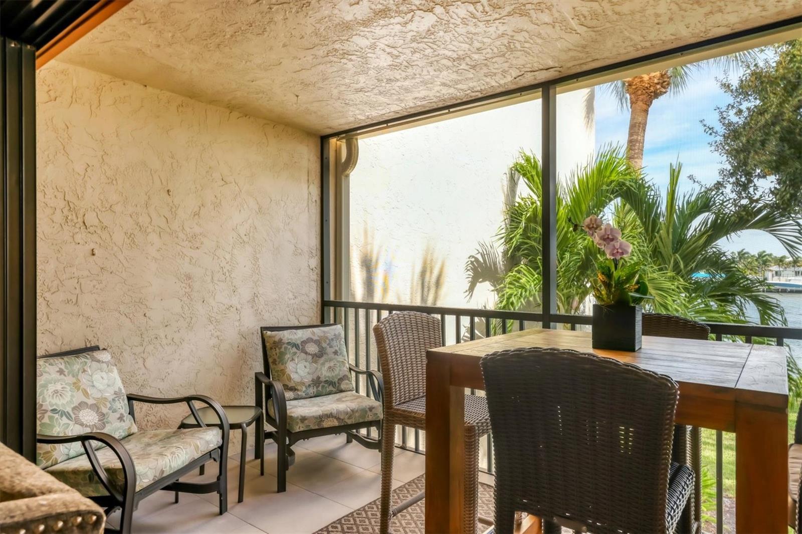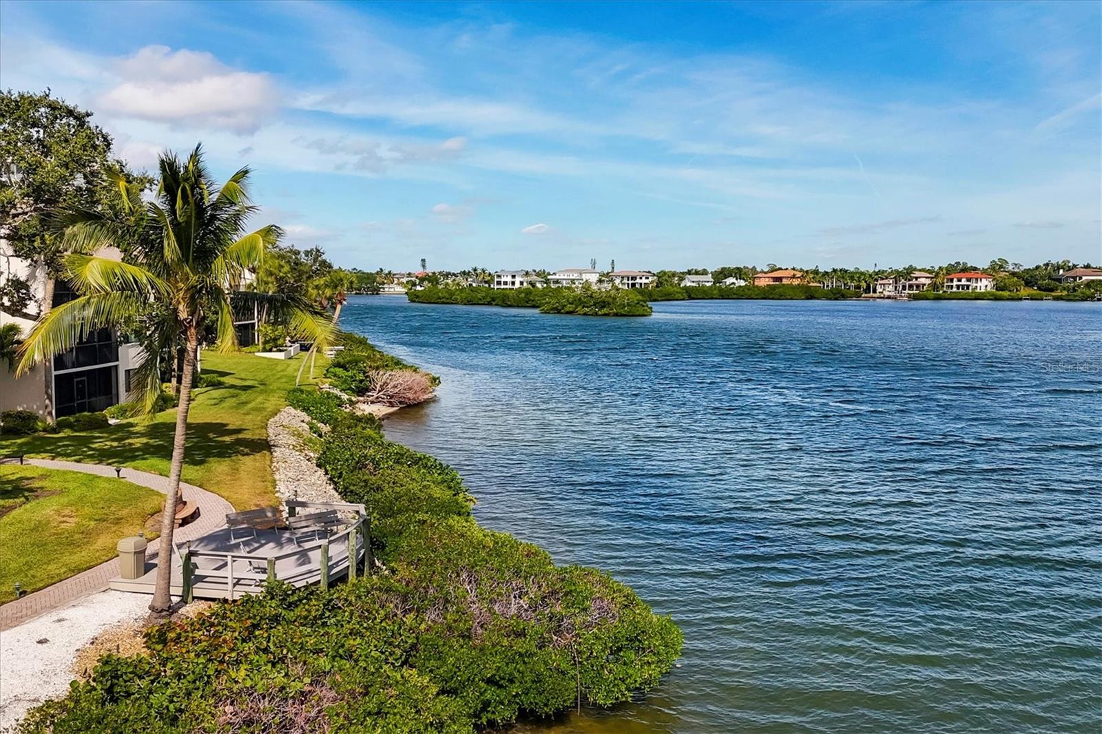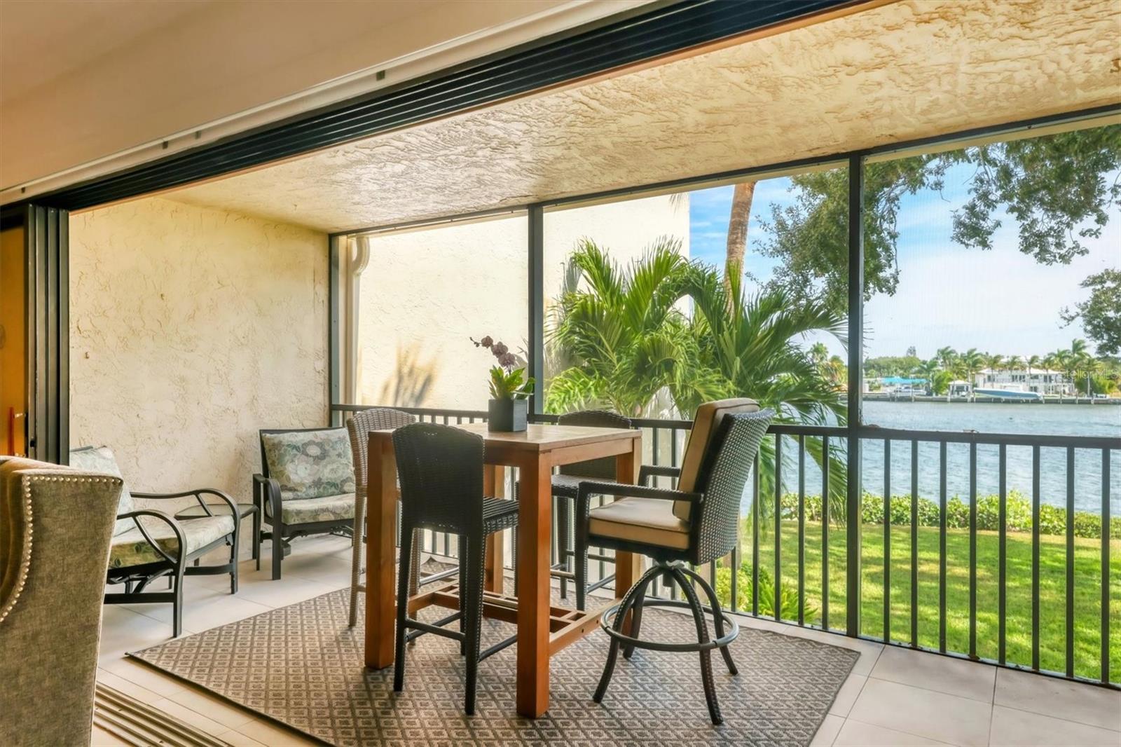 Welcome to this gorgeous WATER FRONT condo in desirable Midnight Cove II on beautiful Siesta Key! This coastal designed, TURNKEY furnished 2 bedroom, 2 bath condo is move-in ready.. just bring your bathing suit and a toothbrush and you are off to the beach with its deeded walkway access or hop on your boat that you can dock just steps away! Huge glass sliding doors open to the screened and tiled lanai with a stunning and expansive view of the inter-coastal waterway and south bridge. It's your private birds eye view to watch boats, dolphins, birds and all the abundant nature in your own little piece of paradise! Kitchen is updated and charming with granite counters, soft close cabinets and drawers, a coffee bar and eat-on counter, all open to the tropical views and updated tiled living areas. Bathrooms are stylish with a newly tiled walk-in shower and raised vanities. Condo has a convenient laundry closet with washer and dryer, and an outside storage closet with plenty of room for your sports equipment and beach toys. If you are looking for a rental investment, it may be leased on a weekly basis and offers an onsite management company. The amenties are top-notch and include a heated pool, clubhouse, deeded beach access, direct inter-coastal waterway access, fishing, boat docks, basketball court, tennis/pickle ball courts, grilling areas, and kayak storage. Location of Midnight Cove II is sought after...walking distance to the local market, famed restaurants and bars, and shopping. Also it s close to pop over the bridge to the mainland to enjoy the arts scene, downtown and all else Sarasota has to offer! Or... jump on the free trolley.. access just outside of the community and it takes you to the bustle of the Siesta Village or to the South end of the island to Turtle Beach! So much to explore and enjoy in your new Siesta Key home! Buy a condo, and LIVE THE ISLAND LIFE-STYLE!