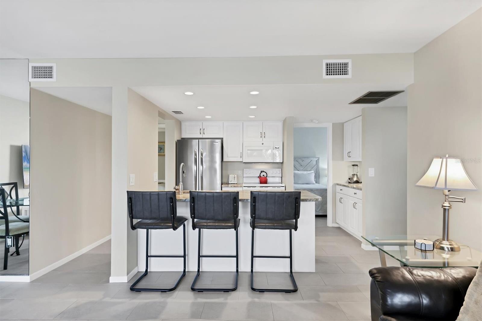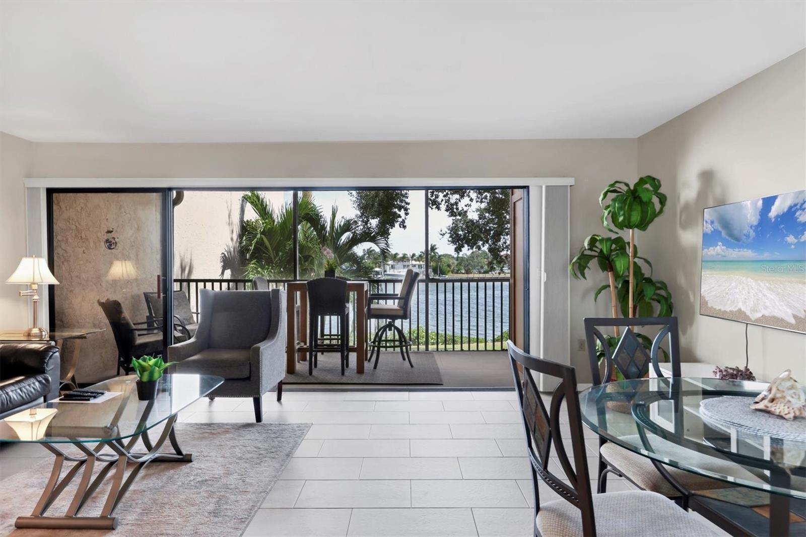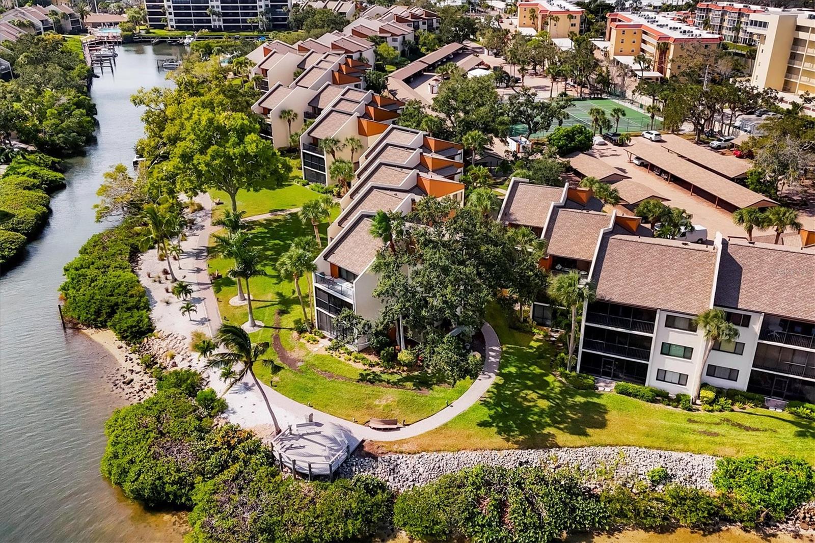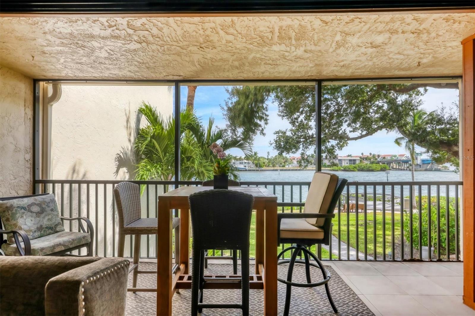 Welcome to this gorgeous WATER FRONT condo in desirable Midnight Cove II on beautiful Siesta Key! This coastal designed, TURNKEY furnished 2 bedroom, 2 bath condo is move-in ready.. just bring your bathing suit and a toothbrush and you are off to the beach with its deeded walkway access or hop on your boat that you can dock just steps away! Huge glass sliding doors open to the screened and tiled lanai with a stunning and expansive view of the inter-coastal waterway and south bridge. It's your private birds eye view to watch boats, dolphins, birds and all the abundant nature in your own little piece of paradise! Kitchen is updated and charming with granite counters, soft close cabinets and drawers, a coffee bar and eat-on counter, all open to the tropical views and updated tiled living areas. Bathrooms are stylish with a newly tiled walk-in shower and raised vanities. Condo has a convenient laundry closet with washer and dryer, and an outside storage closet with plenty of room for your sports equipment and beach toys. If you are looking for a rental investment, it may be leased on a weekly basis and offers an onsite management company. The amenties are top-notch and include a heated pool, clubhouse, deeded beach access, direct inter-coastal waterway access, fishing, boat docks, basketball court, tennis/pickle ball courts, grilling areas, and kayak storage. Location of Midnight Cove II is sought after...walking distance to the local market, famed restaurants and bars, and shopping. Also it s close to pop over the bridge to the mainland to enjoy the arts scene, downtown and all else Sarasota has to offer! Or... jump on the free trolley.. access just outside of the community and it takes you to the bustle of the Siesta Village or to the South end of the island to Turtle Beach! So much to explore and enjoy in your new Siesta Key home! Buy a condo, and LIVE THE ISLAND LIFE-STYLE!