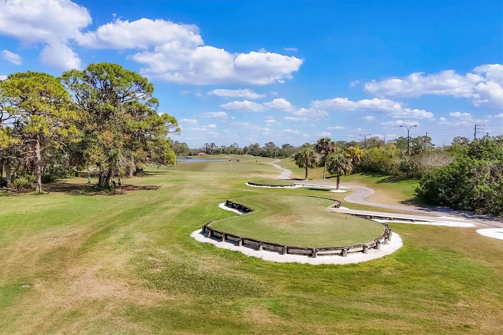 This elegant end-unit villa in the coveted Villa Palmeras section of Prestancia offers breathtaking golf course views and a maintenance-free lifestyle. Overlooking the 14th green and 15th fairway of the renowned TPC Stadium Course, this beautifully appointed residence spans 3,114 square feet of refined living space. A welcoming foyer leads into the expansive living room, where a soaring two-story ceiling, a large skylight, and plantation-shuttered windows create a bright and inviting atmosphere. The formal dining room, framed by three large windows, provides an elegant setting for entertaining. Designed for both style and functionality, the kitchen features upgraded wood cabinetry, stainless steel appliances, granite countertops, and a pantry cabinet, along with a casual dining area bathed in natural light. The primary suite serves as a serene retreat, complete with a vaulted ceiling, engineered hardwood flooring, walk-in closets, and French doors opening to the enclosed Florida room. The en-suite bath offers dual vanities, a walk-in shower, tile flooring, and a generous walk-in closet. Two well-appointed guest bedrooms provide spacious accommodation with plush natural carpet, engineered hardwood flooring and ample closet space, sharing a full bath with an expansive vanity, solid surface countertop, and a tub/shower combination. Upstairs, a versatile space can be used as a den or additional storage. A convenient powder room is located near the kitchen for easy access. Extending the home’s living space, the air-conditioned Florida room offers panoramic golf course views and direct access to the spacious yard through a wall of sliders. Additional features include a two-car garage, a utility room, hurricane impact-rated windows and doors, plantation shutters, and tile and engineered hardwood throughout the main living areas. Villa Palmeras residents enjoy access to two community pools and a pool house with covered lounging and dining areas. Nestled within the prestigious, gated community of Prestancia, this villa offers optional TPC membership for golf and social activities. Ideally located minutes to The Legacy Trail, a short drive from Siesta Key Beach, downtown Sarasota, St. Armands Circle, and the picturesque barrier islands, this exceptional home blends luxury, convenience, and resort-style living.