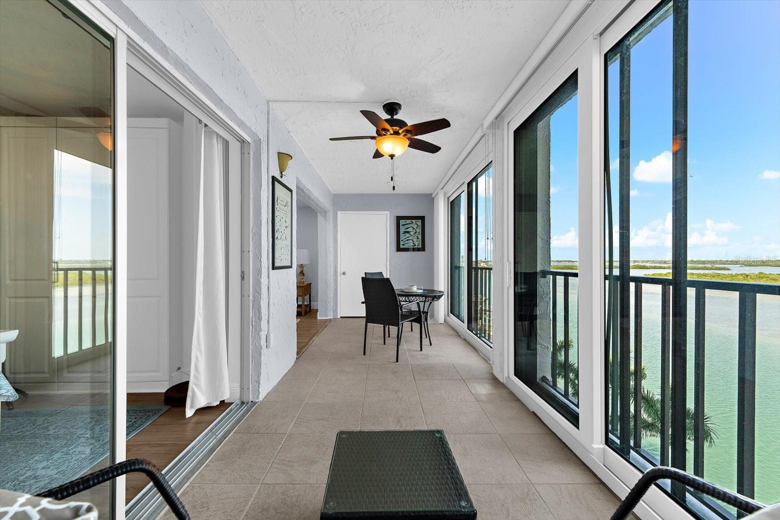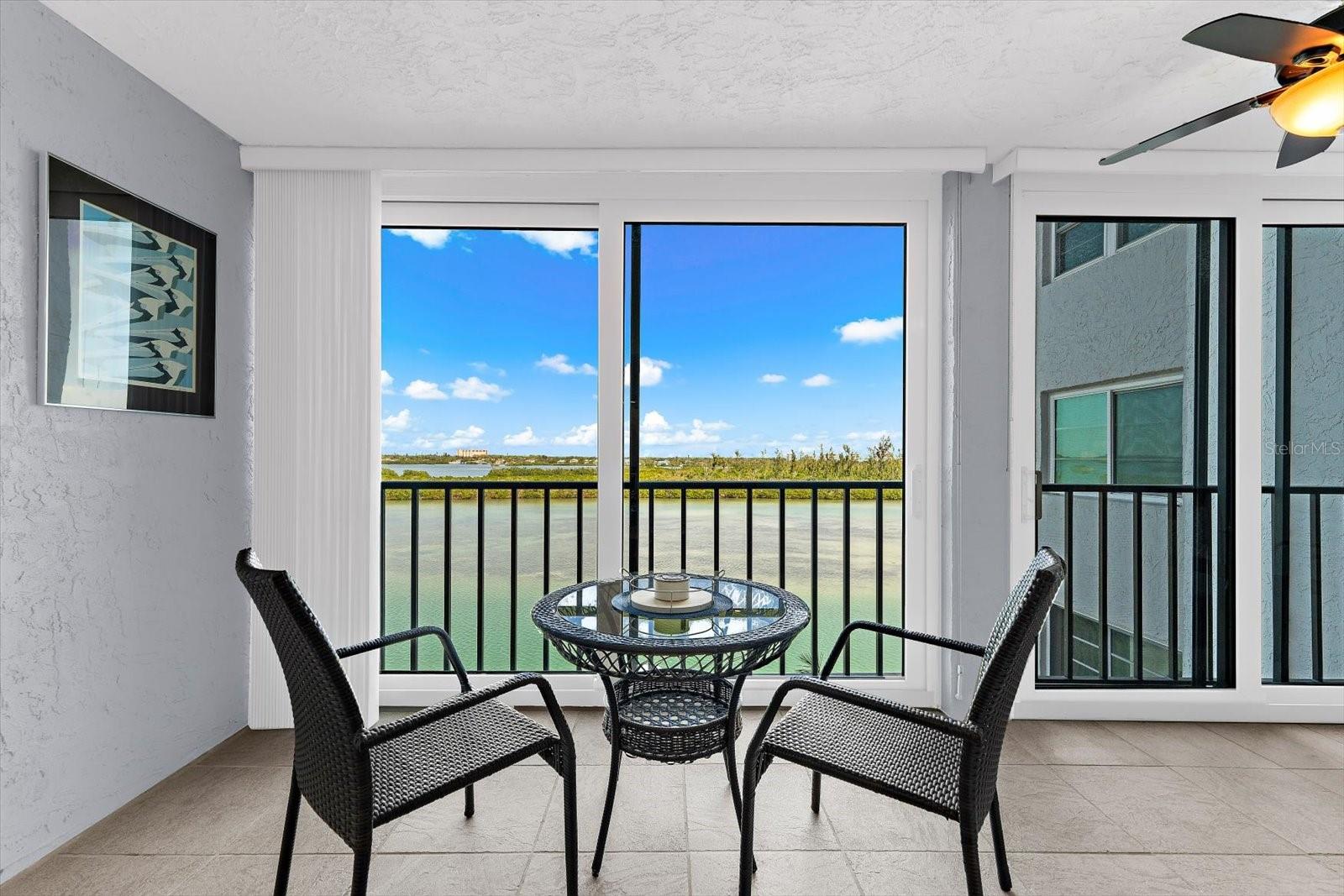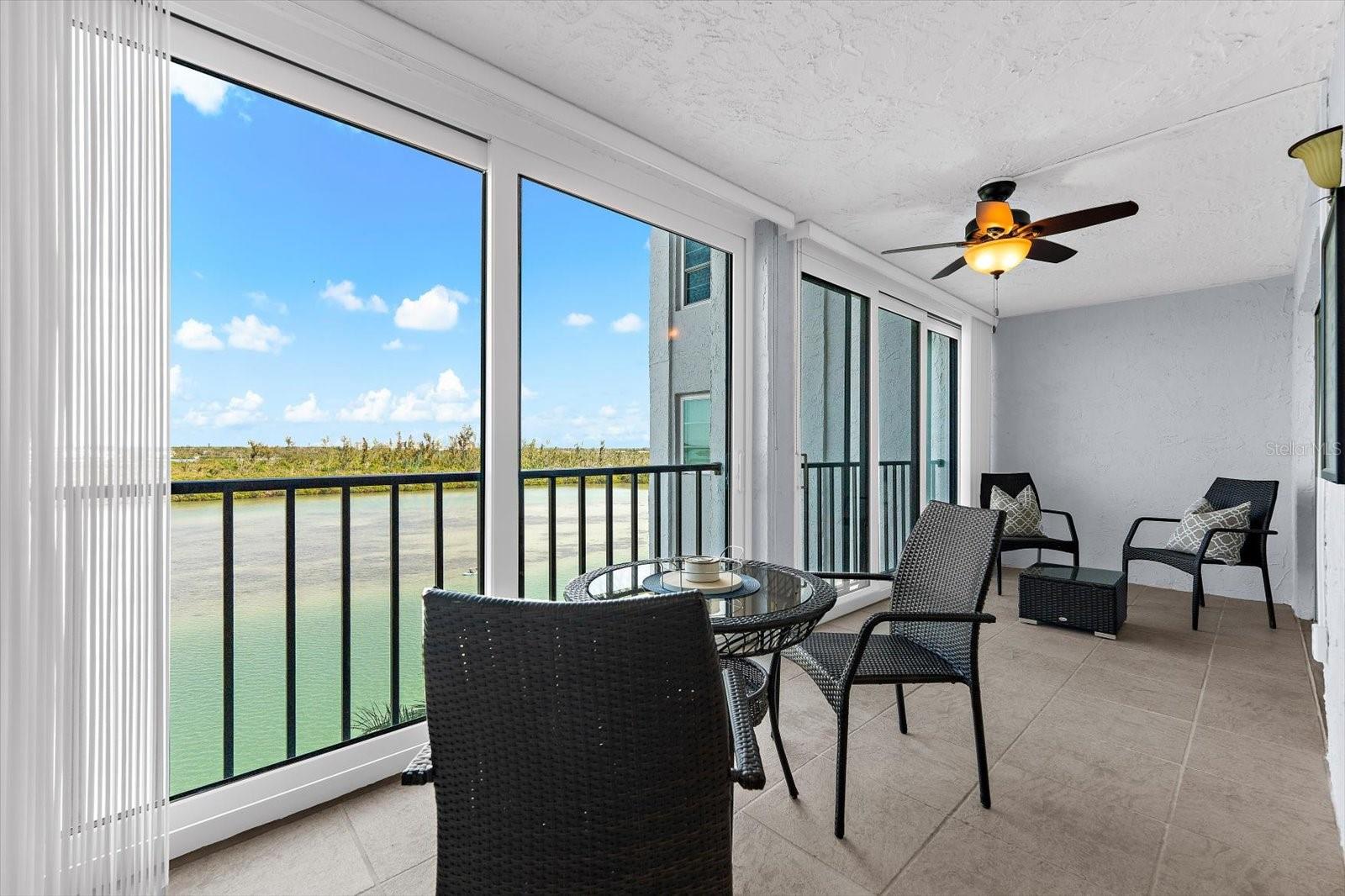Experience coastal elegance in this beautifully renovated 1-bedroom, 1-bath condominium nestled within The Pointe, a private, gated 5-acre waterfront community at the southern tip of Siesta Key. This spacious residence features luxury vinyl flooring throughout, upgraded lighting, ceiling fans, and a stunning wood-paneled ceiling in the great room that adds warmth and architectural charm. A 22-foot glass-enclosed lanai invites you to take in breathtaking sunrise views over the Intracoastal Waterway and mesmerizing sunsets over the Gulf of Mexico from the kitchen. The modernized kitchen boasts upgraded cabinetry, a custom countertop with bar seating, newer appliances, and a large pantry for added convenience. The primary suite includes a custom wall unit, glass sliders framing tranquil water views, and a newly renovated bathroom with dual vanities and a walk-in shower. Additional highlights include impact glass windows, a newer HVAC system with UV protection, a full-size washer and dryer, two hot water heaters, and abundant storage with five closets. Enjoy a true resort lifestyle with exceptional community amenities — a waterside heated lap pool and spa, boat docks, kayak storage, lighted tennis and pickleball courts, a fitness center with sauna, and a community room with library. A private island featuring a picnic gazebo, BBQs, and fishing pier offers endless opportunities for outdoor relaxation and entertainment. The 0.4-mile seawall perimeter is perfect for morning jogs or peaceful evening strolls in this pet-friendly enclave. A short walk or bike ride brings you to Turtle Beach, where the free Siesta Key trolley offers easy access to Siesta Beach and Siesta Village. Several acclaimed restaurants are within a half-mile, making this the ideal setting to enjoy the best of island living. Schedule your private tour today!