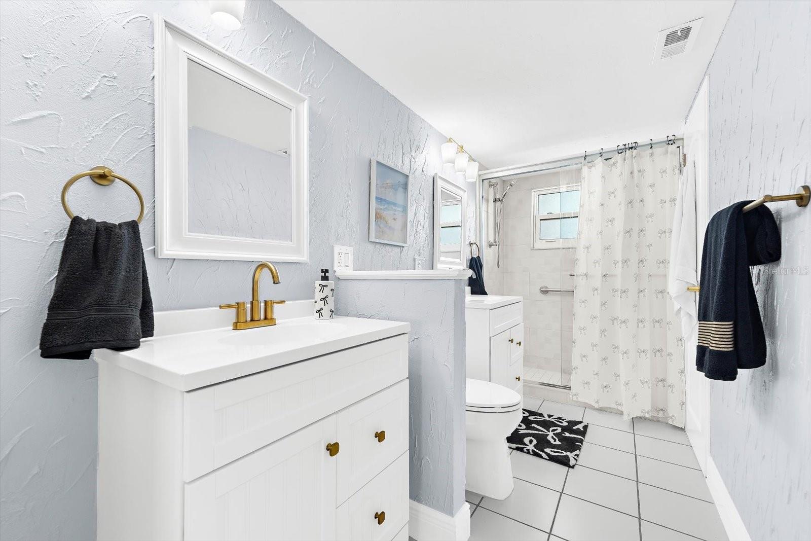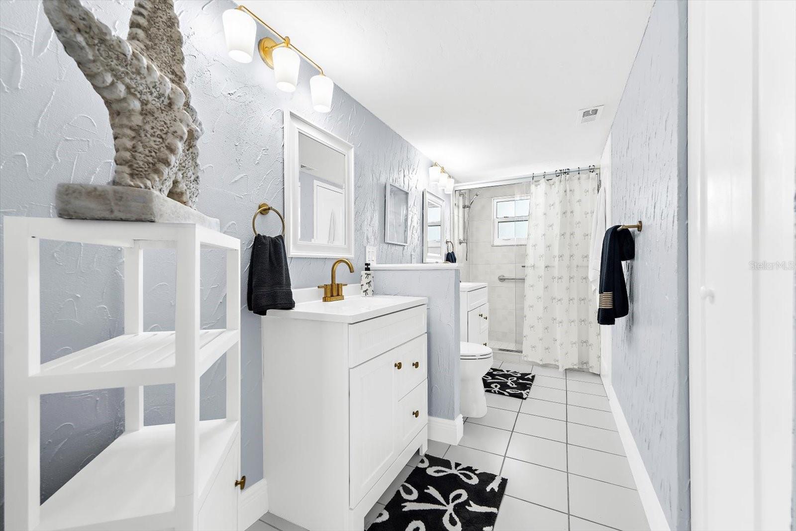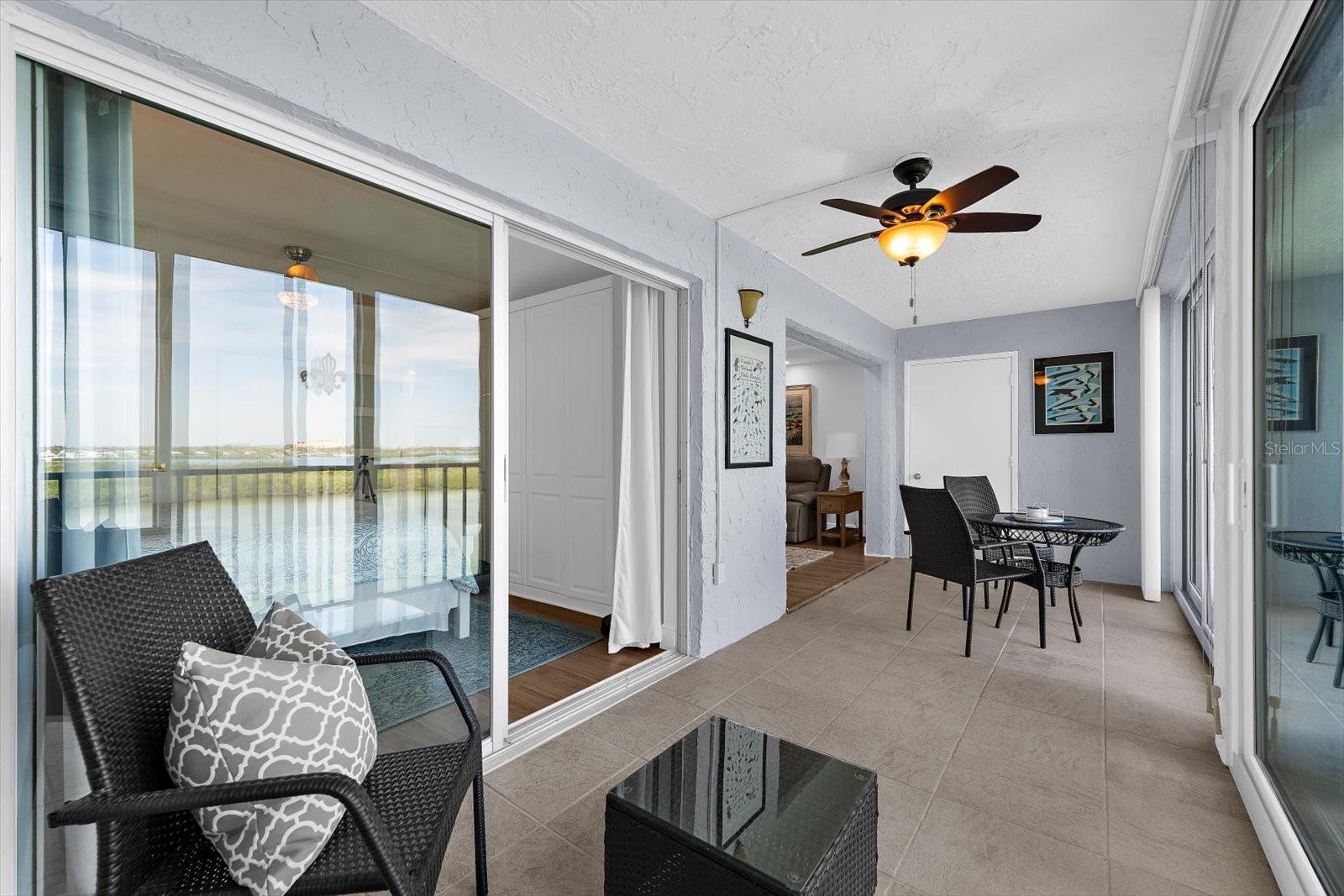 Experience coastal elegance in this beautifully renovated 1-bedroom, 1-bath condominium nestled within The Pointe, a private, gated 5-acre waterfront community at the southern tip of Siesta Key. This spacious residence features luxury vinyl flooring throughout, upgraded lighting, ceiling fans, and a stunning wood-paneled ceiling in the great room that adds warmth and architectural charm. A 22-foot glass-enclosed lanai invites you to take in breathtaking sunrise views over the Intracoastal Waterway and mesmerizing sunsets over the Gulf of Mexico from the kitchen. The modernized kitchen boasts upgraded cabinetry, a custom countertop with bar seating, newer appliances, and a large pantry for added convenience. The primary suite includes a custom wall unit, glass sliders framing tranquil water views, and a newly renovated bathroom with dual vanities and a walk-in shower. Additional highlights include impact glass windows, a newer HVAC system with UV protection, a full-size washer and dryer, two hot water heaters, and abundant storage with five closets. Enjoy a true resort lifestyle with exceptional community amenities — a waterside heated lap pool and spa, boat docks, kayak storage, lighted tennis and pickleball courts, a fitness center with sauna, and a community room with library. A private island featuring a picnic gazebo, BBQs, and fishing pier offers endless opportunities for outdoor relaxation and entertainment. The 0.4-mile seawall perimeter is perfect for morning jogs or peaceful evening strolls in this pet-friendly enclave. A short walk or bike ride brings you to Turtle Beach, where the free Siesta Key trolley offers easy access to Siesta Beach and Siesta Village. Several acclaimed restaurants are within a half-mile, making this the ideal setting to enjoy the best of island living. Schedule your private tour today!