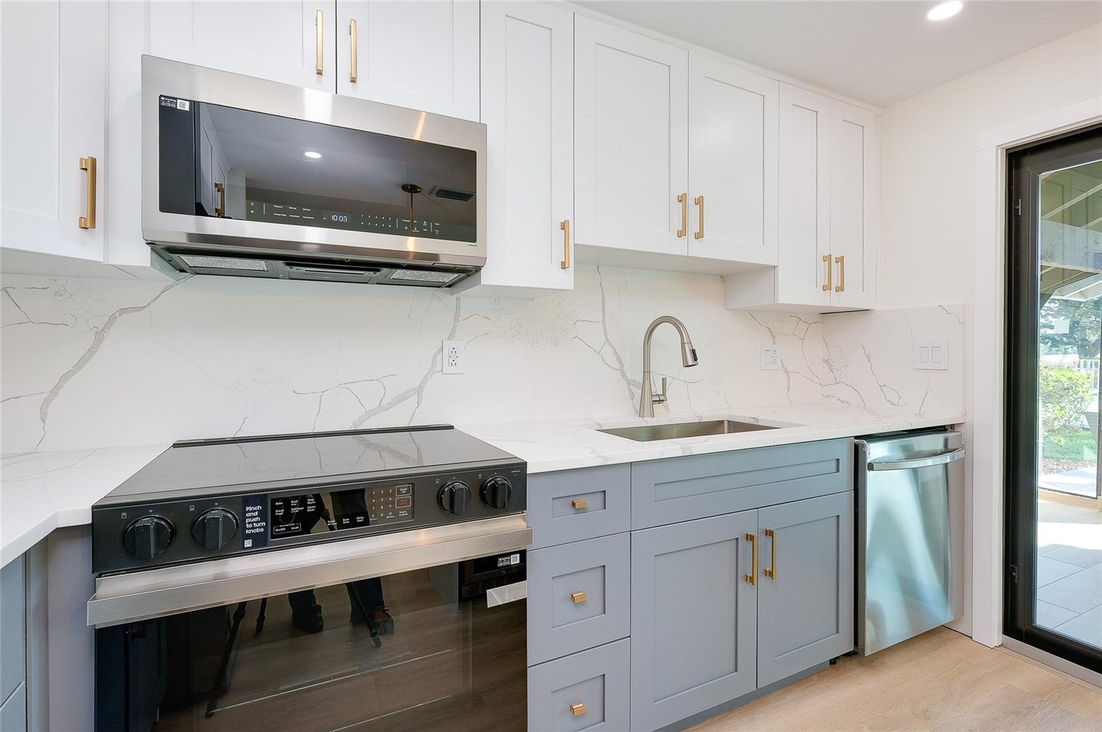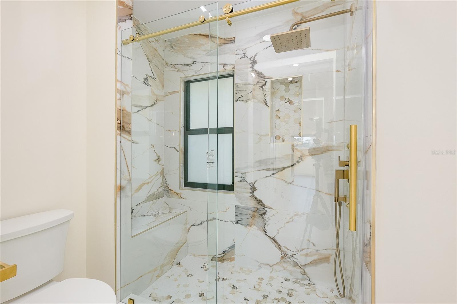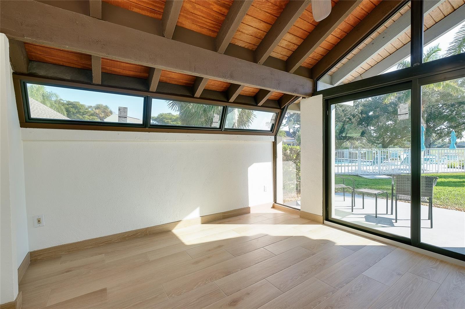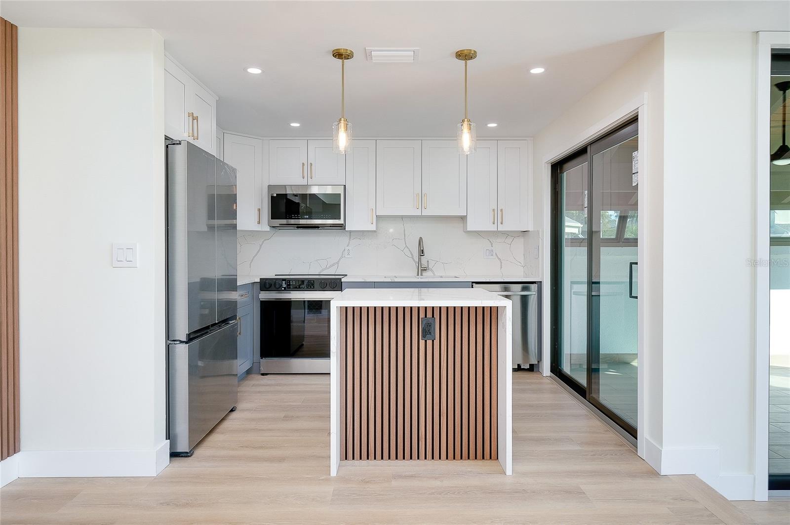A Remarkable Opportunity in the popular Meadows community near UTC in Sarasota! Step into this stunningly remodeled 2 bedroom, 2 bath residence offering an open layout and expansive views of the golf course and community pool. Flooded with natural light, this home truly shines with its top-to-bottom renovations featuring premium finishes throughout. Nearly every element has been replaced, including high-value upgrades such as brand-new hurricane-rated windows and doors, a new AC system, hot water heater, luxury vinyl plank flooring throughout, and all new appliances—including washer and dryer. The kitchen and both bathrooms have been completely redesigned with modern, upscale style. The gourmet kitchen opens seamlessly to the dining and living areas and showcases stainless steel appliances, a quartz waterfall breakfast bar, and sliders that lead to the enclosed lanai and open patio beyond. The living room impresses with three sets of hurricane-impact sliders that frame serene golf course views, plus a stylish feature wall (that matches the dining room with a fireplace insert. The spacious primary suite feels like a private retreat, offering two closets, dual sinks, a walk-in shower, and its own patio overlooking the golf course. The guest bedroom is thoughtfully positioned on the opposite side of the home with an adjoining updated bathroom for added privacy. You can have peace of mind for year sto come with the newer roof (2024) and all new hurricane windows/doors, plus low electric bills. Live like you’re on vacation year-round in The Meadows—one of Sarasota’s most desirable communities! Move right in and enjoy all that Florida has to offer with all grounds maintenance taken care of by the Association, along with the exterior maintenance of the building and pest control. Conveniently located off Honore near University Parkway, you’ll enjoy close proximity to Lakewood Ranch shopping and dining, but with less congestion. Amenities include a clubhouse, heated community pool, fitness center, 8 new tennis courts, pickleball, playground, and 3 golf courses, all set among beautifully landscaped grounds with miles of walking and biking trails and lakes. Country Club membership is optional, and The Meadows Golf Courses are set to open very soon! Just minutes from world-famous Siesta Key Beach, other Gulf Coast beaches, St. Armands Circle, and major sports complexes, this location truly offers the best of Sarasota living.
