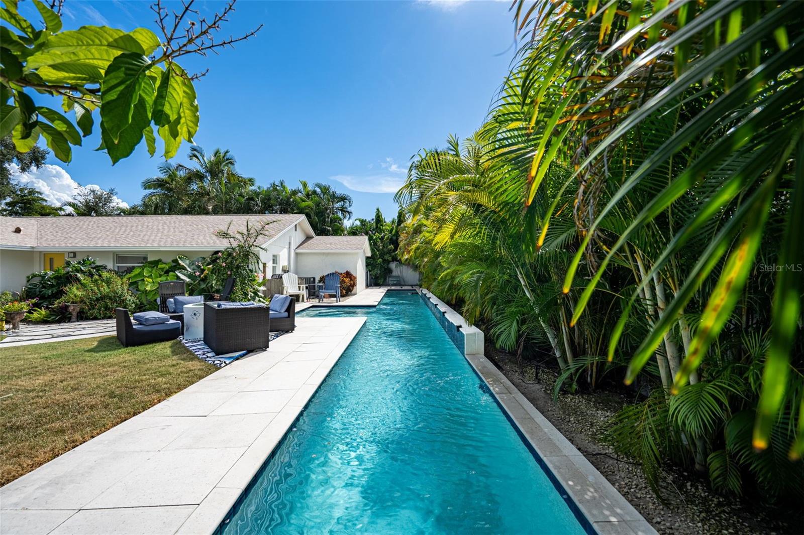 Alert! An outstanding WEST OF THE TRAIL gem has hit the market! This lavishly maintained and updated property is located in one of the most prized neighborhoods in Sarasota! Within easy biking/walking distance of the fine dining, boutique shops, farmers markets, cantinas, and art galleries of downtown Sarasota, this home provides a one-of-a-kind way to experience the best that Sarasota has to offer! This home has seen many improvements over the years. You will notice the brand new kitchen with state-of-the-art appliances, as well as the renovated bathrooms, impact windows and doors for peace of mind, as well as a new roof only a few weeks ago, this October 2025, and of course, the iconic gunite salt-water heated lap pool! The home is equipped with a whole-house water filtration system as well as an irrigation system; neither you nor your beautiful garden will go thirsty! Thoughtfully designed exterior features landscaping for privacy in the backyard, as well as a lovely courtyard-style patio by the pool, and finally, the 1.5-car garage is equipped with a 220 outlet for EV charging. Whether you’re enjoying the sun-filled mornings by the pool or taking a walk to the Bayfront for a cocktail at sunset, this home in the heart of Sarasota is the lifestyle you’ve been waiting for!