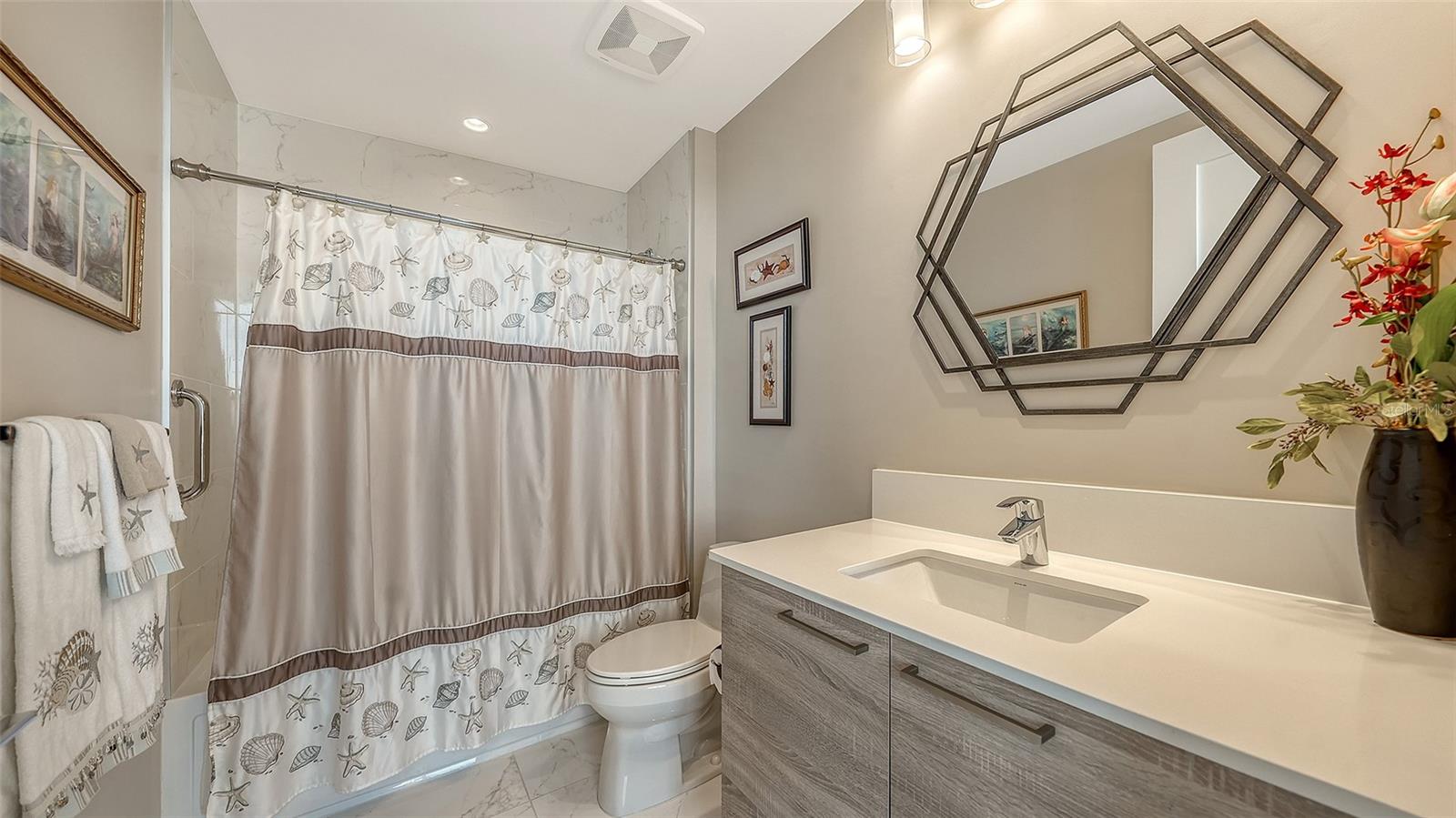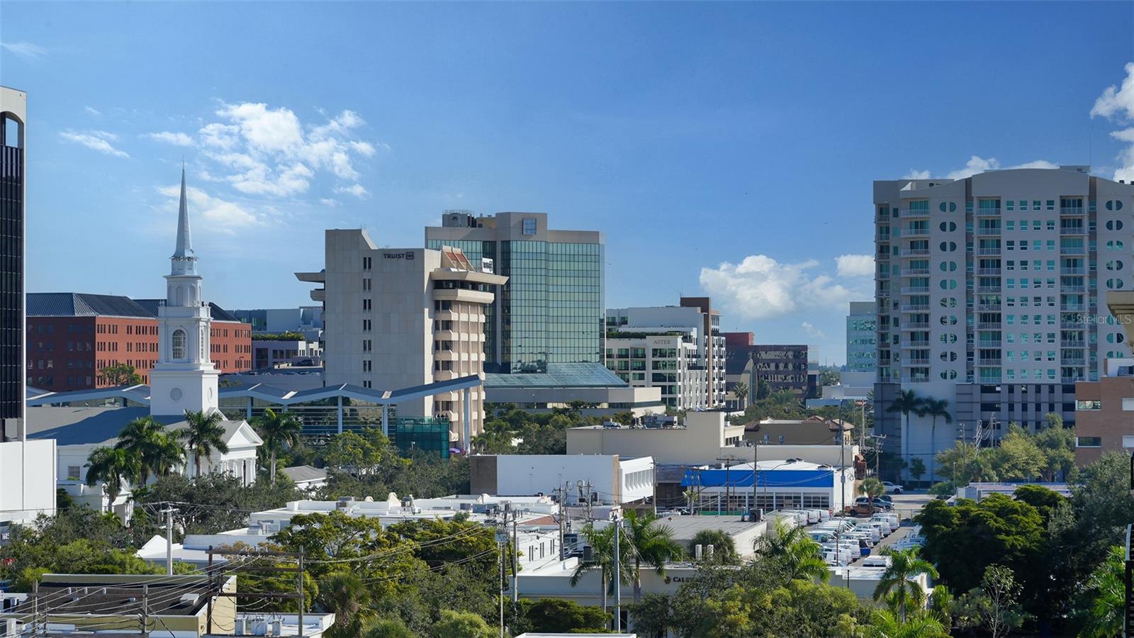 Welcome to The Mark- where it’s all happening in downtown Sarasota. This incredible city-view unit is the perfect height and position in the building- facing east for sun-filled mornings, it looks directly down State Street and at the city below. The Mark is a wonderfully amenitized newer building in the core of downtown Sarasota. Just out your front door is access to the finest in dining, shopping, and entertainment that Sarasota has to offer. Inside the building you will find a true oasis- you’ll be greeted by the friendly concierge, take the elevator up to you level and enjoy privacy and elegance. The amenities in the building include a heated pool and spa deck area with peek-a-boo views of the water and cityscape, outdoor seating and cabanas, a luxurious fitness center, meeting room, shared office area, grilling area, catering kitchen and much more. This unit stands out with one extra wide end parking space that was hand selected by the seller, and there is a 6x4 storage unit right across the hall. Inside this residence are lovely upgrades including tile in the main living area, automated blinds with blackout shades in the bedrooms, recessed can lighting, separate laundry room with sink, grass cloth accent walls and much more. You’ll love the open floor plan with bedrooms on either side, each with its own en-suite bathroom. There is a powder room for entertaining and abundant space for sitting and hosting in the main area. There is a tucked-away office area with built-ins, custom lighting throughout, and no storm concerns with impact glass windows in all openings! The luxurious kitchen features an island with bar seating, stainless steel appliances, custom glass tile backsplash and more. The primary suite offers abundant space, dual closets, bathroom with separately enclosed walk-in shower and commode, dual vanities, and access the balcony. The lovely east facing balcony is a great retreat to sit and let the day greet you, and even see the warm glow of sunset skies over the city in the evening. This unit has been lovingly cared for its original owner- don’t wait- schedule your private tour today!